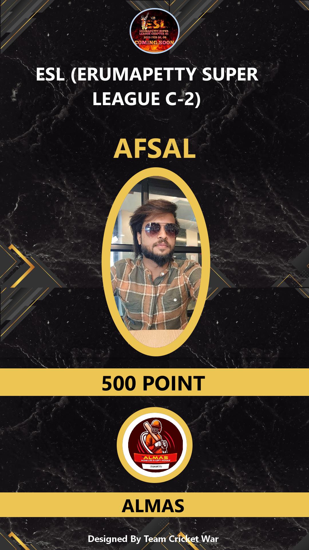 ALLROUNDER, AGE : 31 EYYAL Bid Amount : 500 Team : ALMAS Download ID Card VIEW PROFILE |