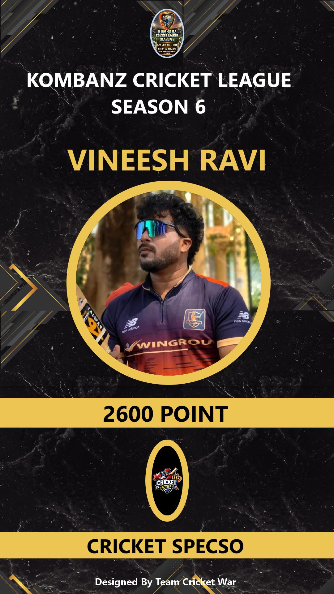 BATTING ALLROUNDER, AGE : 33 PERAMANGALAM Bid Amount : 1300 Team : CRICKET SPECSO Download ID Card VIEW PROFILE |
