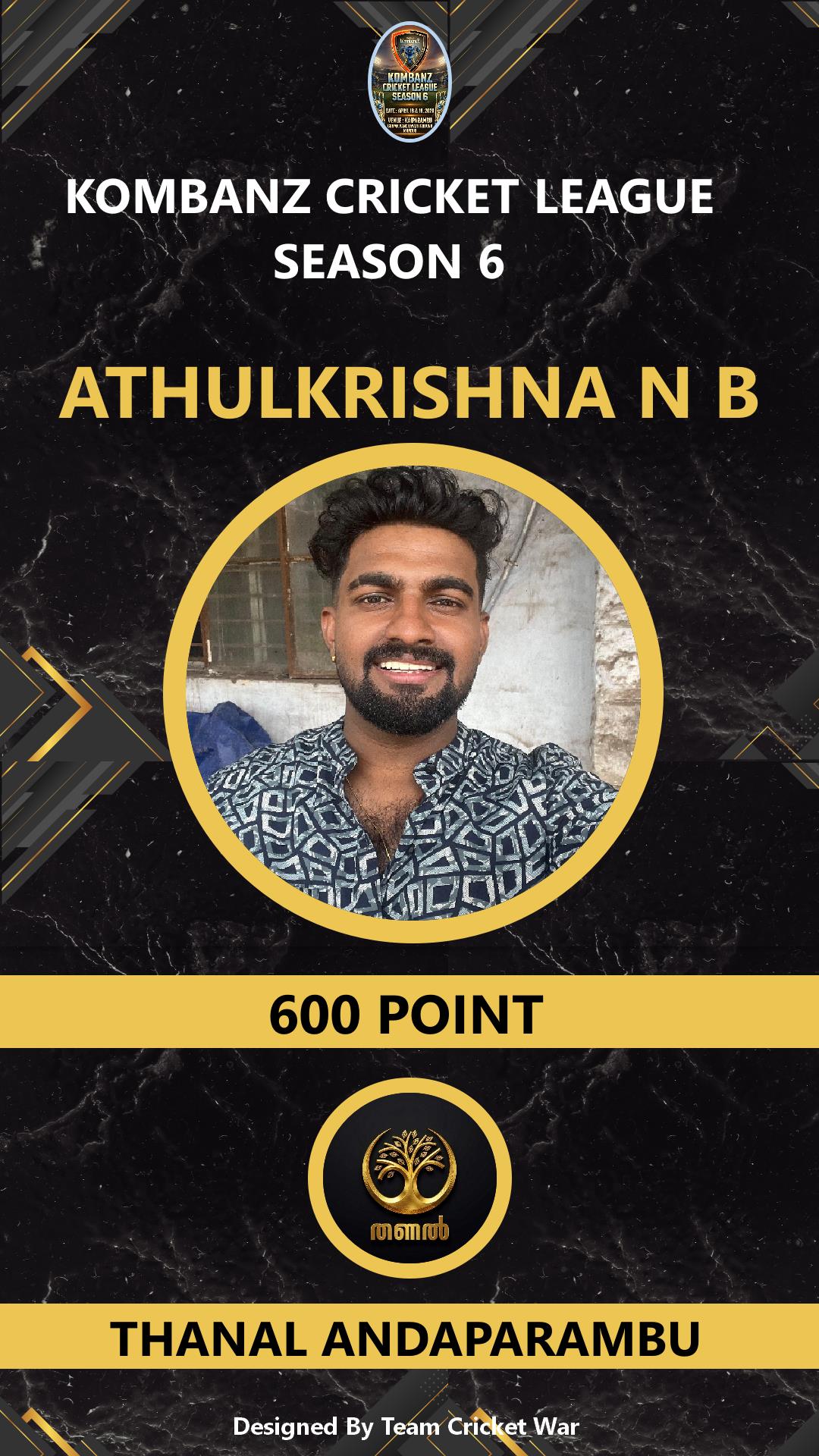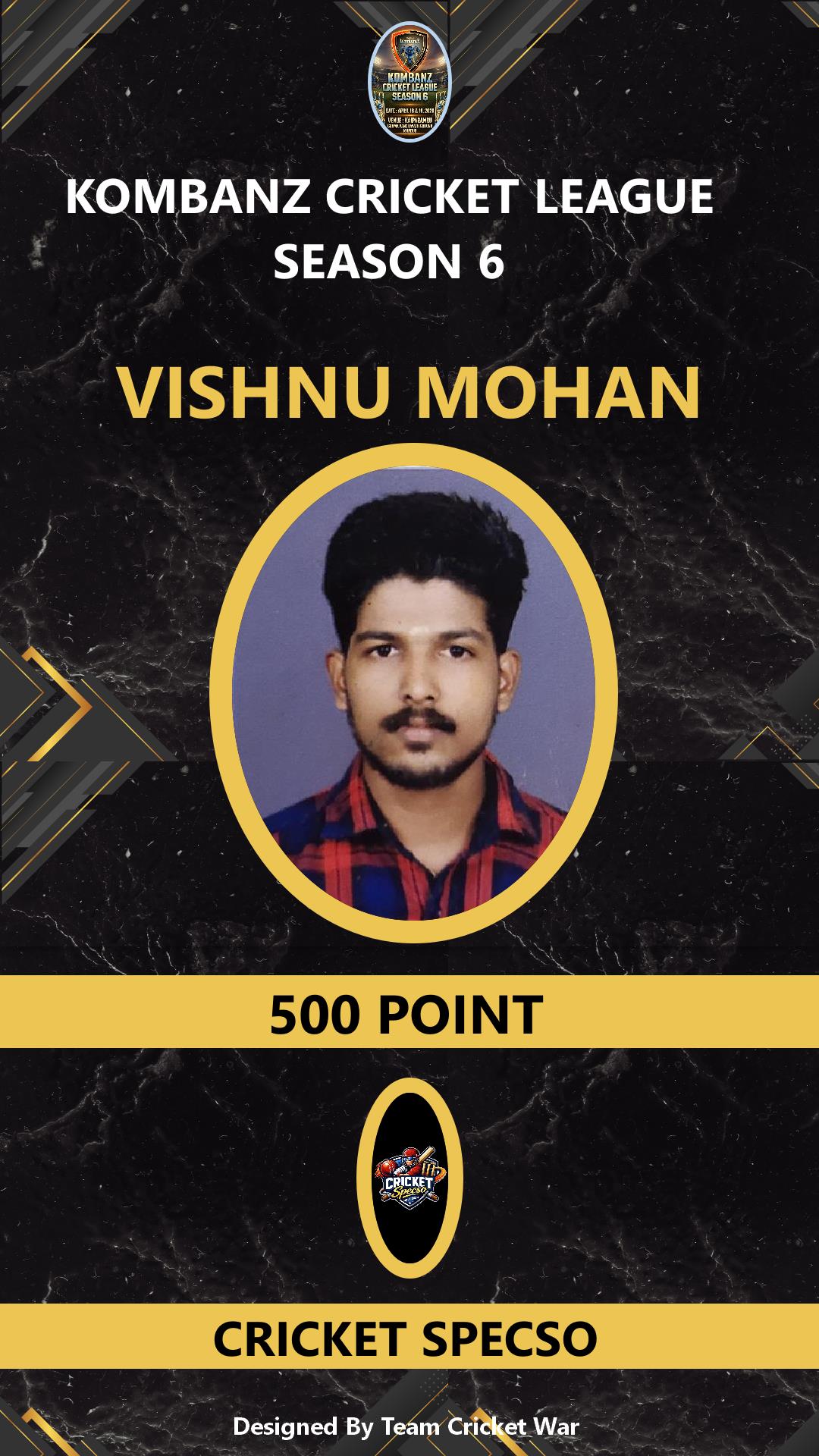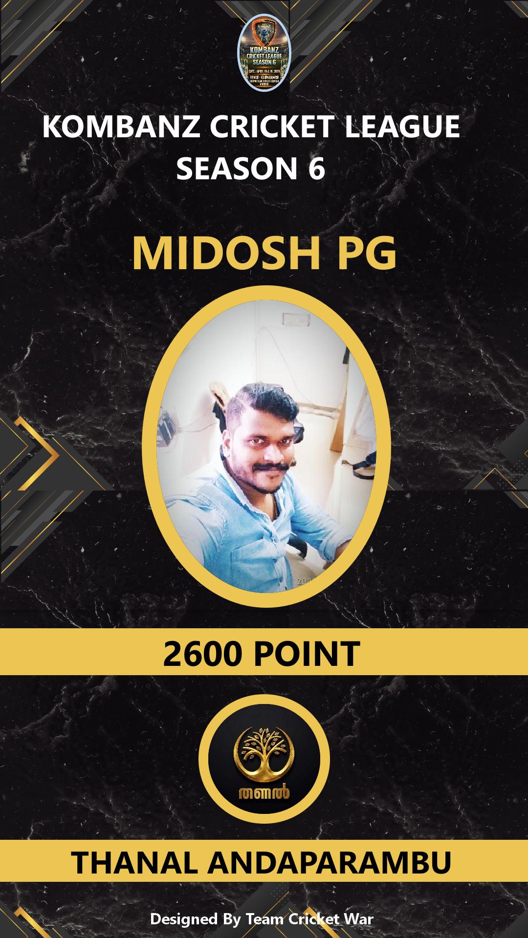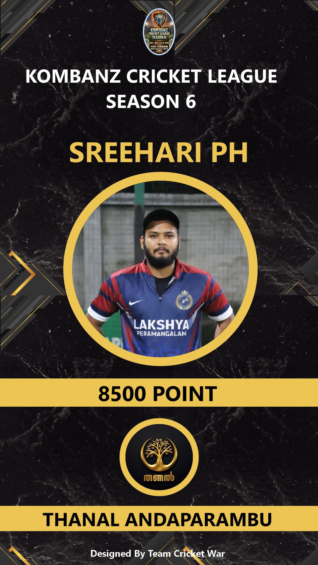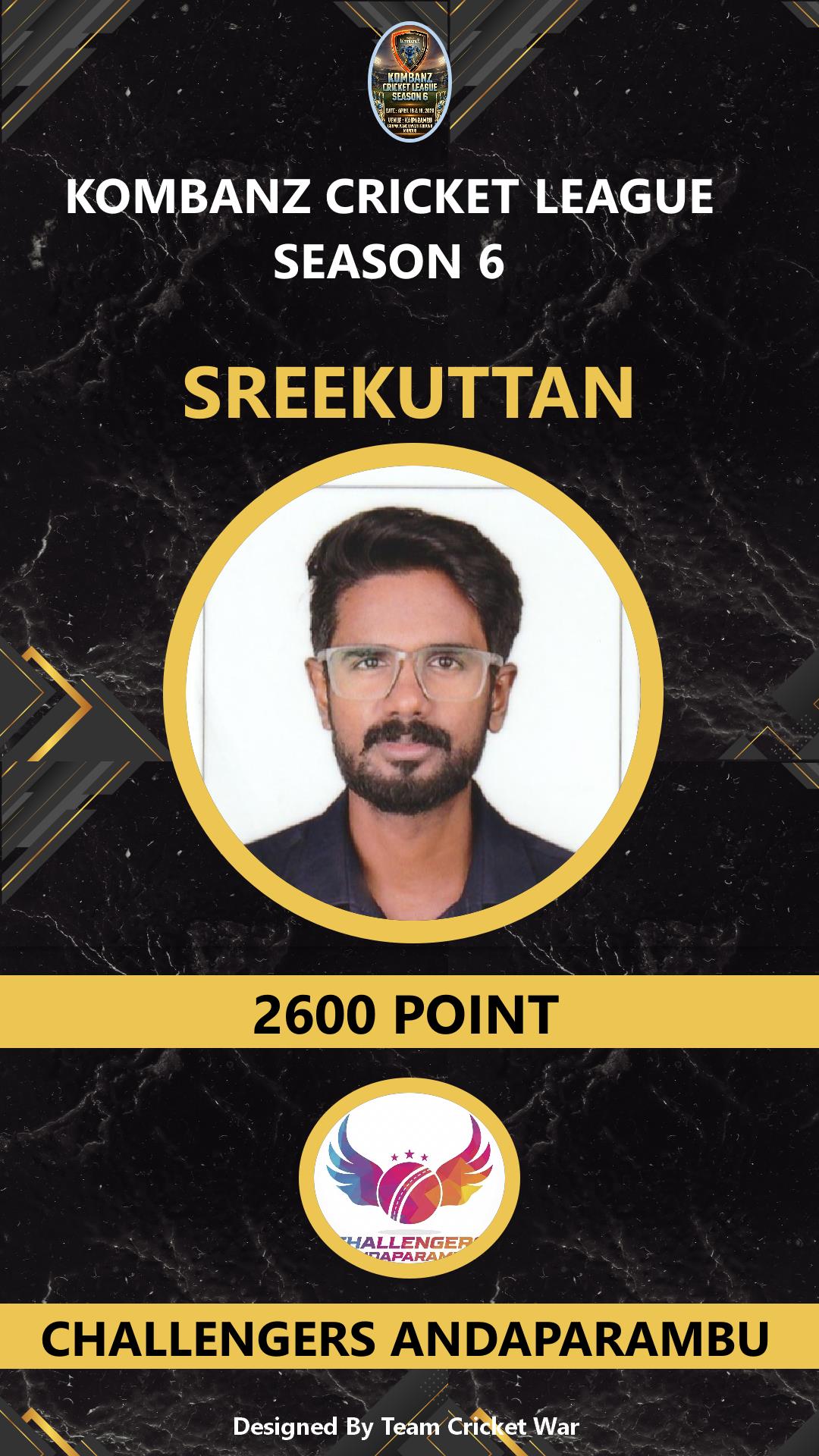 BOWLING ALLROUNDER, AGE : 26 KAIPARAMBU Bid Amount : 800 Team : CRICKET SPECSO Download ID Card VIEW PROFILE |