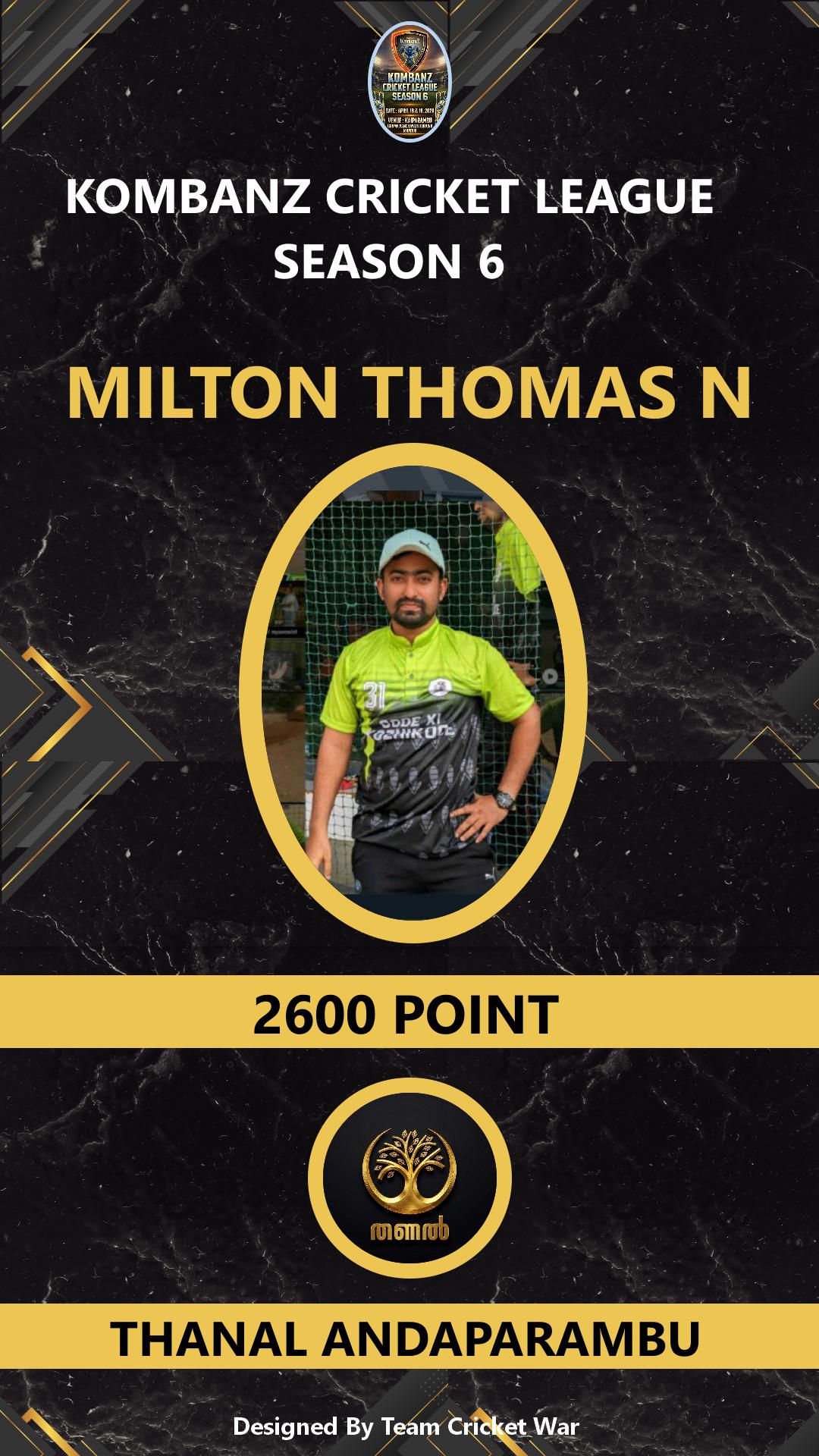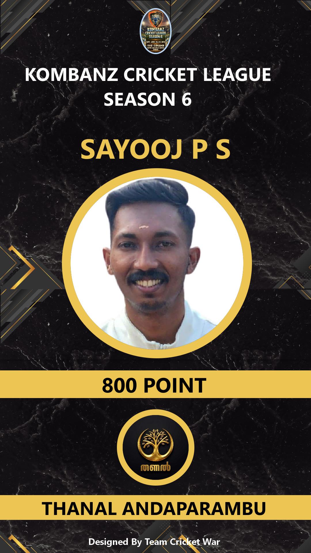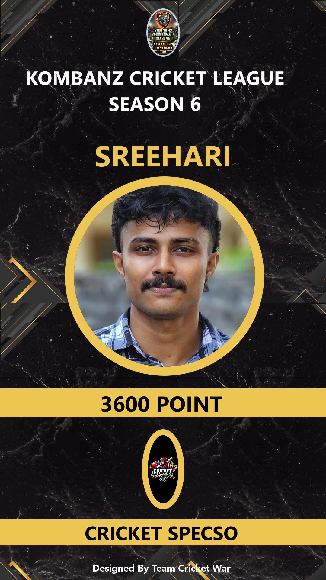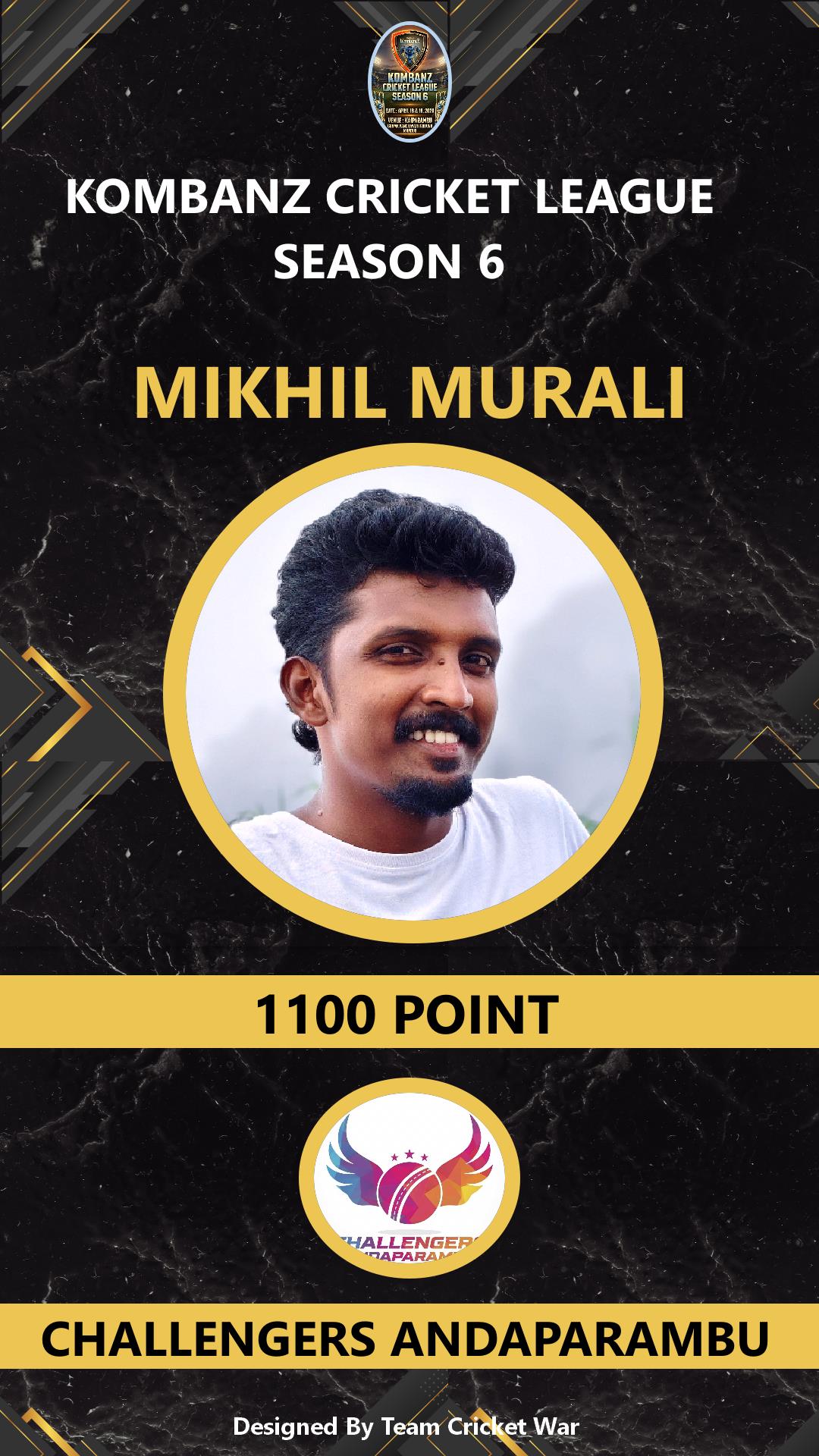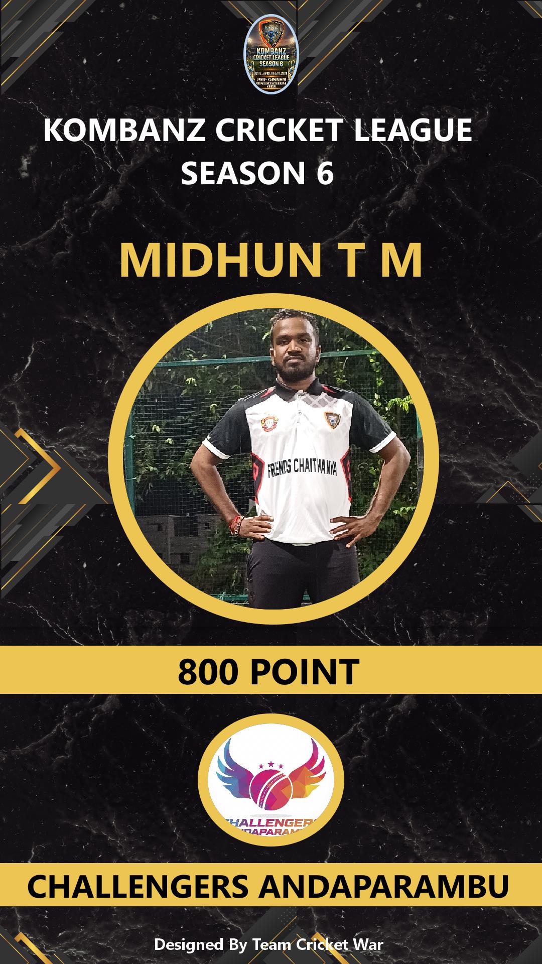 BOWLING ALLROUNDER, AGE : 26 KAIPARAMBU Bid Amount : 800 Team : CRICKET SPECSO Download ID Card VIEW PROFILE |