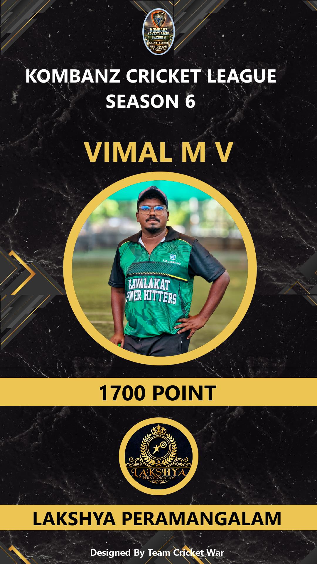 BOWLING ALLROUNDER, AGE : 38 PERAMANGALAM Bid Amount : 1700 Team : LAKSHYA PERAMANGALAM Download ID Card VIEW PROFILE |