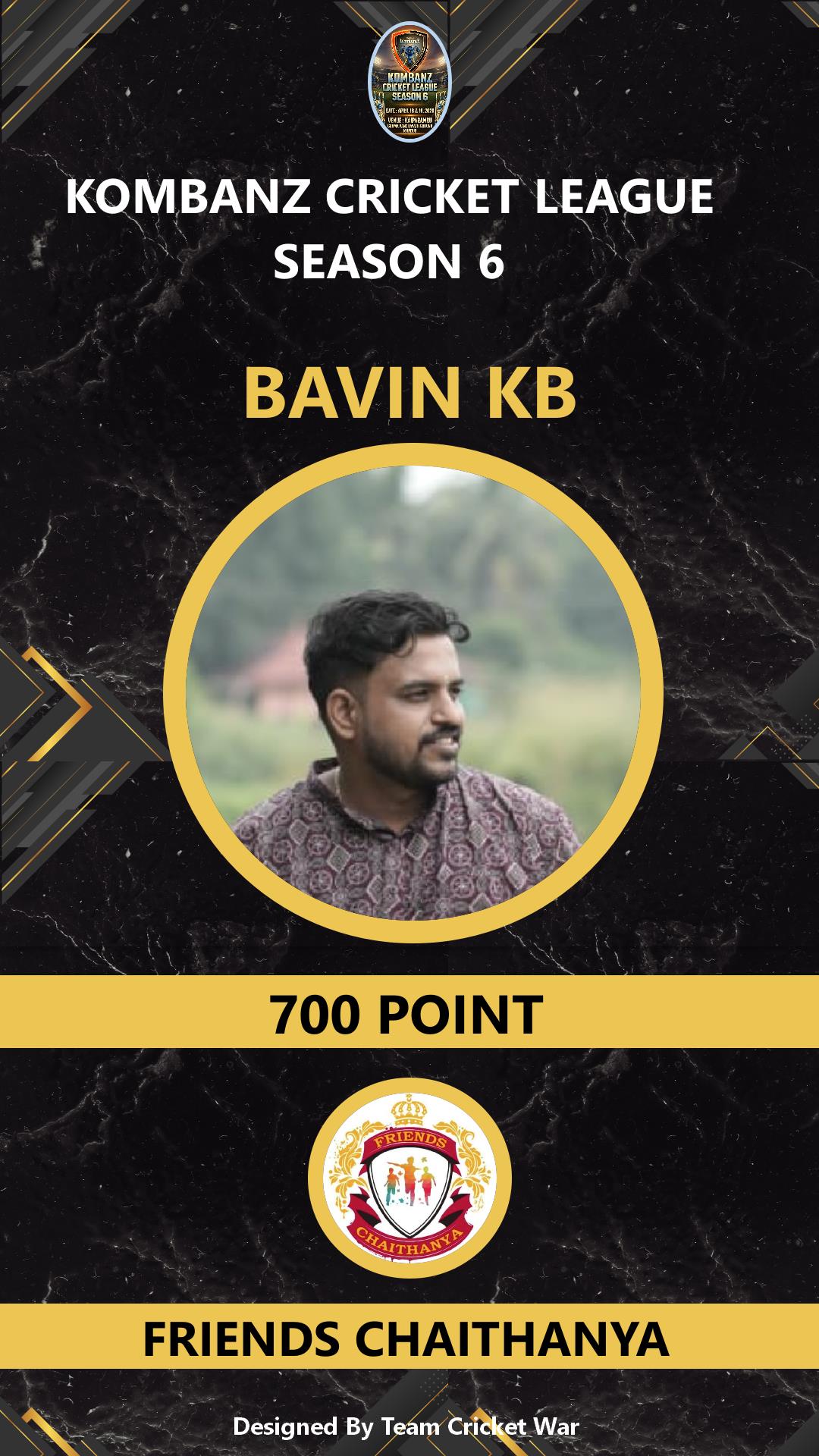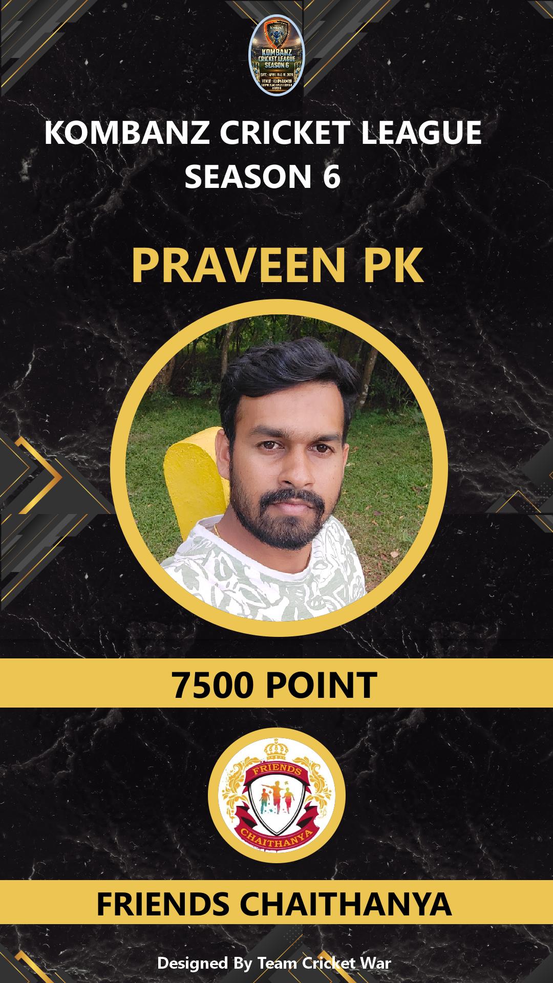 BATSMAN, AGE : 32 PERAMANGALAM Bid Amount : 700 Team : FRIENDS CHAITHANYA Download ID Card VIEW PROFILE |