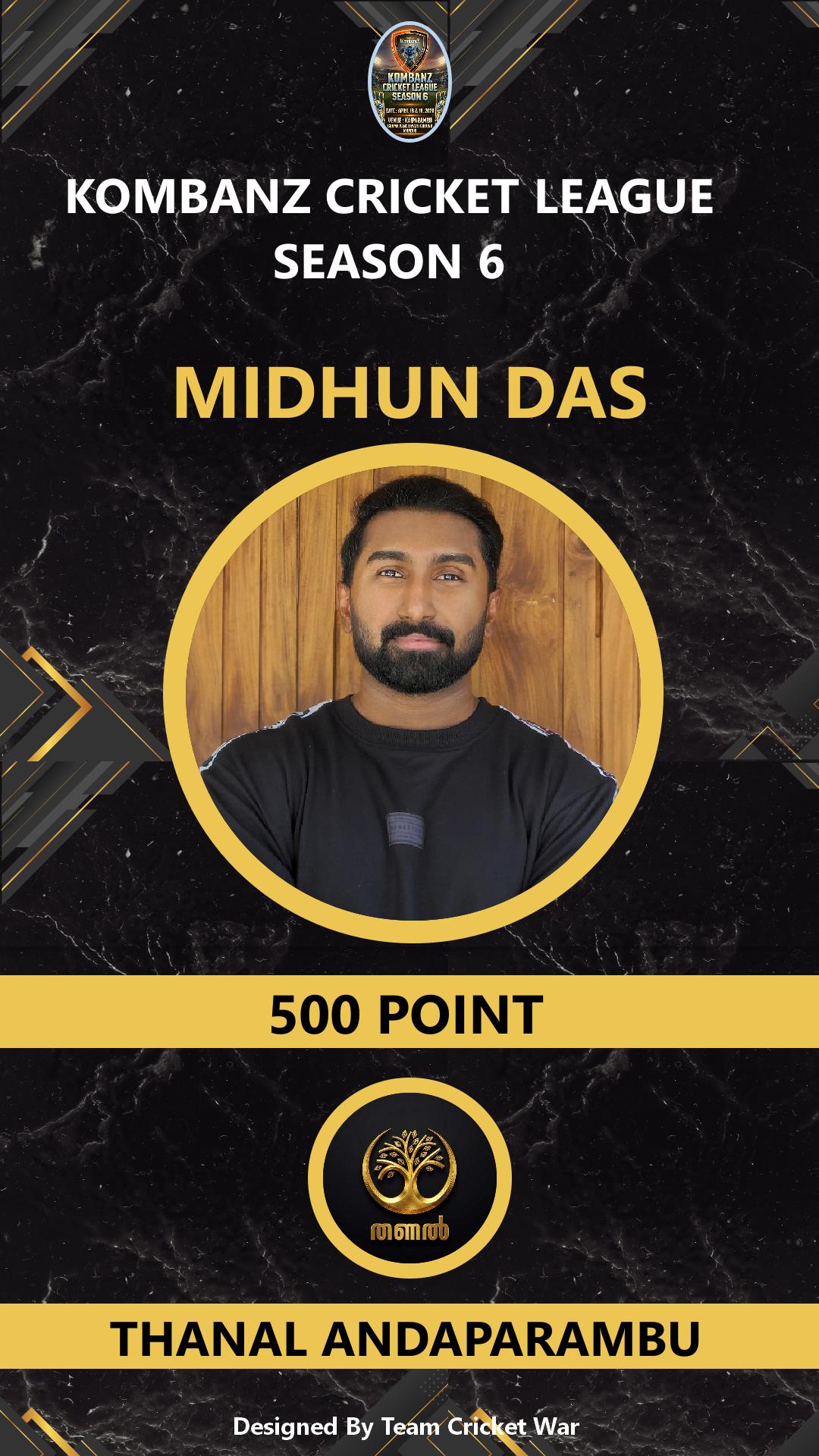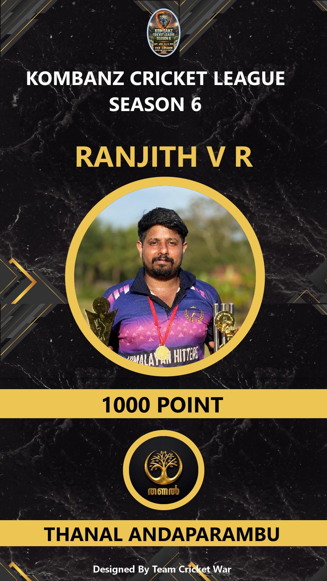 BATTING ALLROUNDER, AGE : 33 PUTHUR Bid Amount : 700 Team : THANAL ANDAPARAMBU Download ID Card VIEW PROFILE |