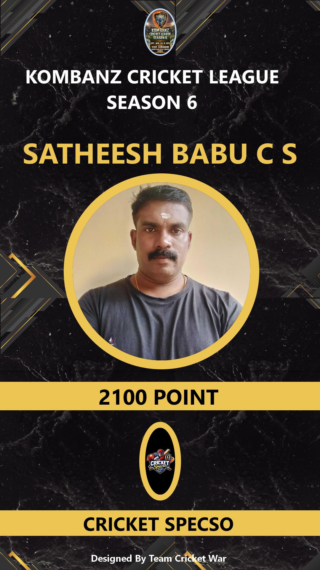 BATSMAN, AGE : 37 PERAMANGALAM Bid Amount : 2600 Team : CRICKET SPECSO Download ID Card VIEW PROFILE |