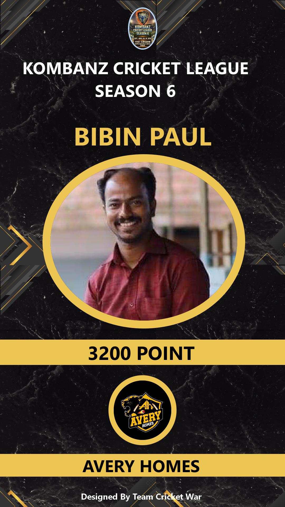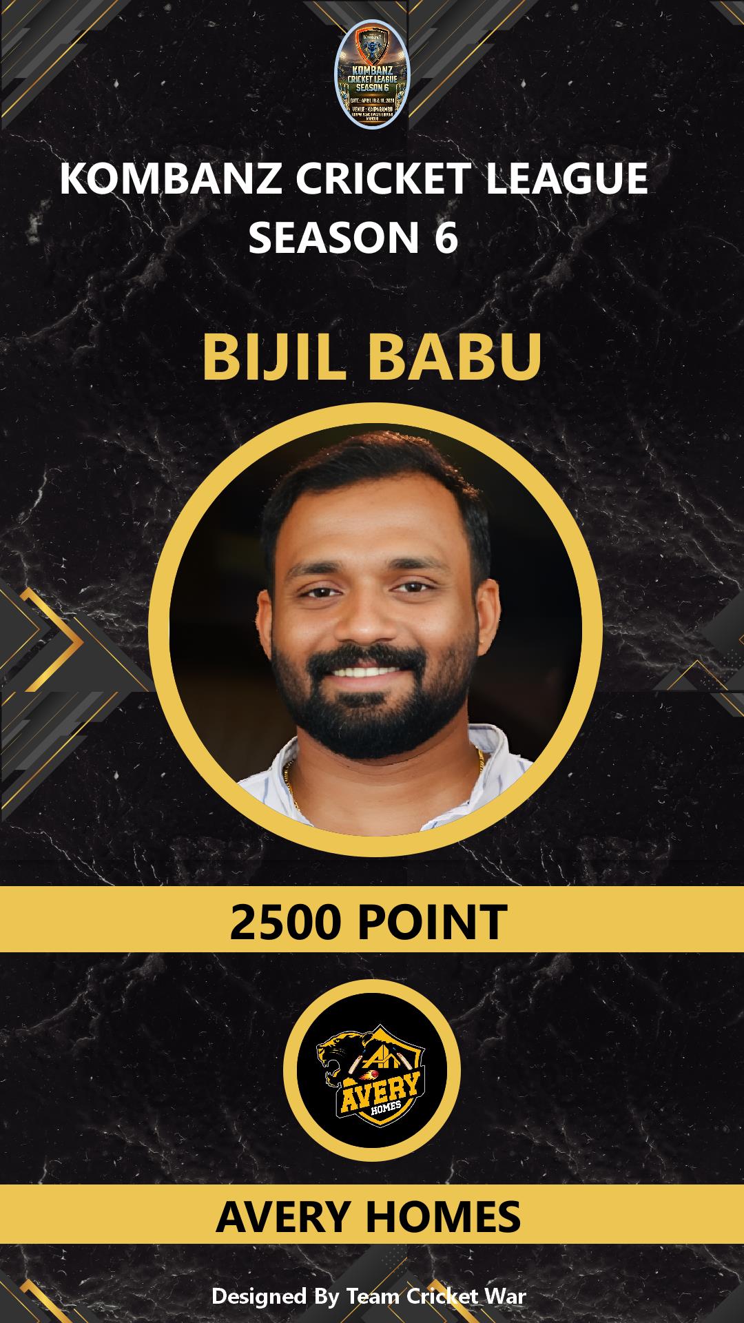 BOWLER, AGE : 27 KAIPARAMBU Bid Amount : 1300 Team : AVERY HOMES Download ID Card VIEW PROFILE |
