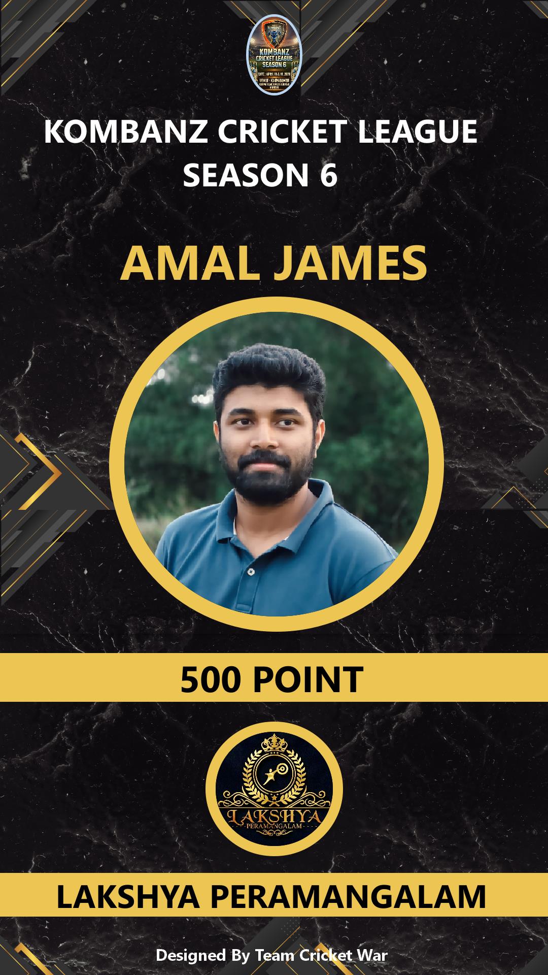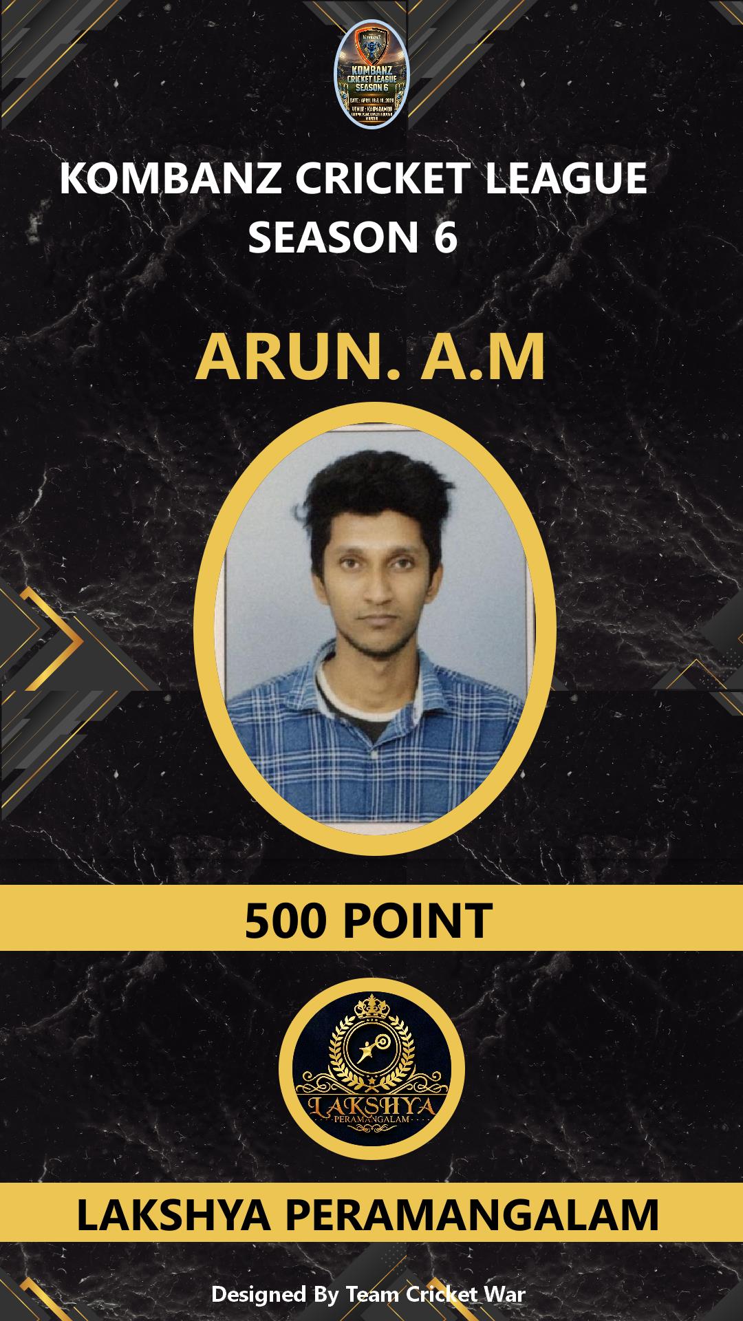 ALLROUNDER, AGE : 38 PERAMANGALAM Bid Amount : 500 Team : LAKSHYA PERAMANGALAM Download ID Card VIEW PROFILE |