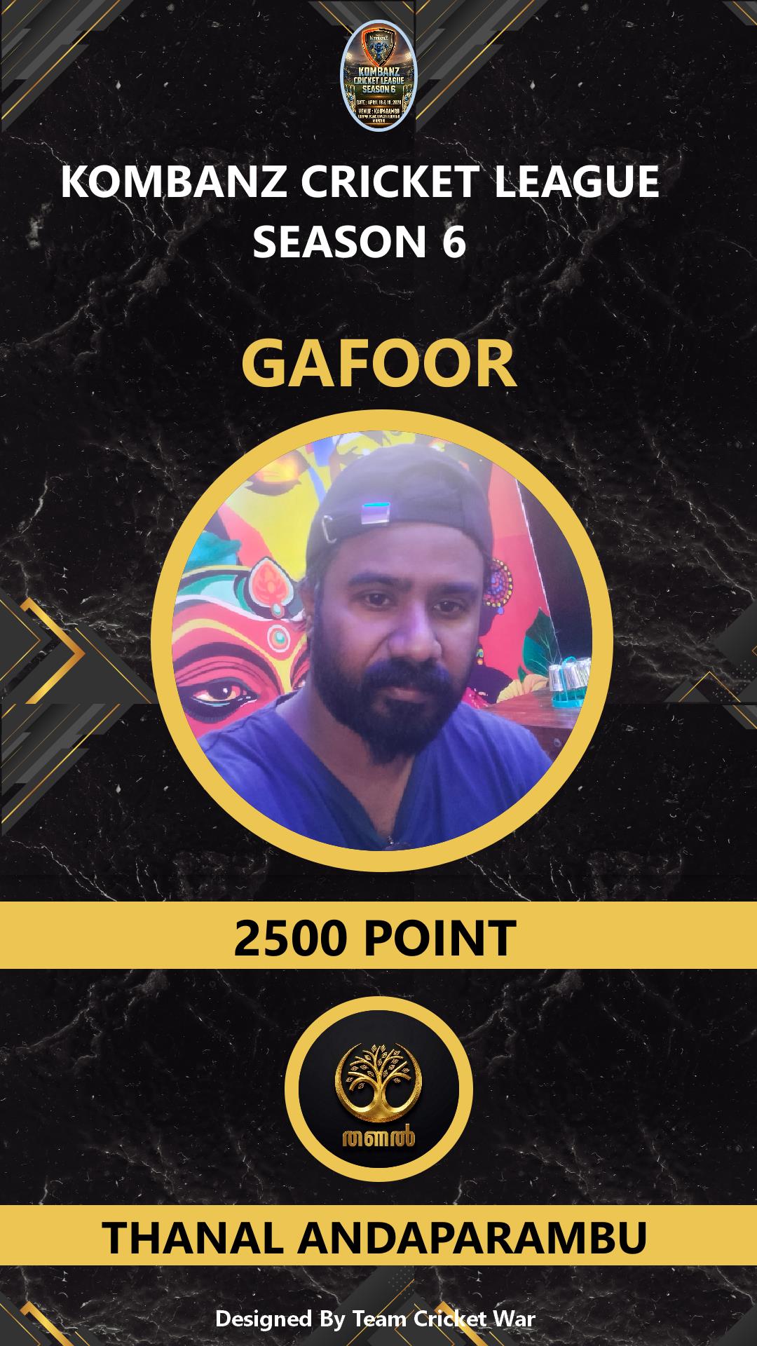 ALLROUNDER, AGE : 34 PUTTEKKARA Bid Amount : 600 Team : THANAL ANDAPARAMBU Download ID Card VIEW PROFILE |