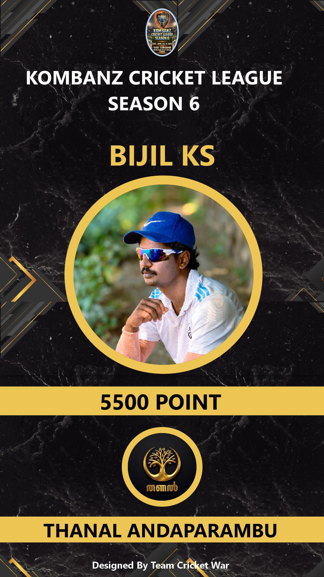BOWLING ALLROUNDER, AGE : 31 THRISSUR Bid Amount : 2600 Team : THANAL ANDAPARAMBU Download ID Card VIEW PROFILE |