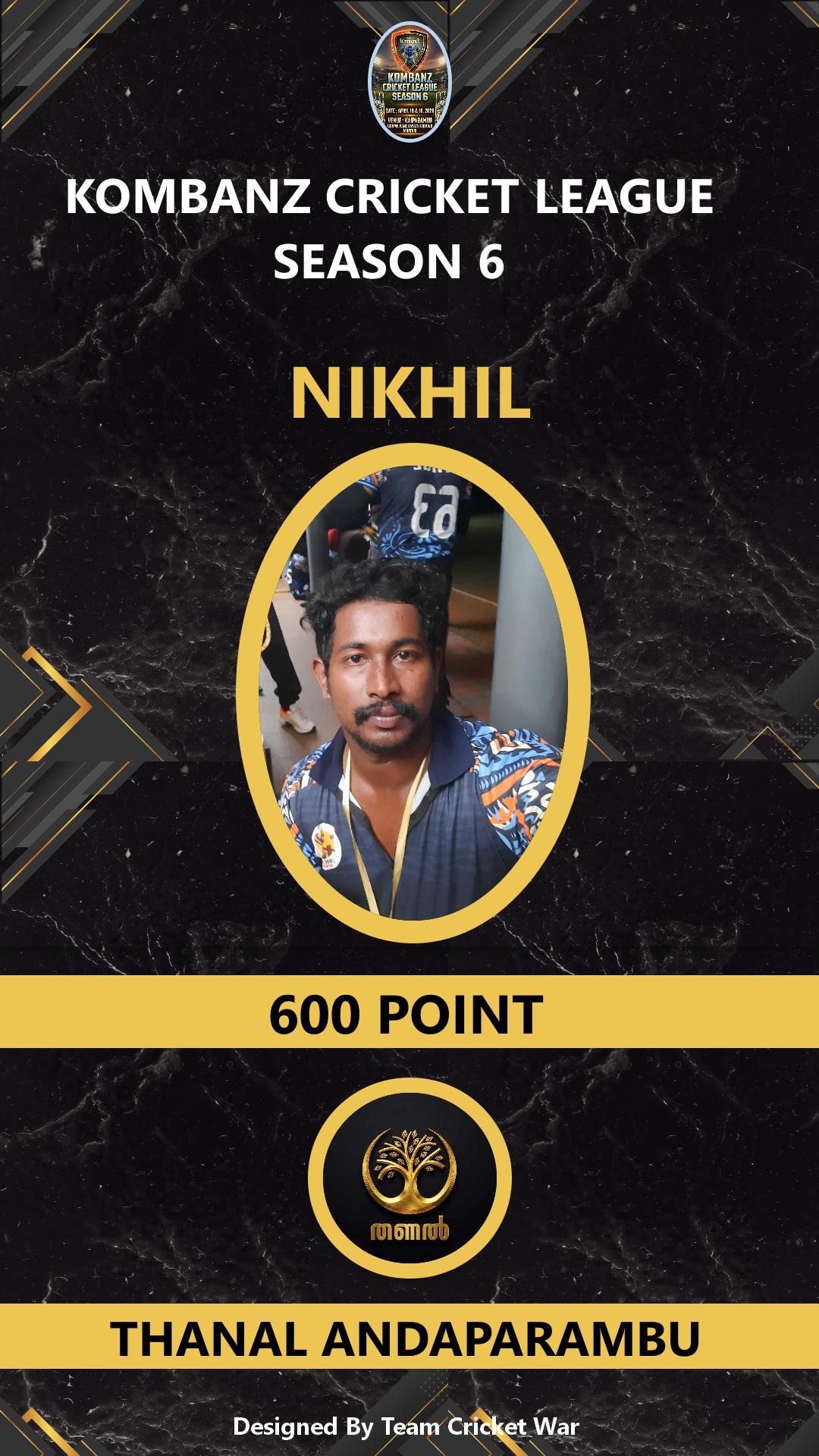 ALLROUNDER, AGE : 28 KAIPARAMBU Bid Amount : 8500 Team : THANAL ANDAPARAMBU Download ID Card VIEW PROFILE |