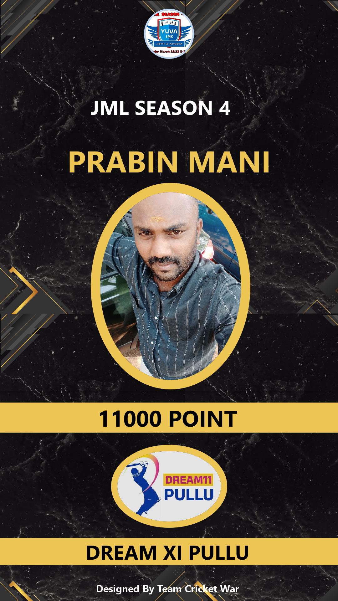 BATSMAN, AGE : 29 MANAKODY Bid Amount : 5500 Team : Z ZONE Download ID Card VIEW PROFILE |