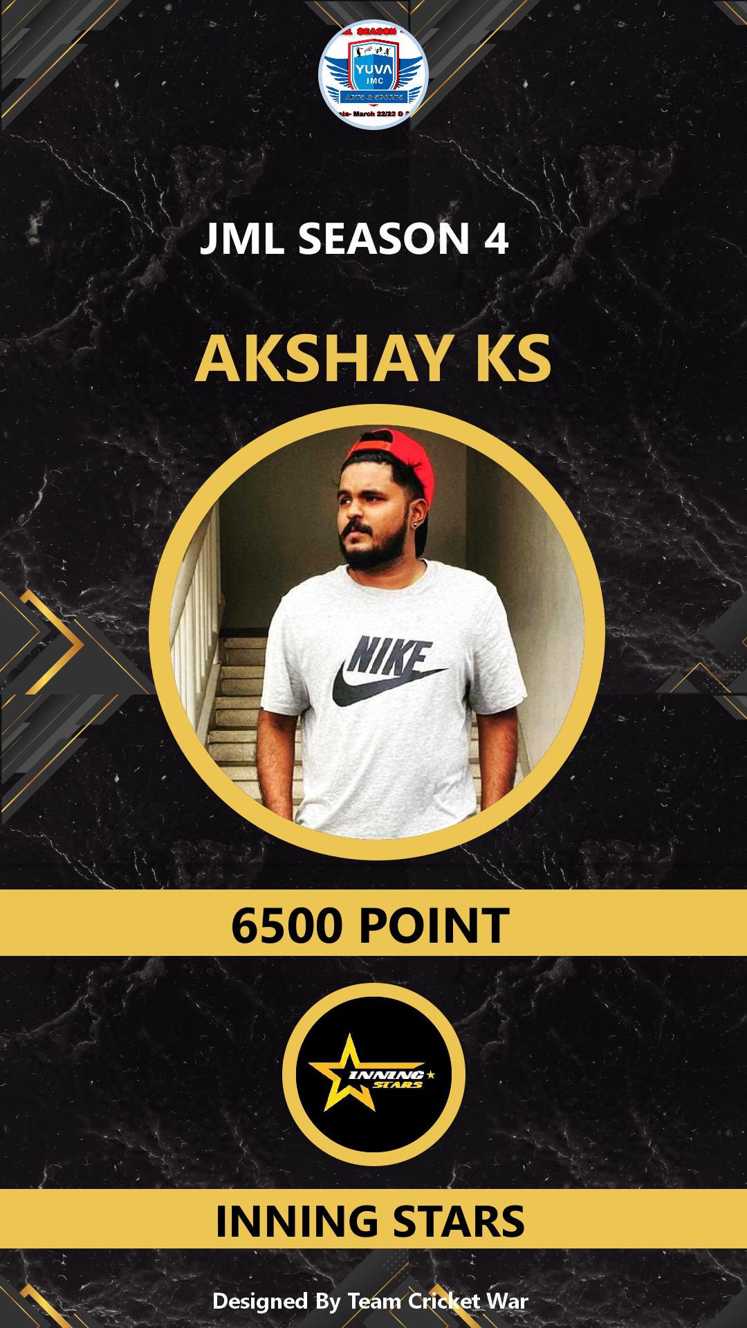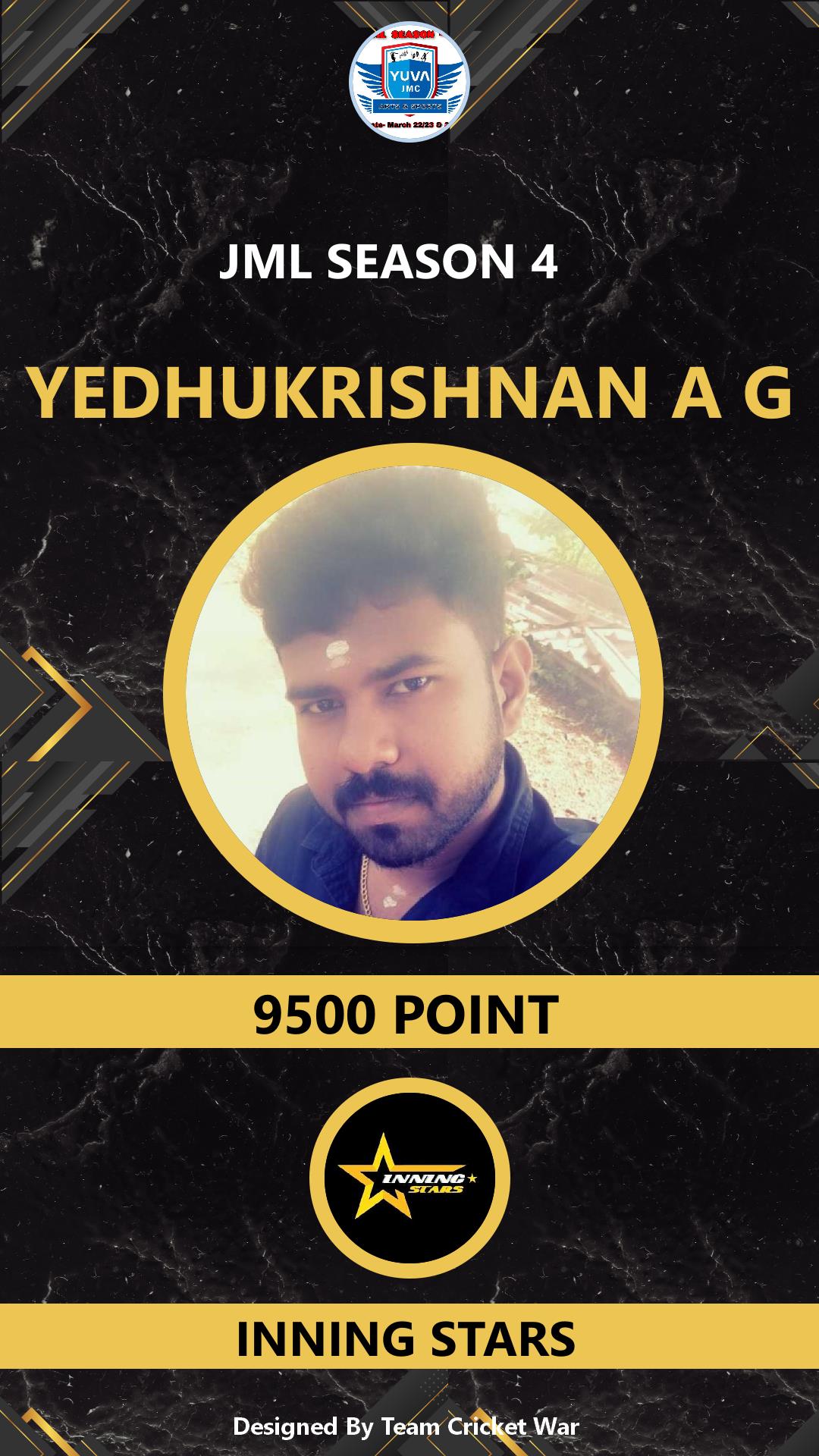 BATSMAN, AGE : 37 VELUTHUR Bid Amount : 9500 Team : INNING STARS Download ID Card VIEW PROFILE |