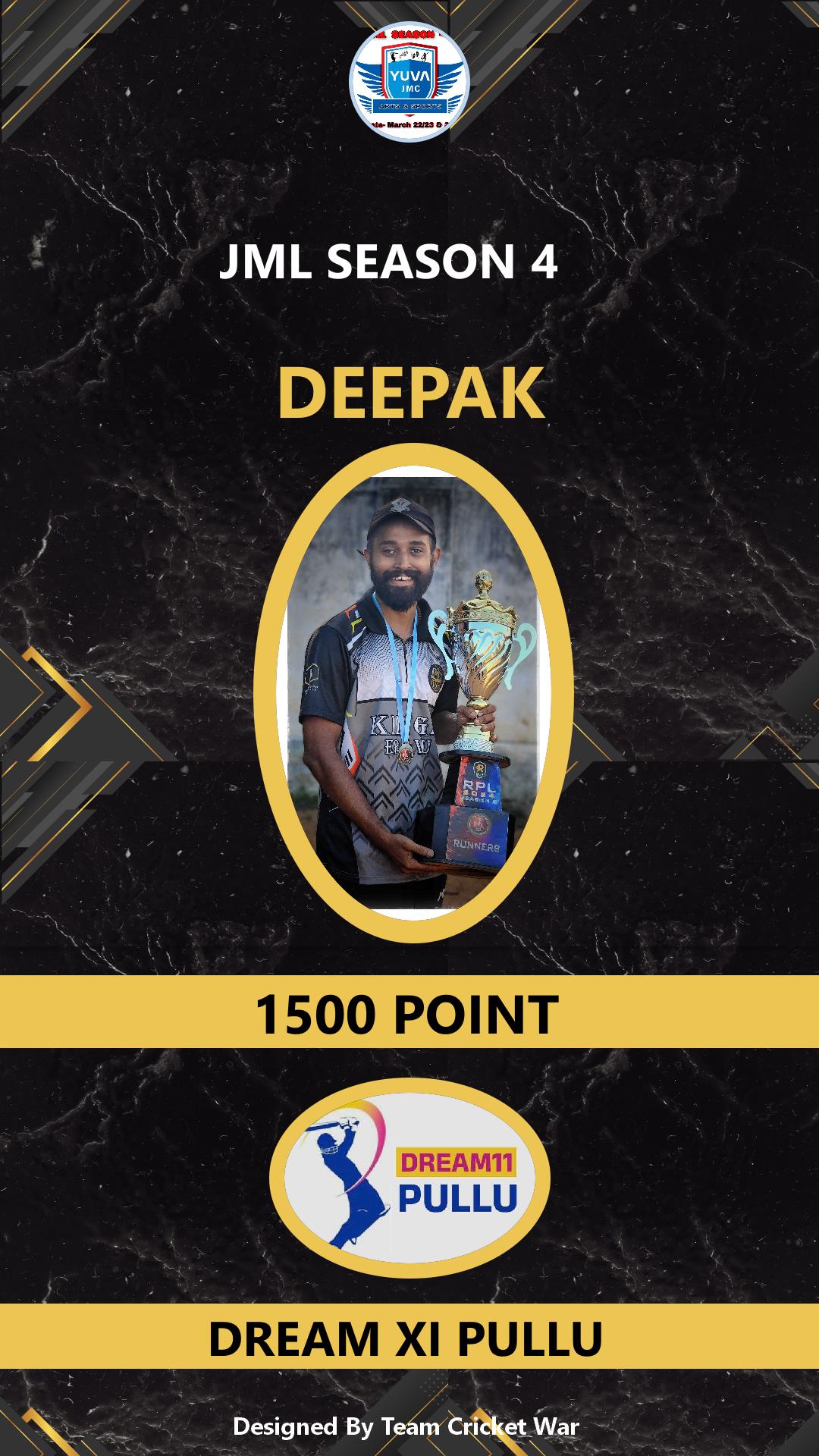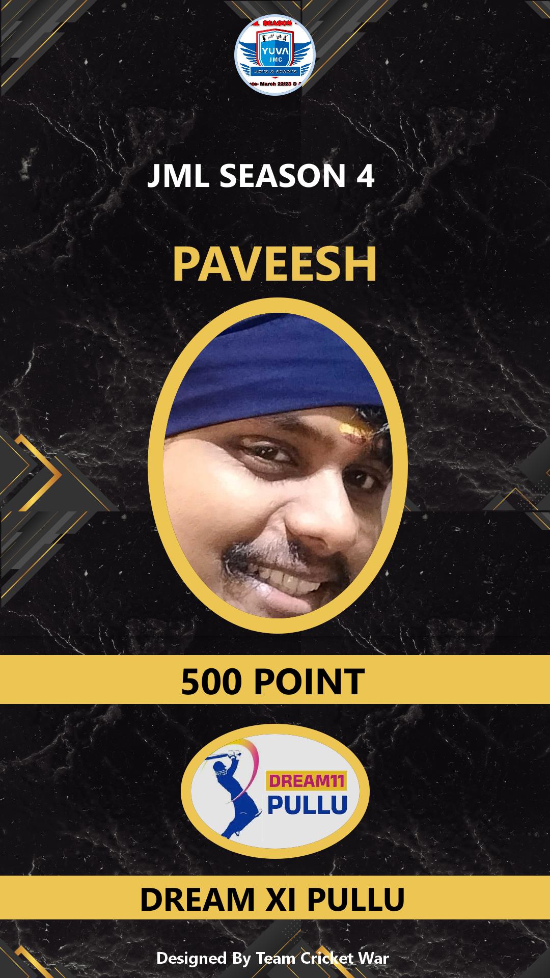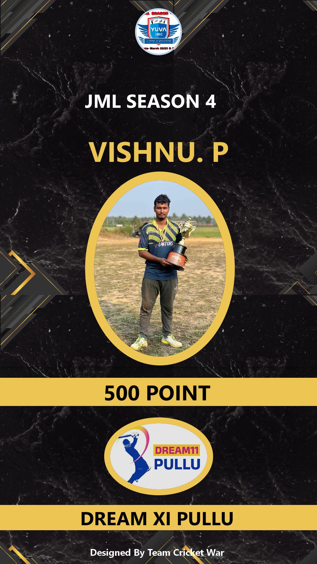 BOWLING ALLROUNDER, AGE : 25 ERAVU Bid Amount : 500 Team : DREAM XI PULLU Download ID Card VIEW PROFILE |