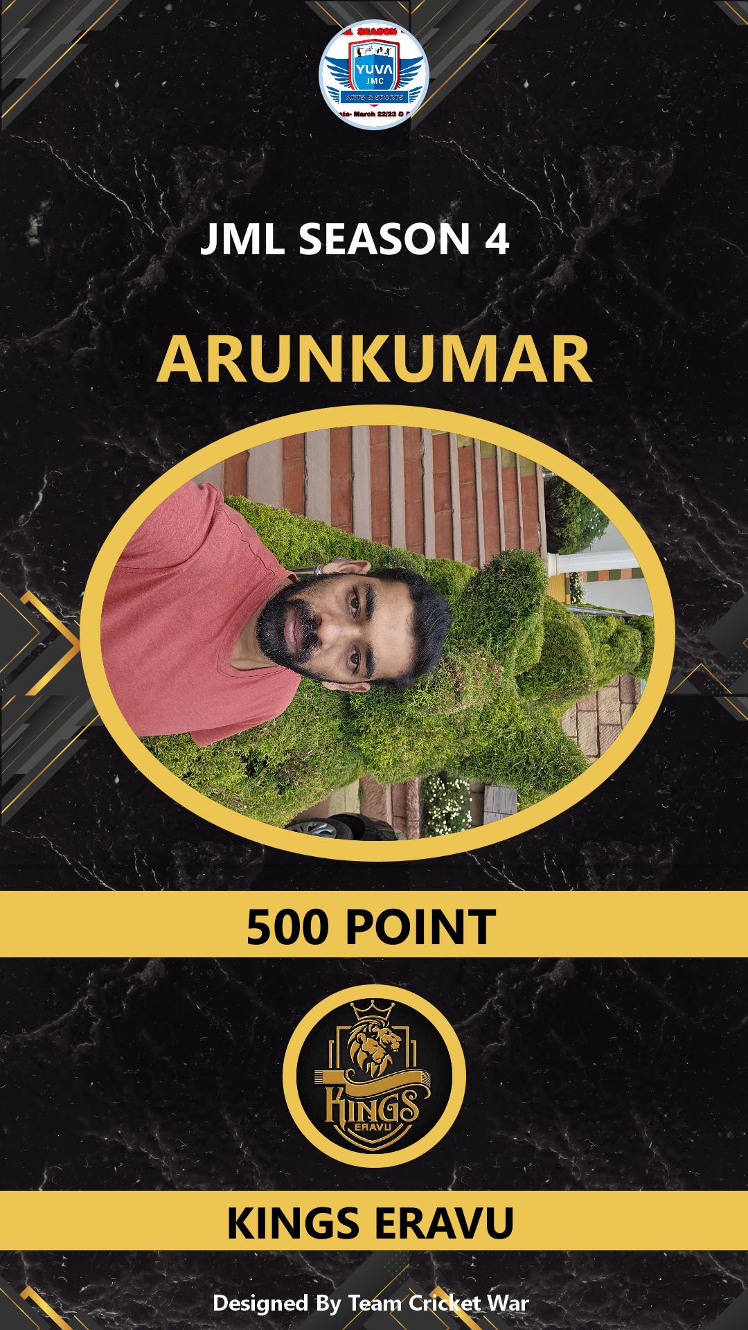 ALLROUNDER, AGE : 32 ERAVU Bid Amount : 3400 Team : DHASARADHA Download ID Card VIEW PROFILE |