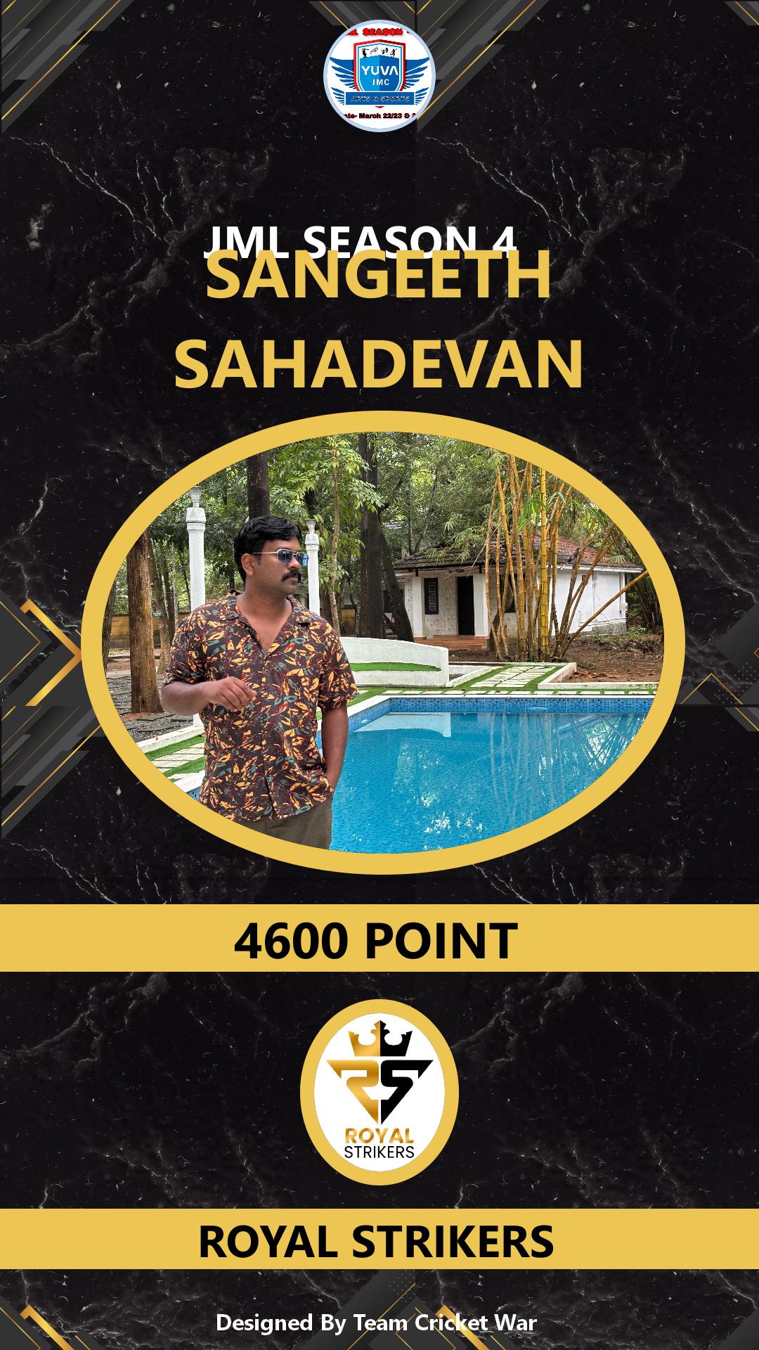 ALLROUNDER, AGE : 39 MANAKODY Bid Amount : 500 Team : ROYAL STRIKERS Download ID Card VIEW PROFILE |