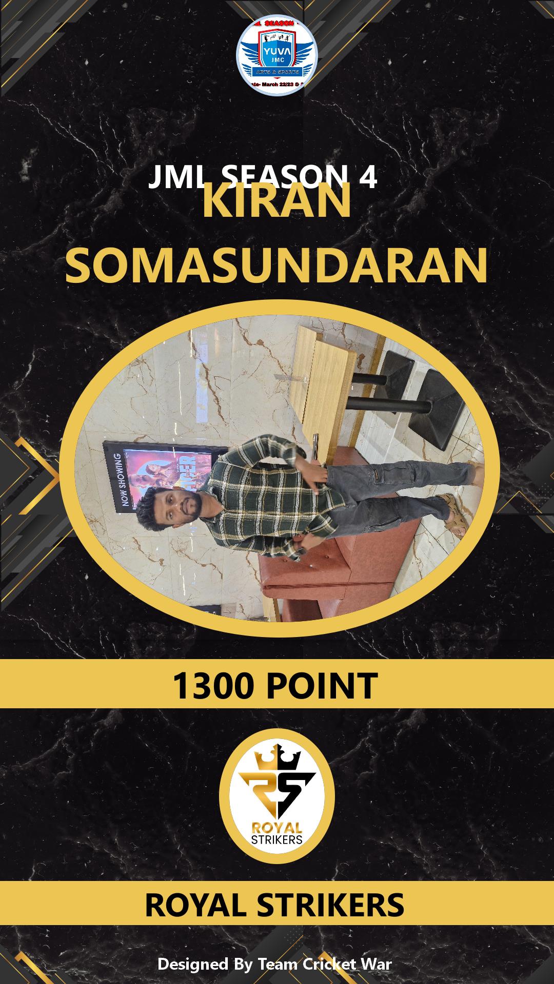 ALLROUNDER, AGE : 33 MANAKKODI Bid Amount : 1300 Team : ROYAL STRIKERS Download ID Card |
