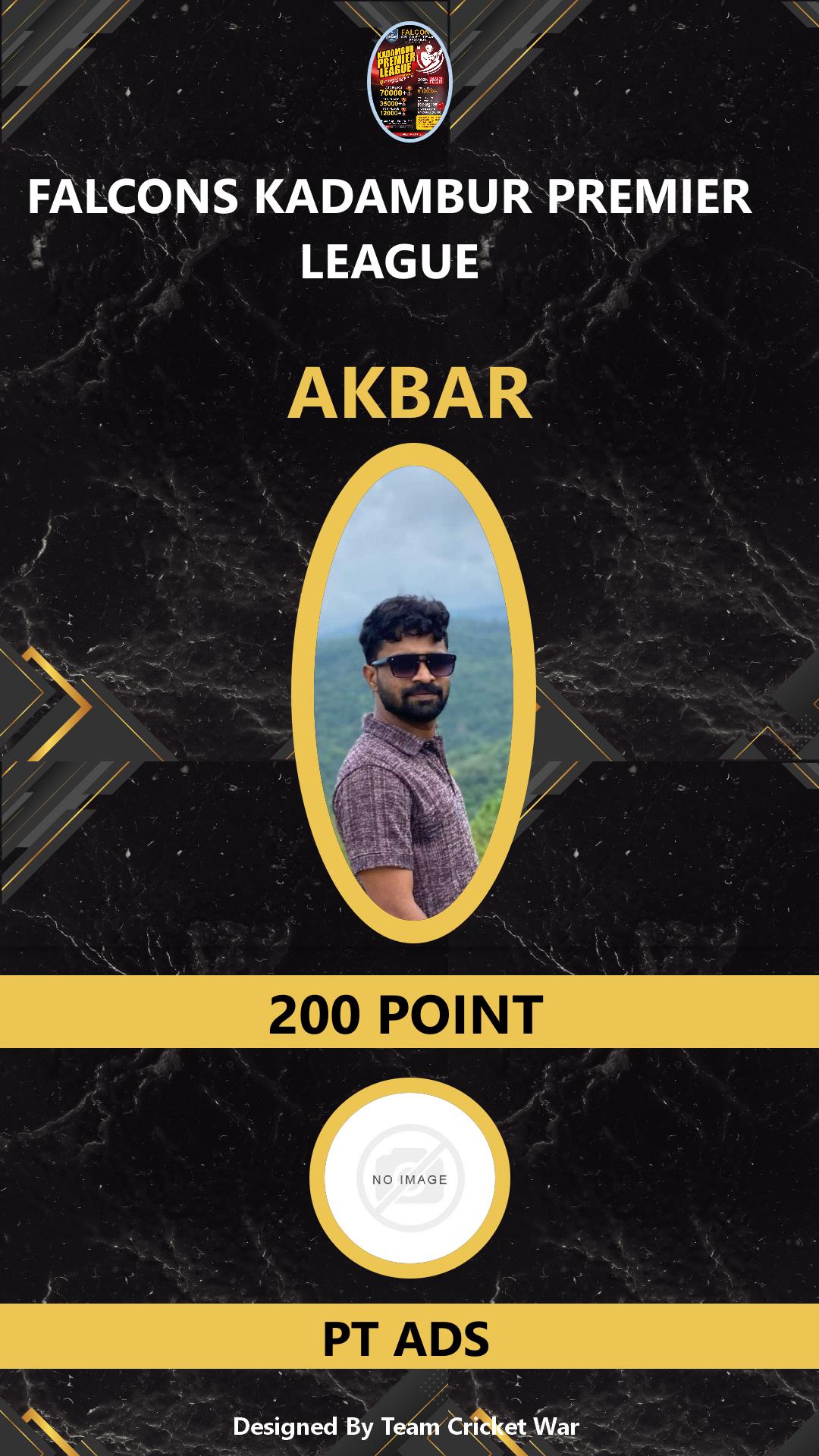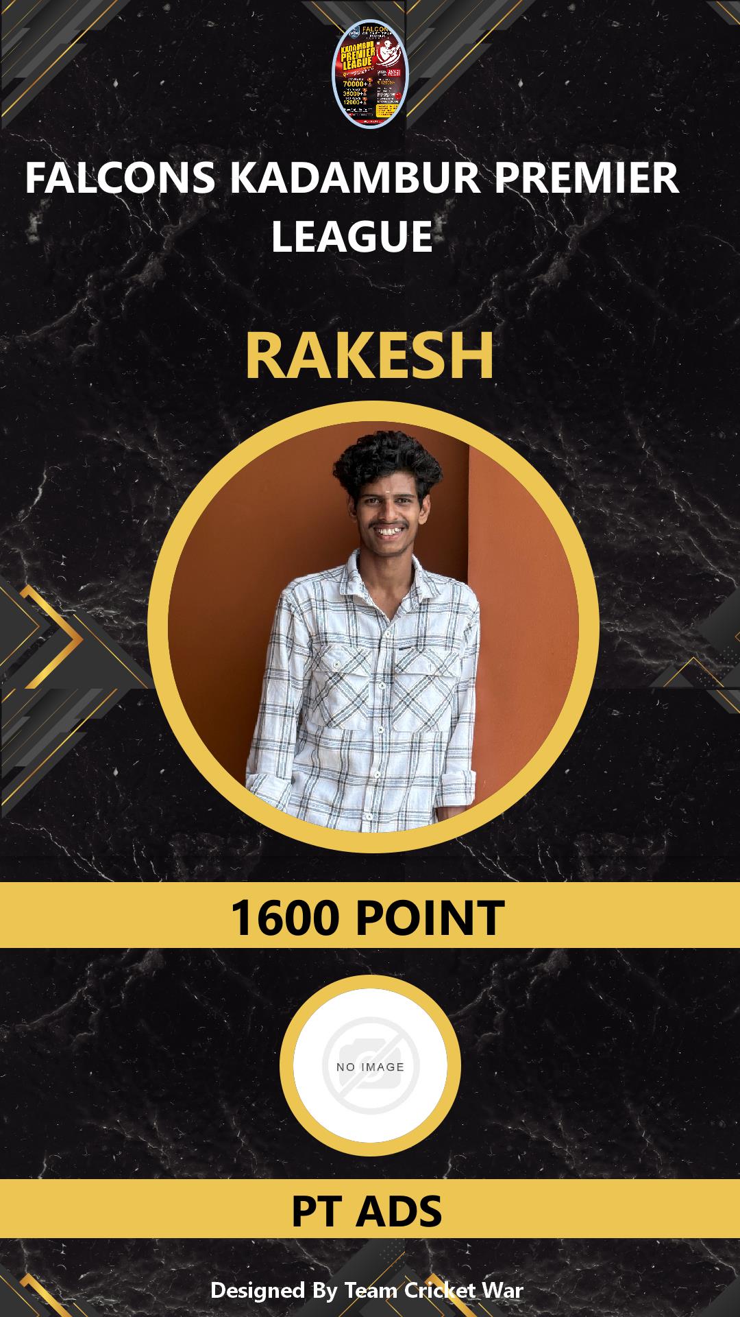 ALLROUNDER, AGE : 1 PUKKOTTUKAVU Bid Amount : 200 Team : PT ADS Download ID Card VIEW PROFILE |