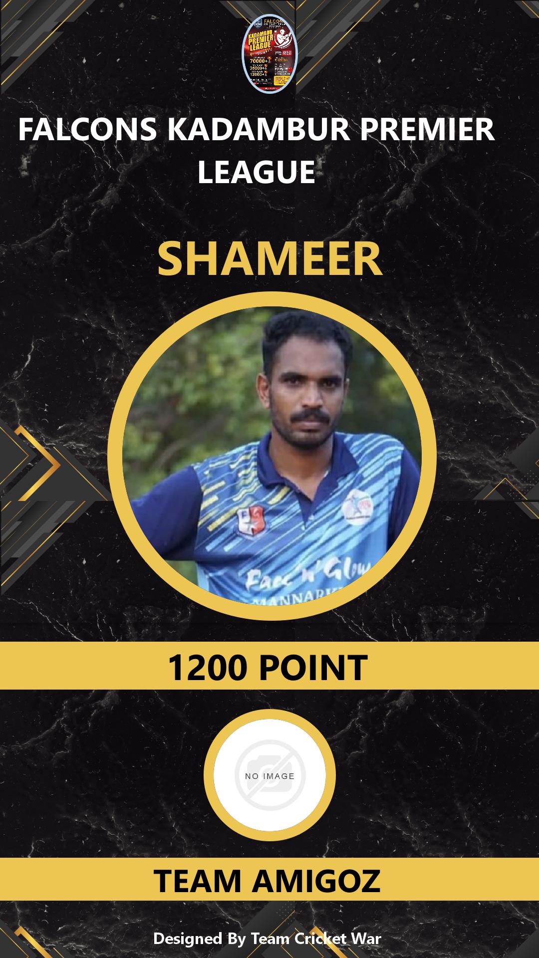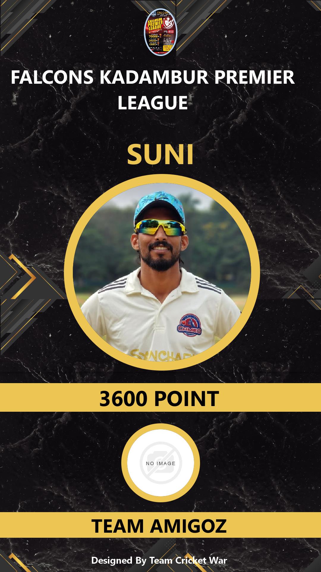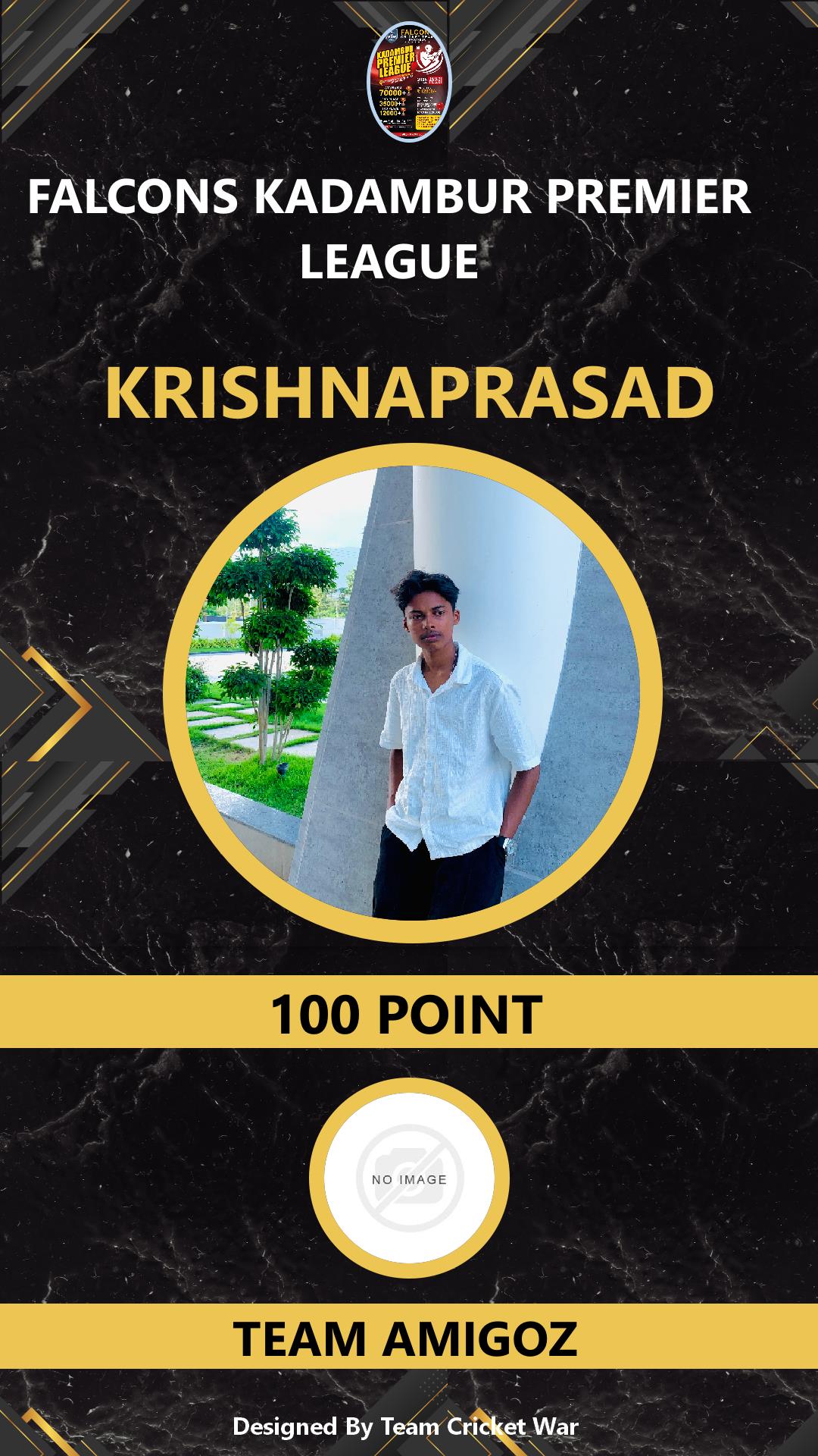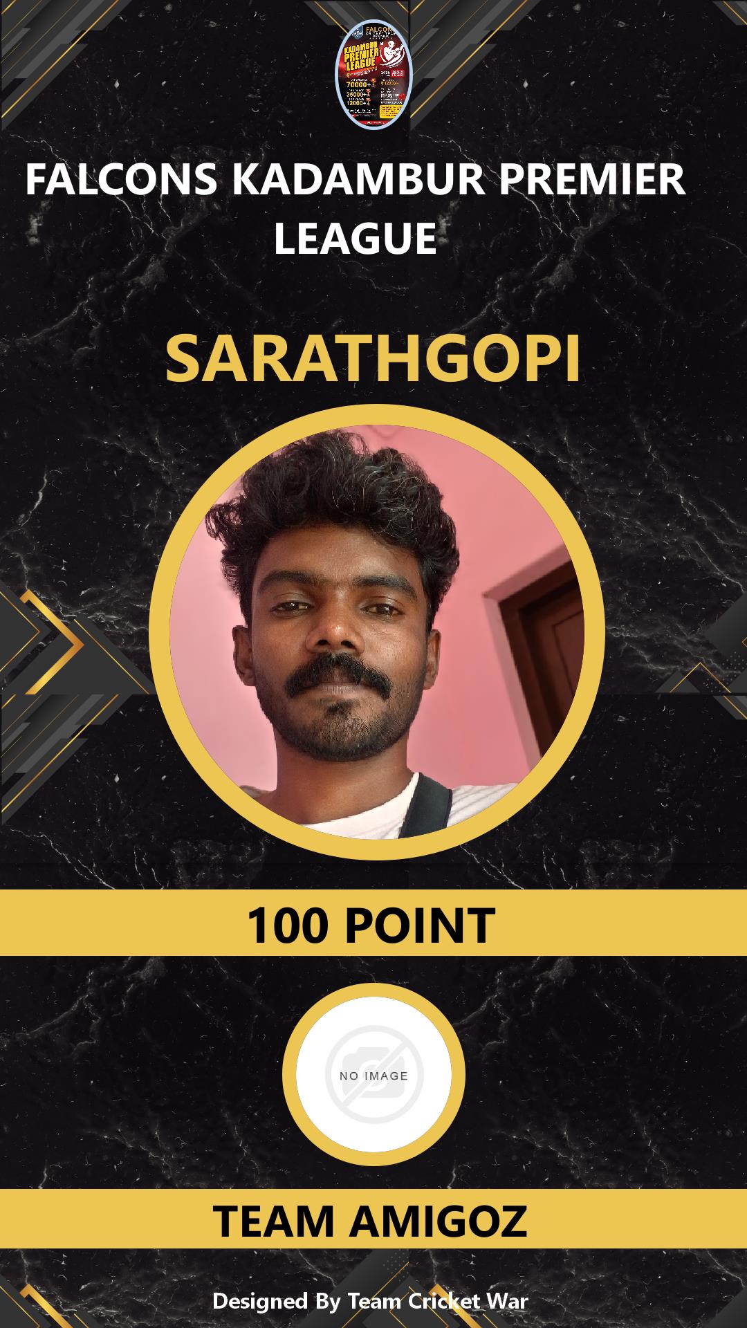 BATTING ALLROUNDER, AGE : 31 KADAMBUR Bid Amount : 1600 Team : TEAM AMIGOZ Download ID Card VIEW PROFILE |