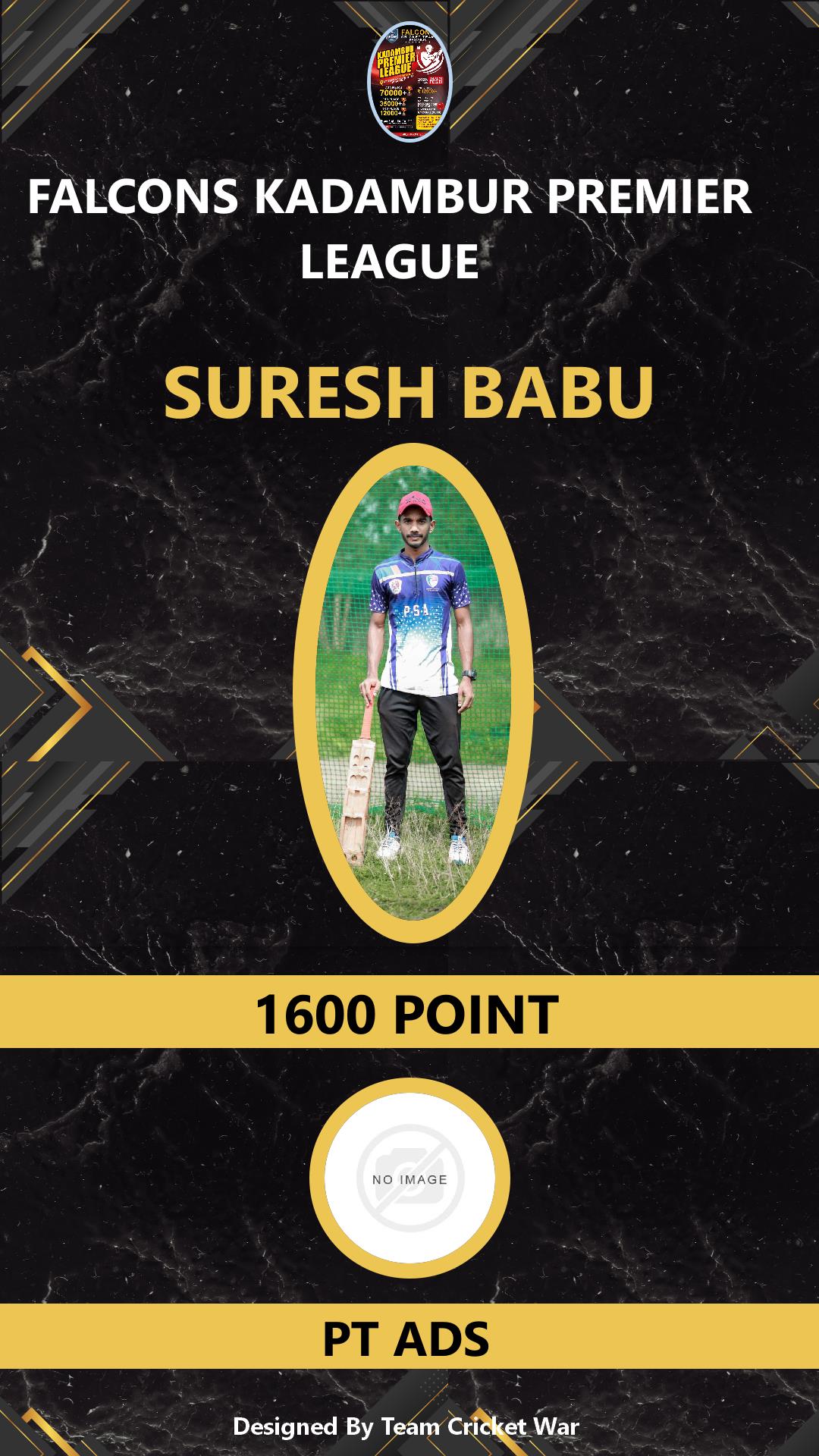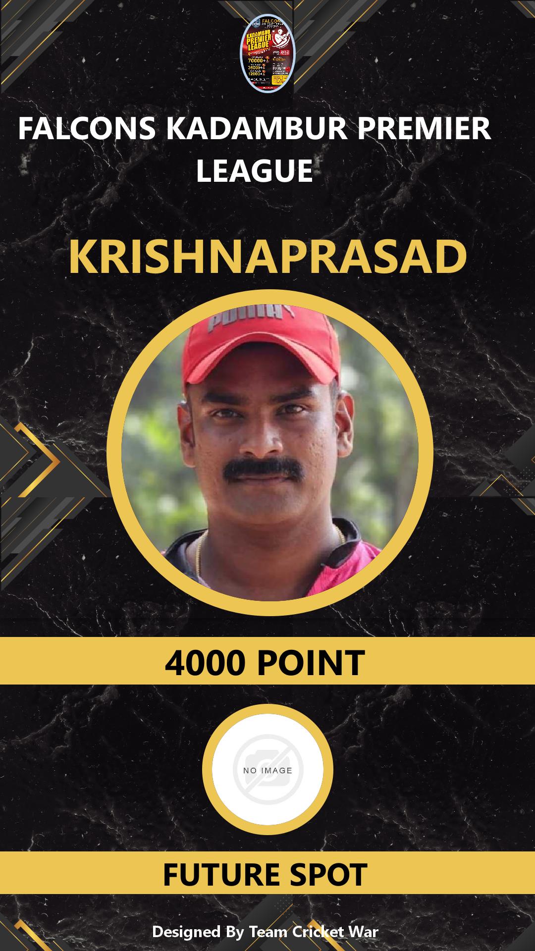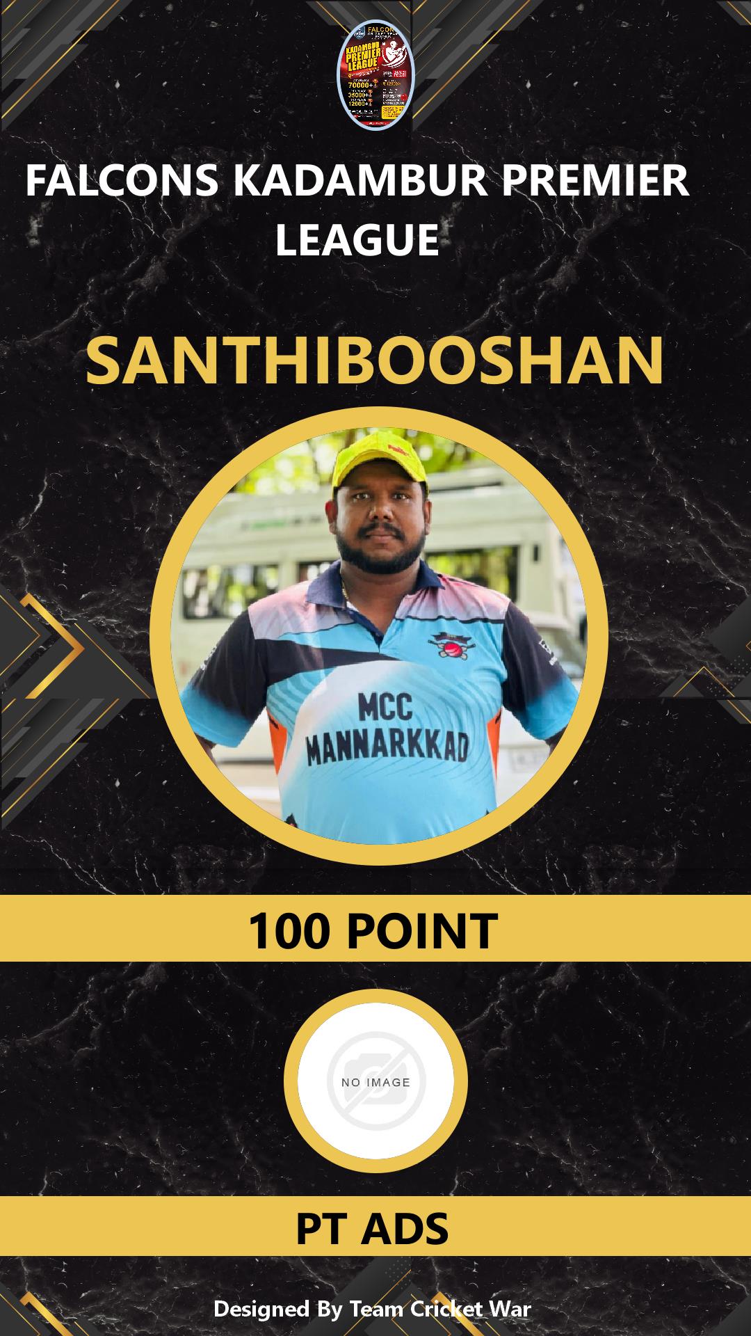BATTING ALLROUNDER, AGE : 31 KADAMBUR Bid Amount : 1600 Team : TEAM AMIGOZ Download ID Card VIEW PROFILE |