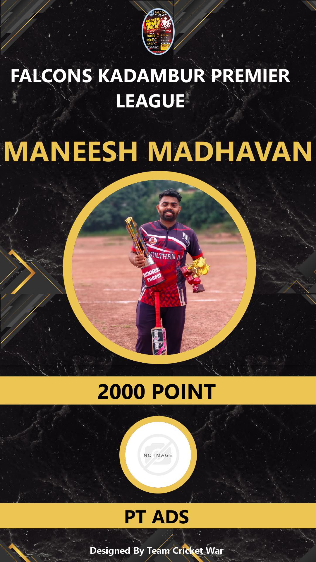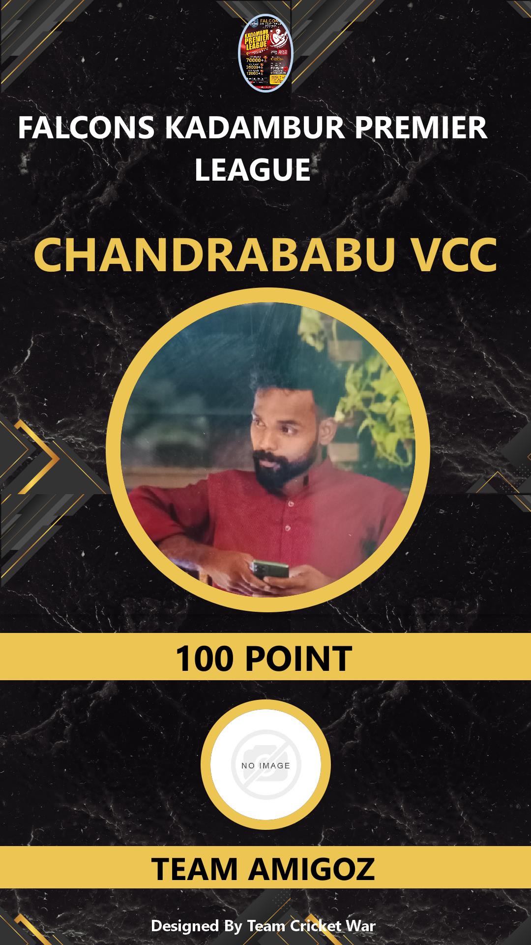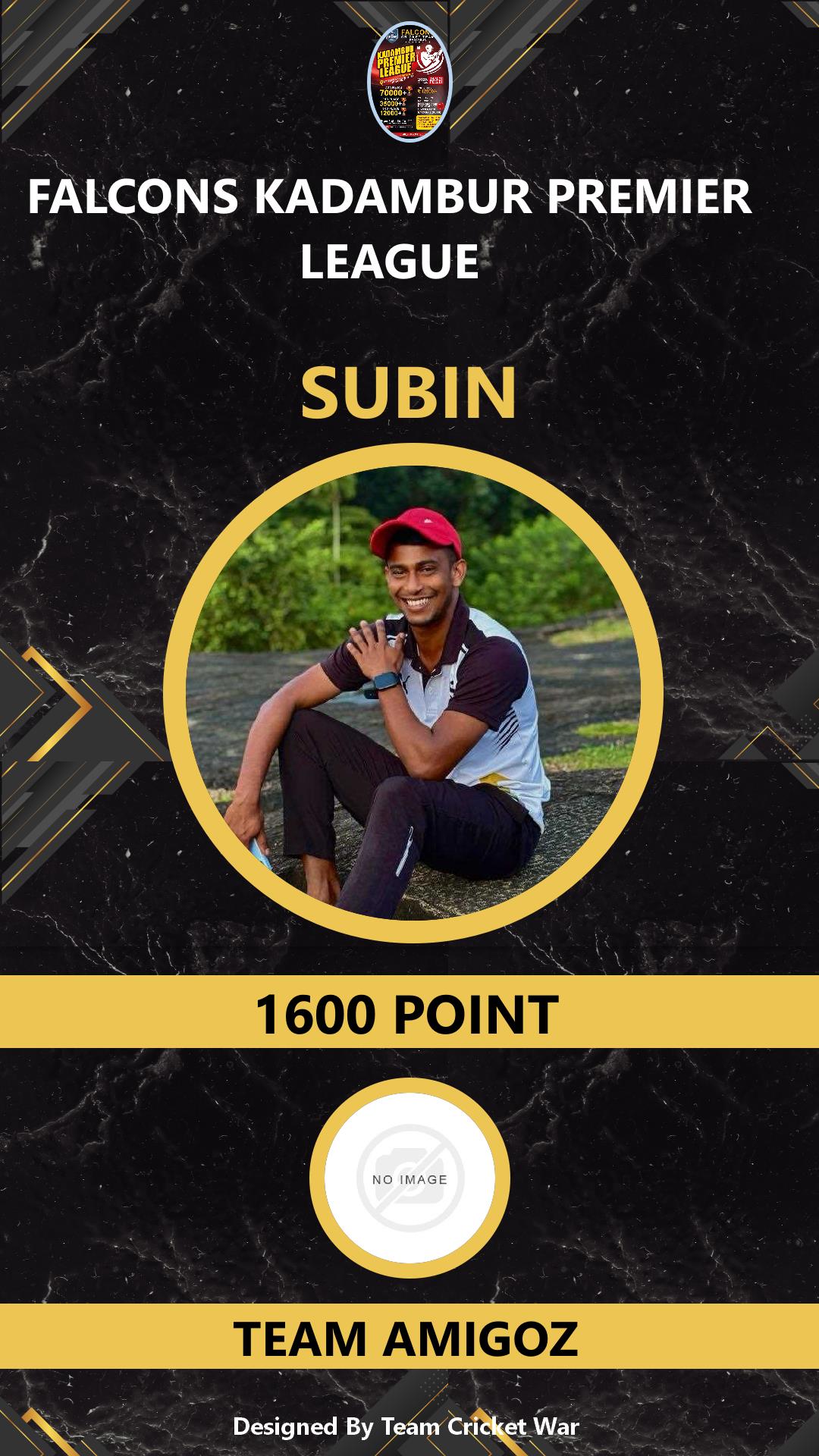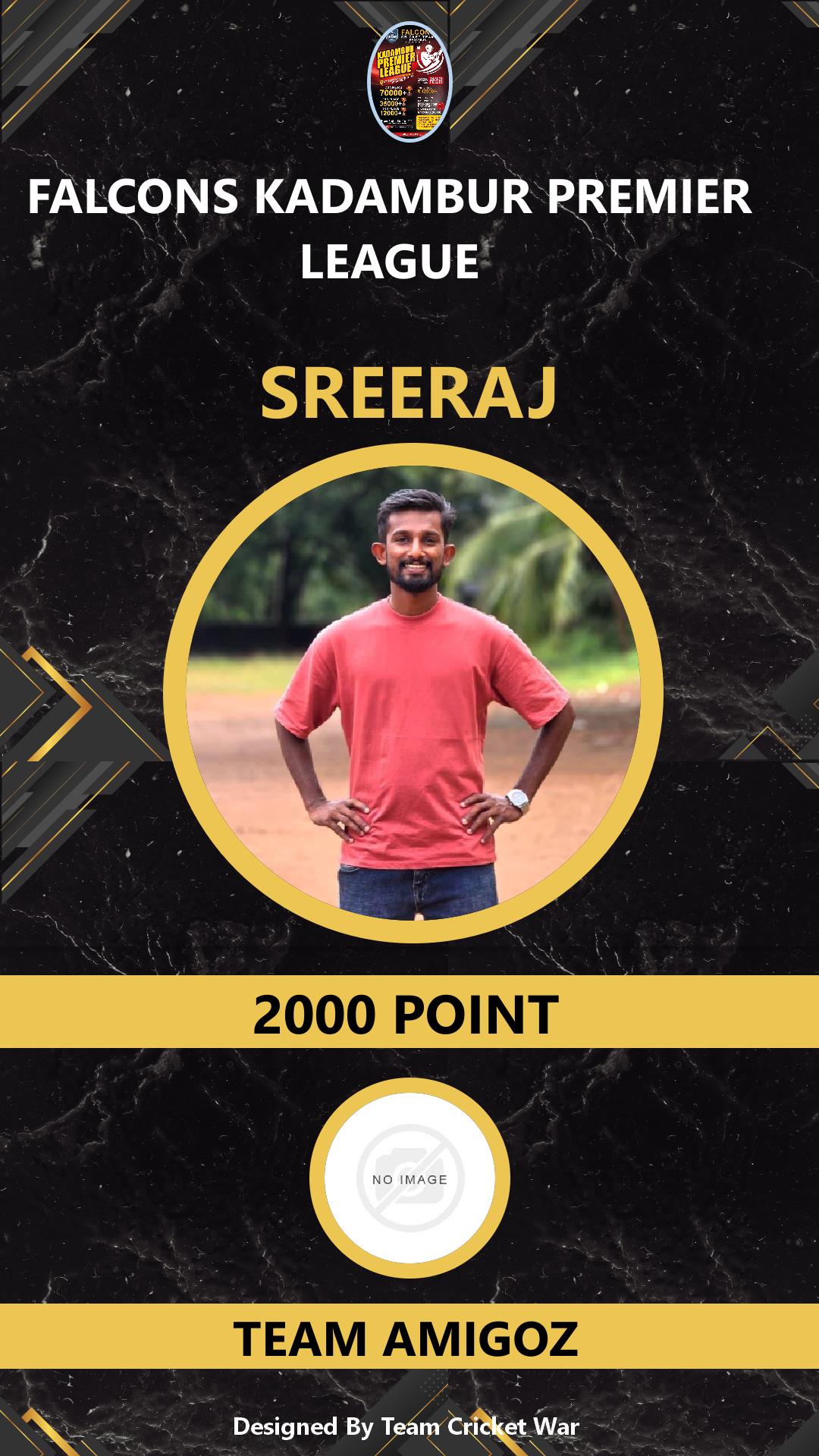 BATTING ALLROUNDER, AGE : 31 KADAMBUR Bid Amount : 1600 Team : TEAM AMIGOZ Download ID Card VIEW PROFILE |