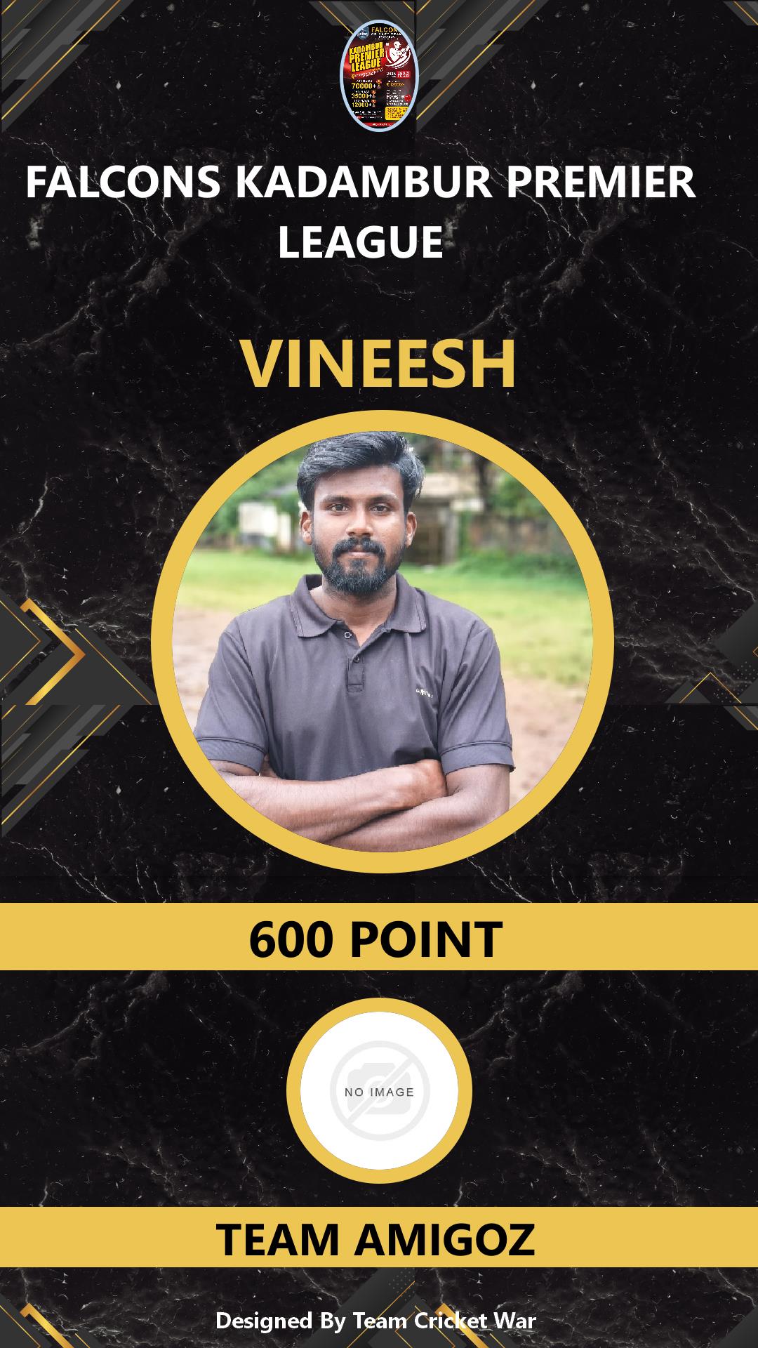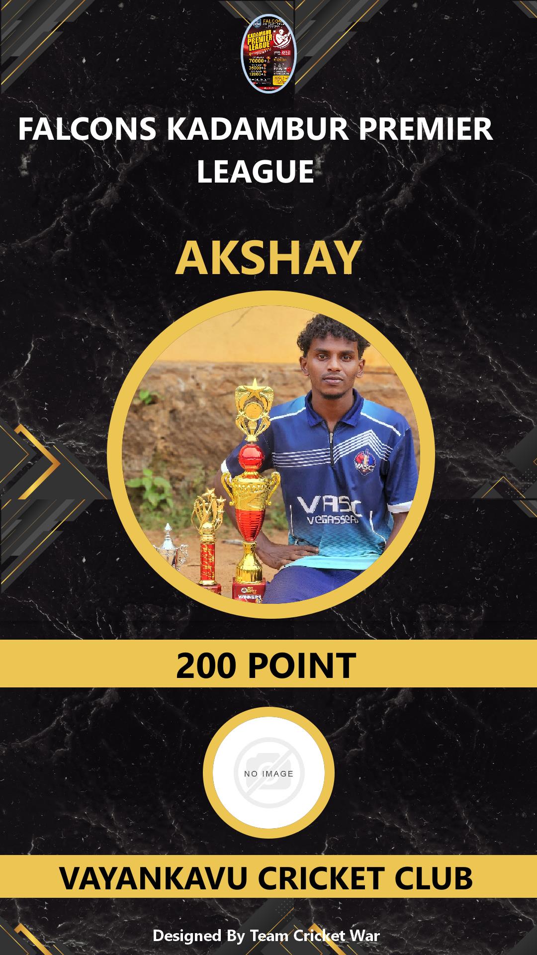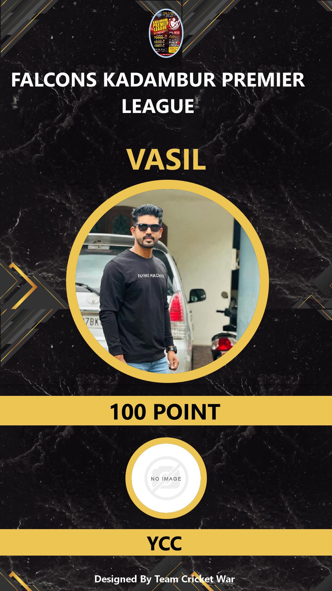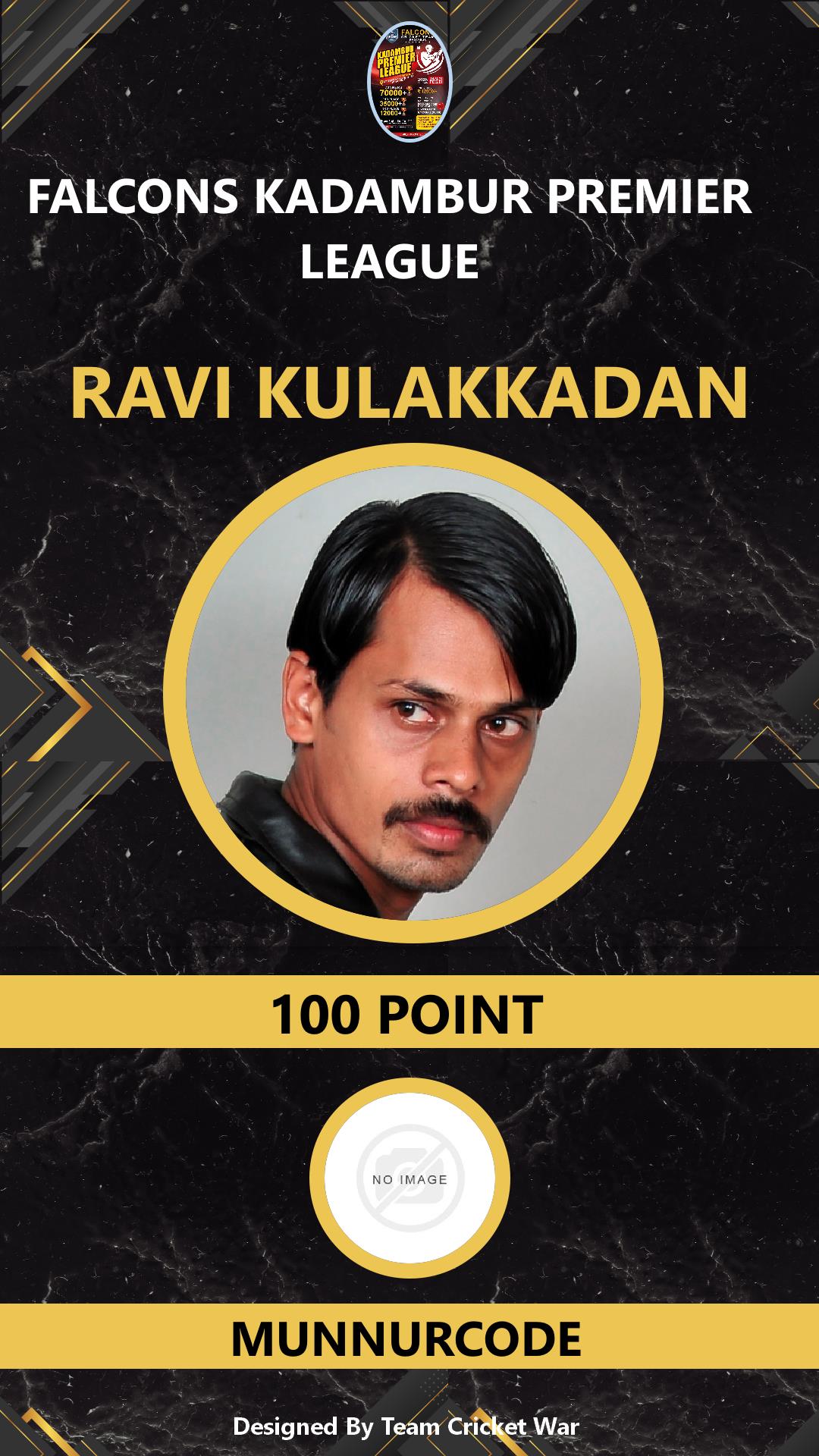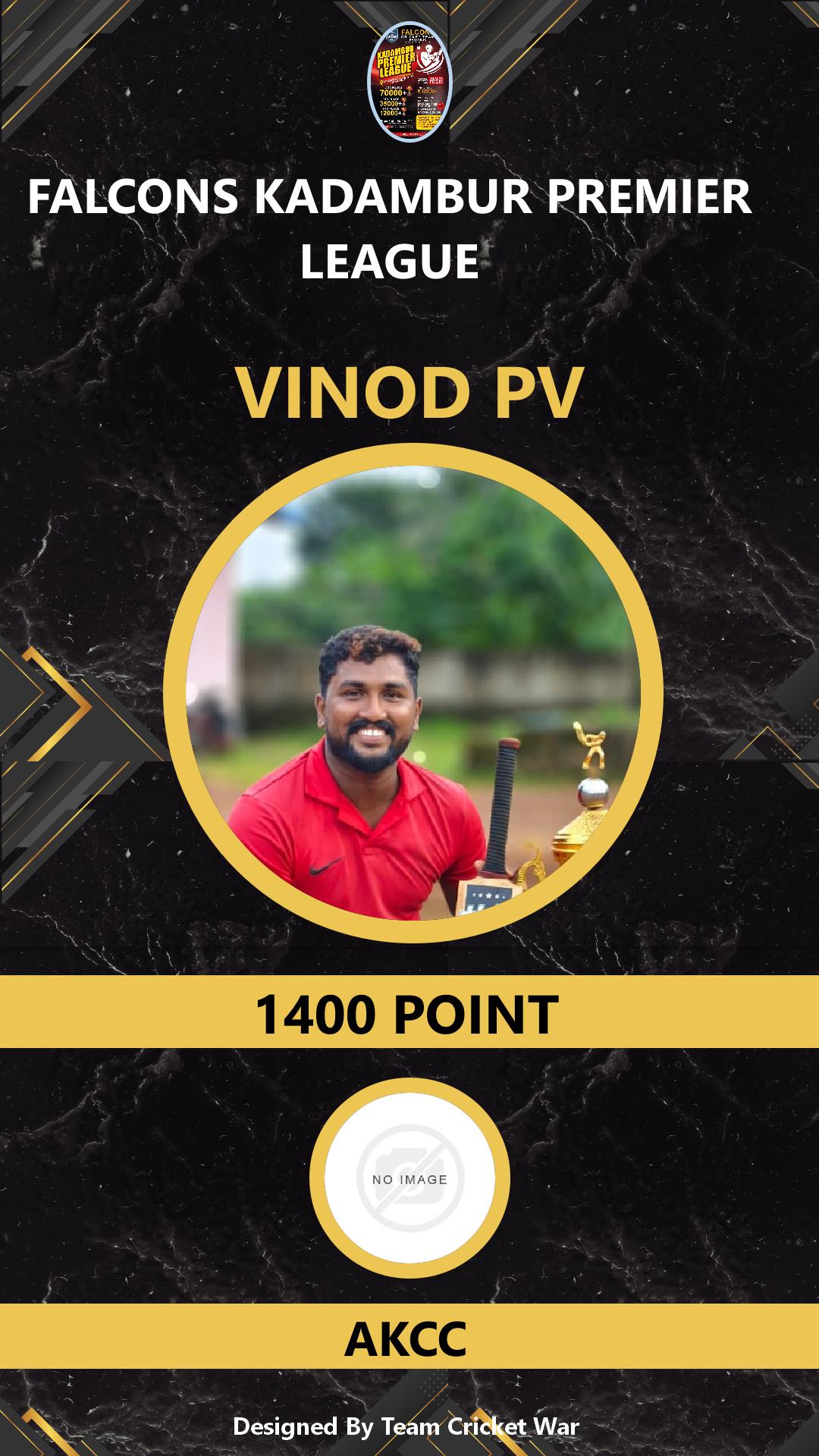 ALLROUNDER, AGE : 35 VENGESSERI Bid Amount : 1000 Team : VAYANKAVU CRICKET CLUB Download ID Card VIEW PROFILE |