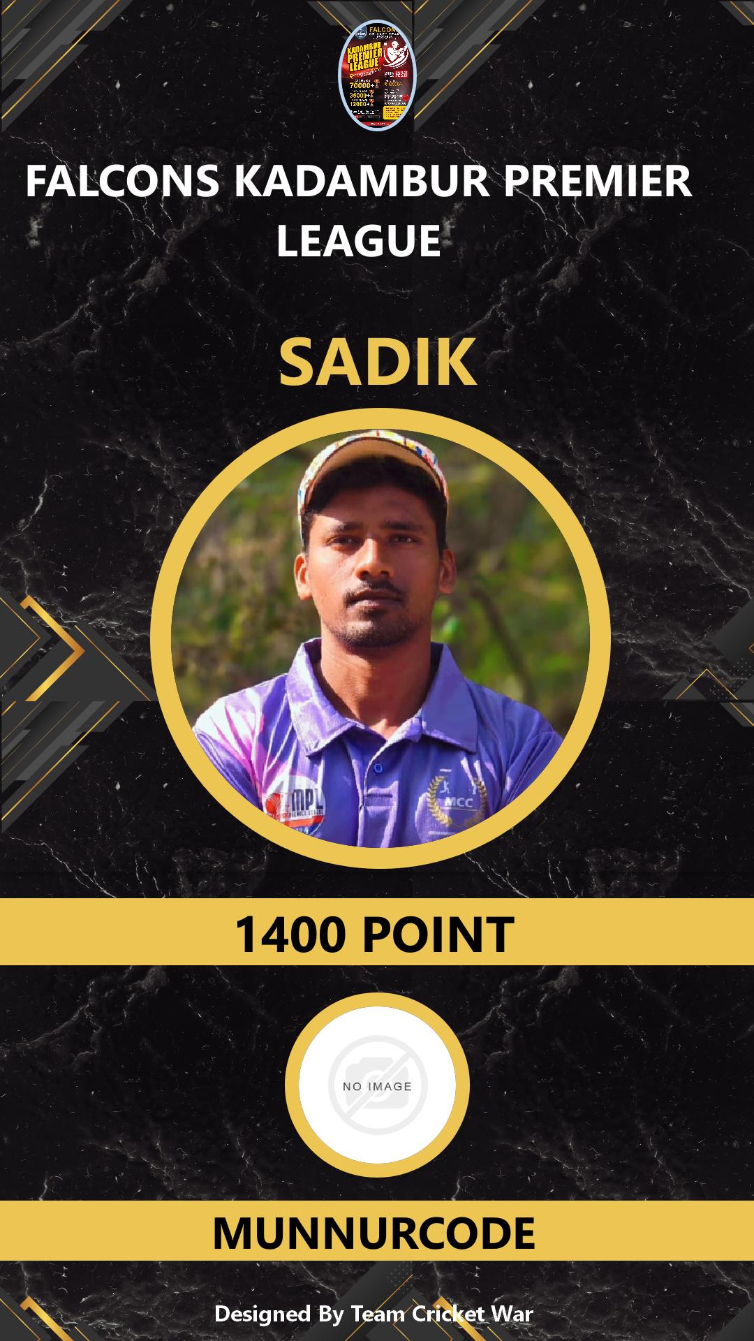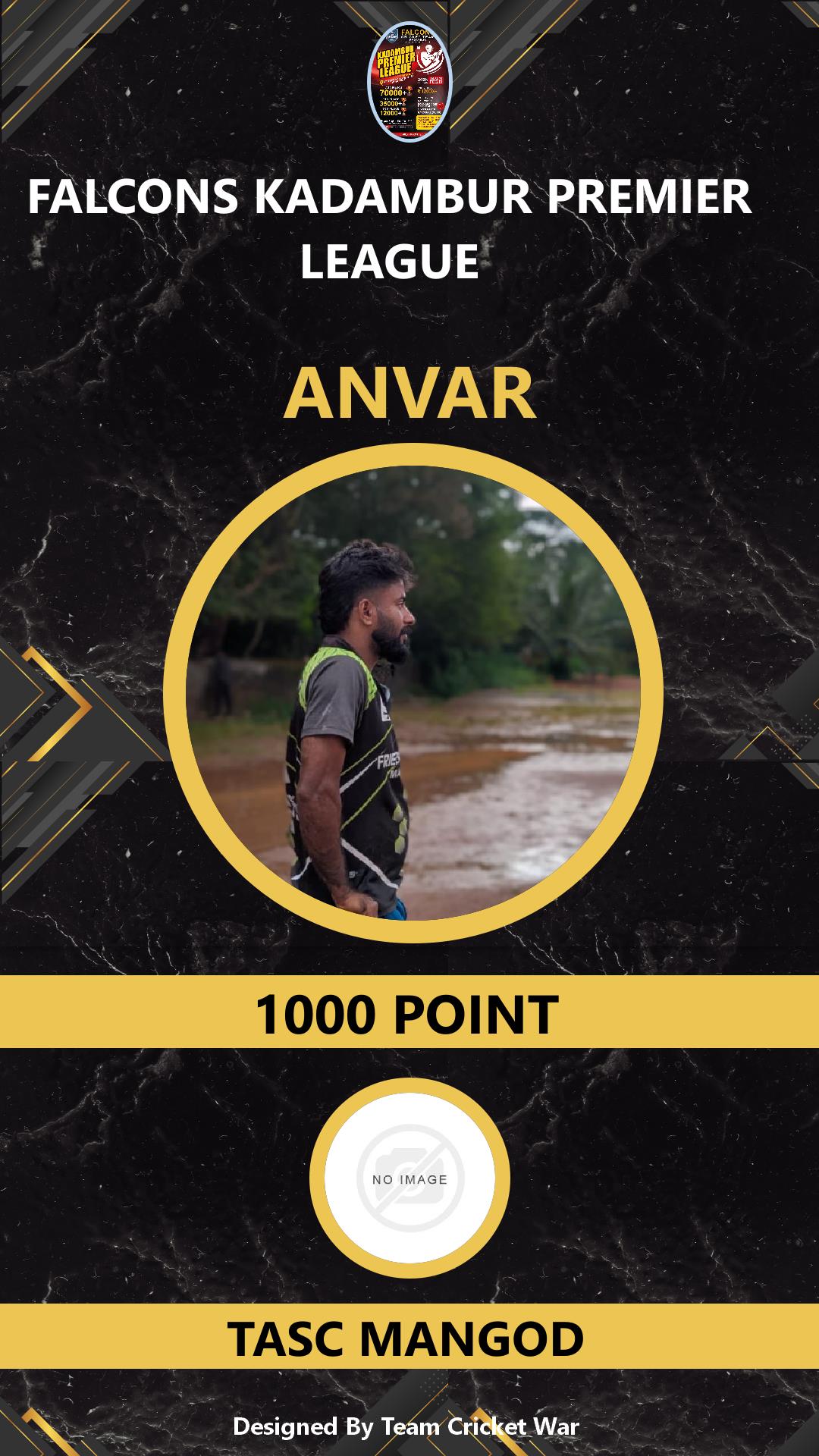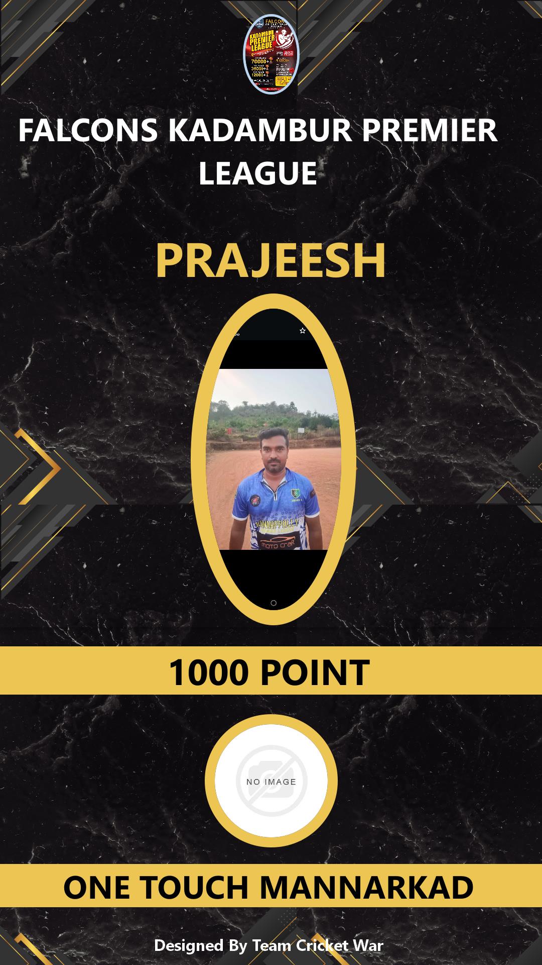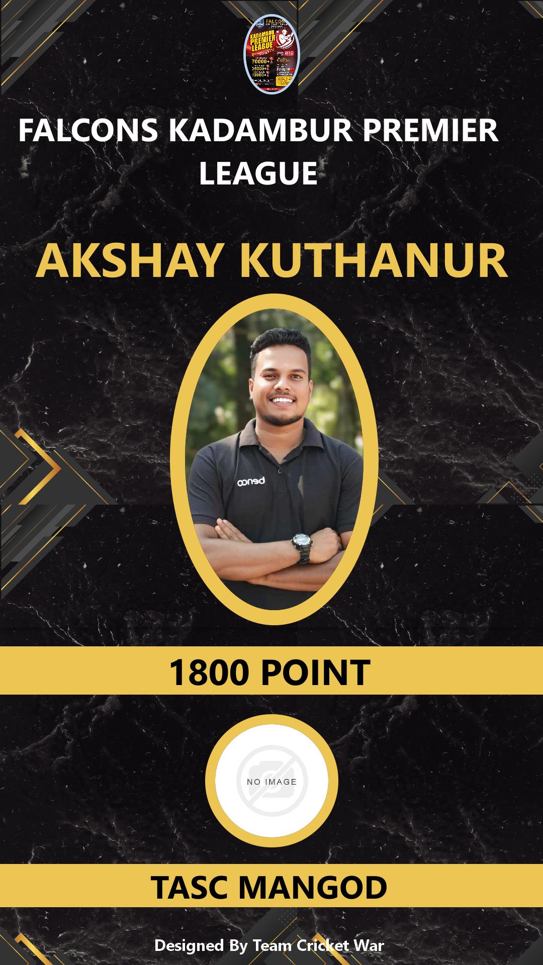 ALLROUNDER, AGE : 35 VENGESSERI Bid Amount : 1000 Team : VAYANKAVU CRICKET CLUB Download ID Card VIEW PROFILE |