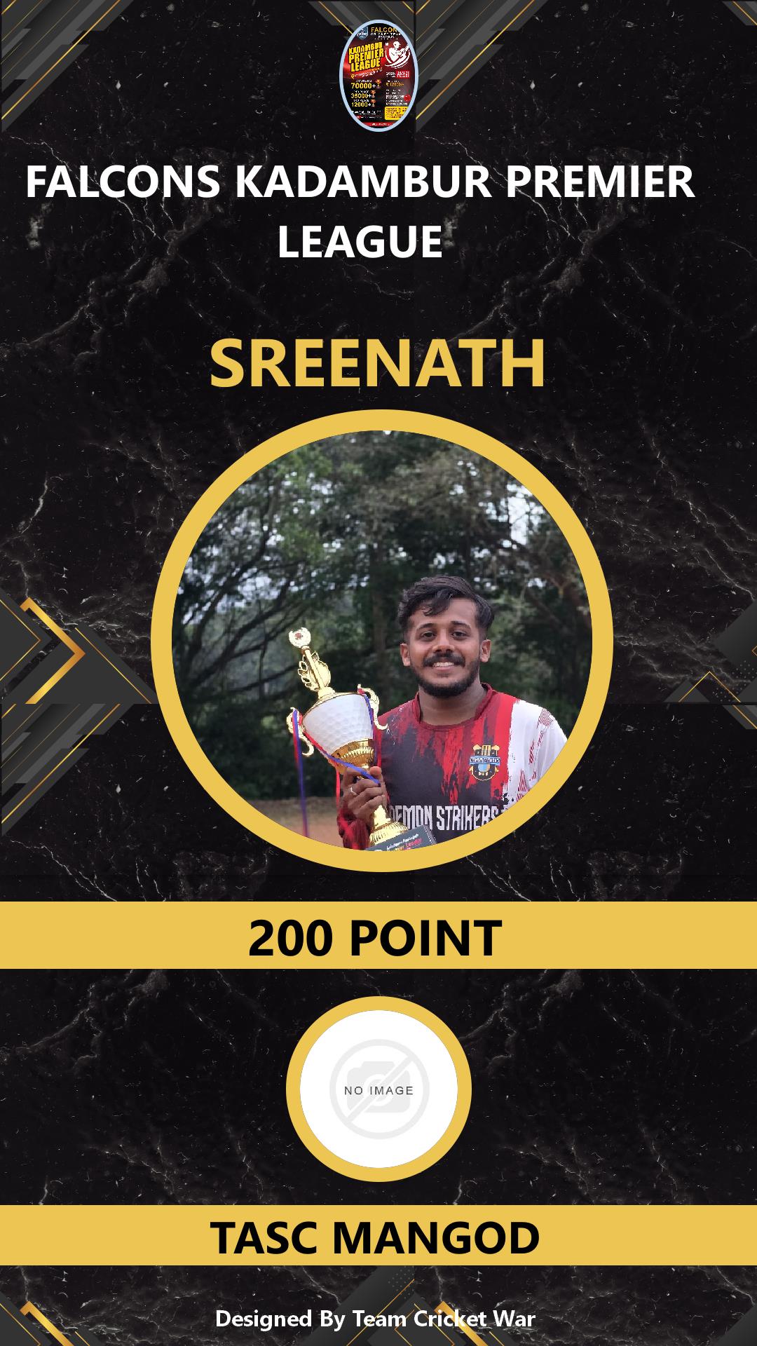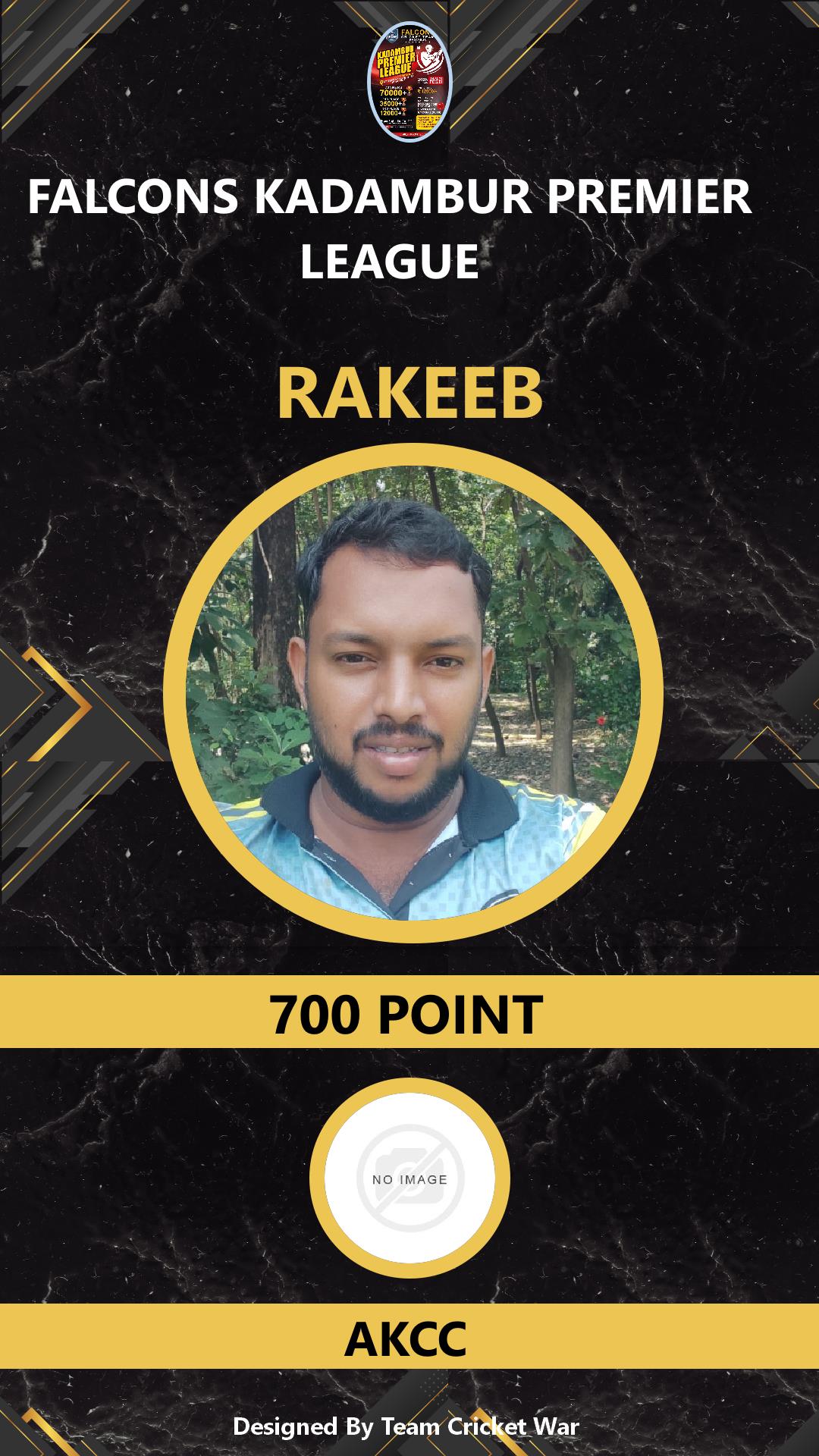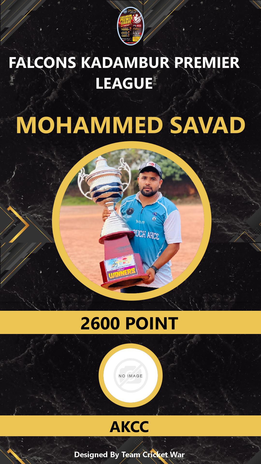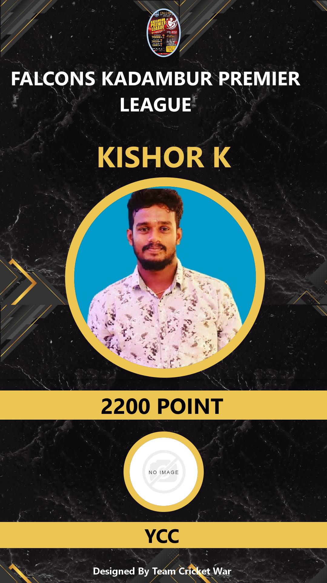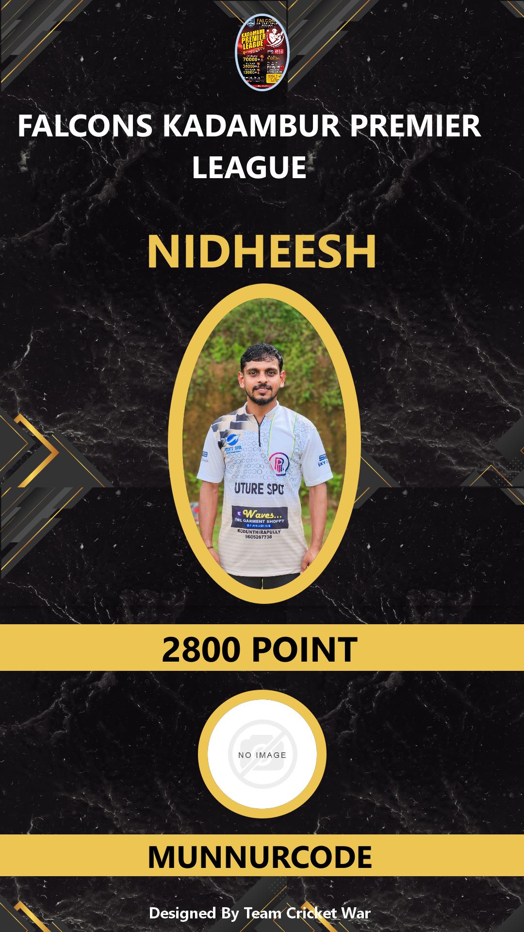 ALLROUNDER, AGE : 35 VENGESSERI Bid Amount : 1000 Team : VAYANKAVU CRICKET CLUB Download ID Card VIEW PROFILE |