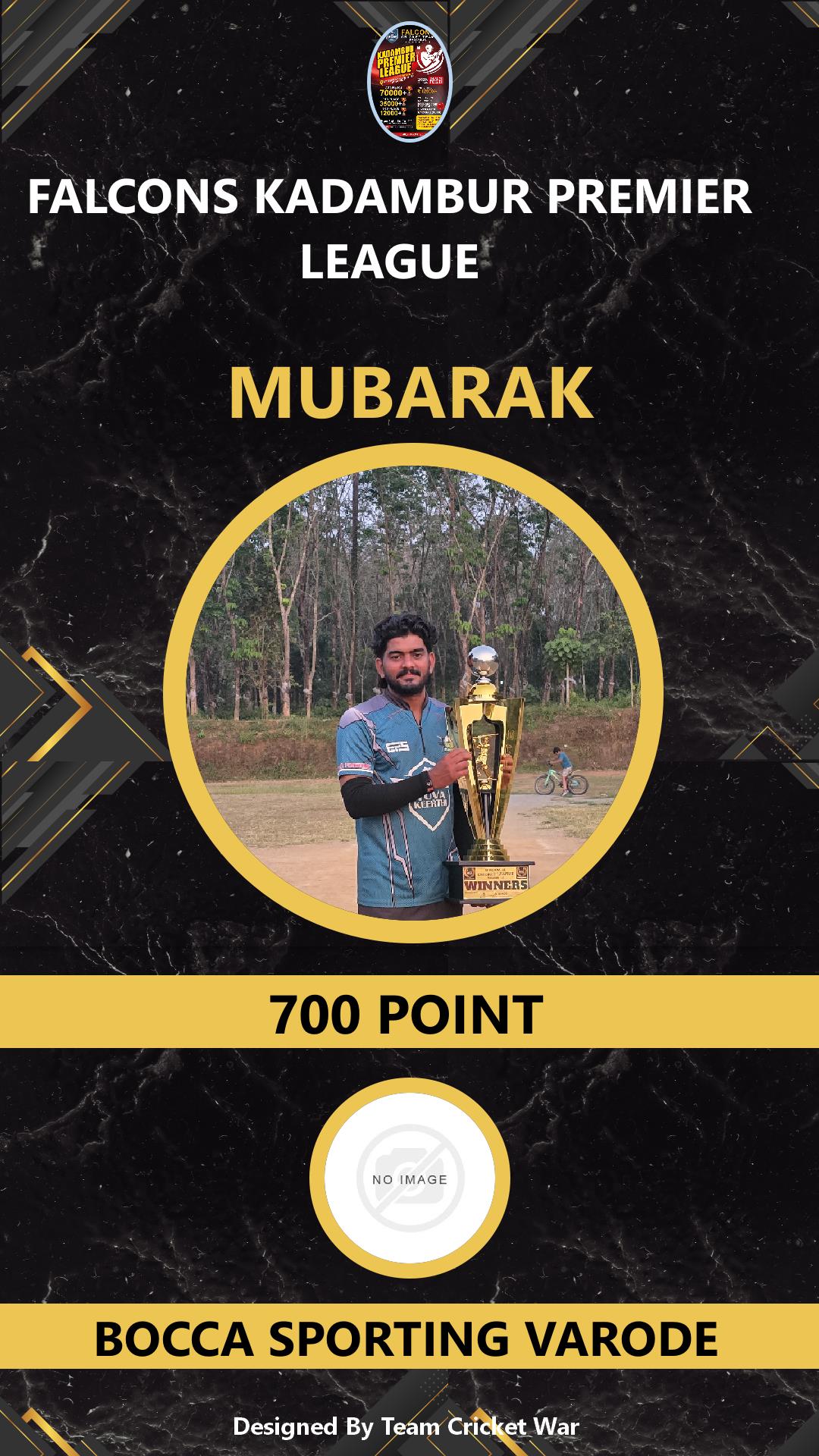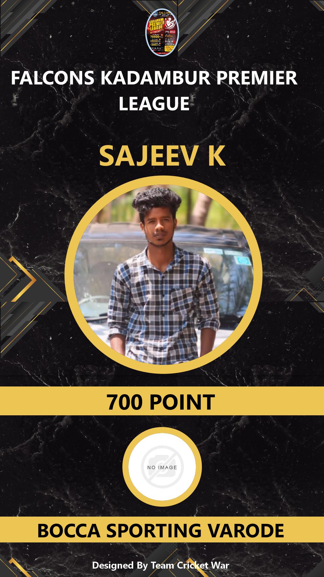 BOWLING ALLROUNDER, AGE : 27 CHITTUR Bid Amount : 700 Team : BOCCA SPORTING VARODE Download ID Card VIEW PROFILE |