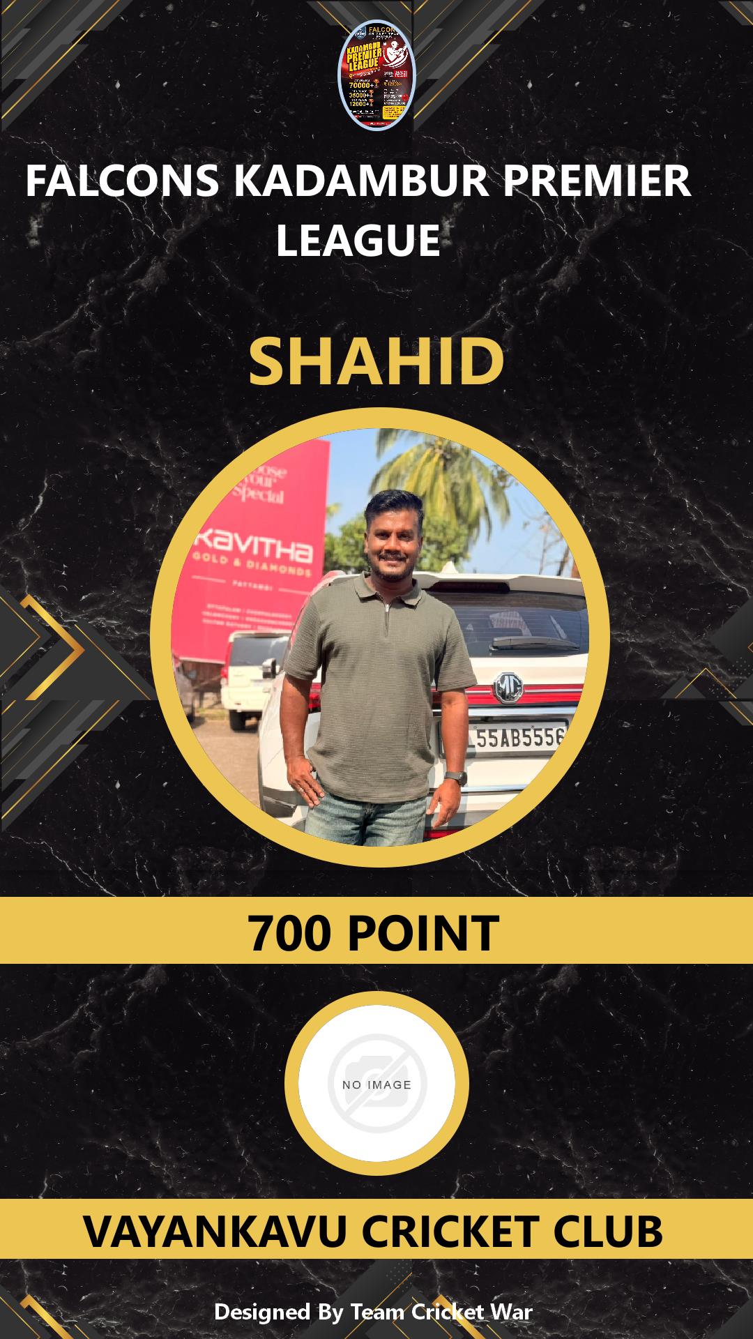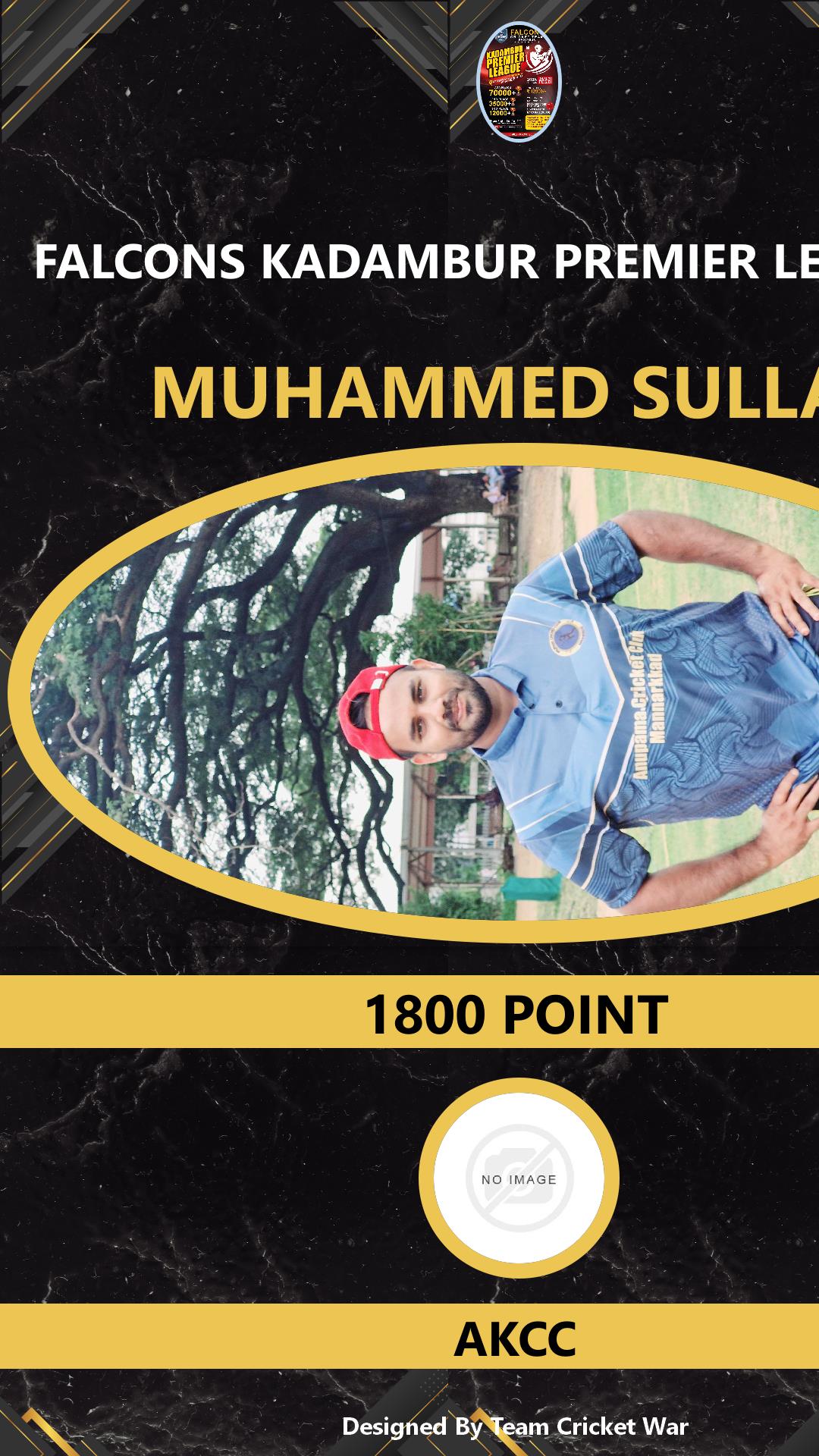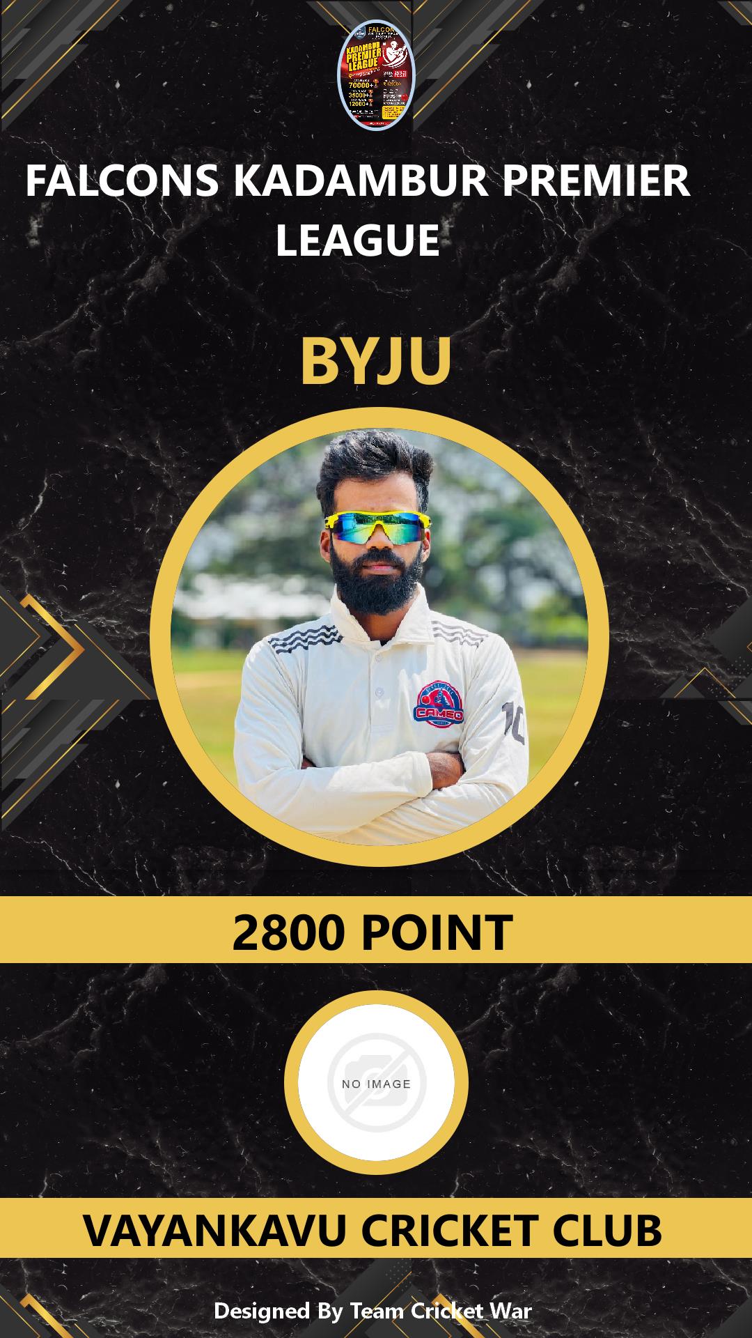 ALLROUNDER, AGE : 34 MEZHATHUR Bid Amount : 700 Team : VAYANKAVU CRICKET CLUB Download ID Card VIEW PROFILE |
