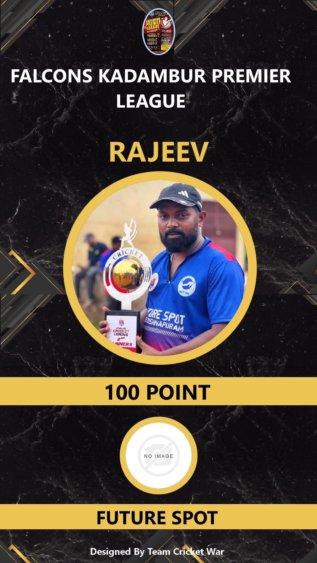 ALLROUNDER, AGE : 39 SREEKRISHNAPURAM Bid Amount : 100 Team : FUTURE SPOT Download ID Card VIEW PROFILE |