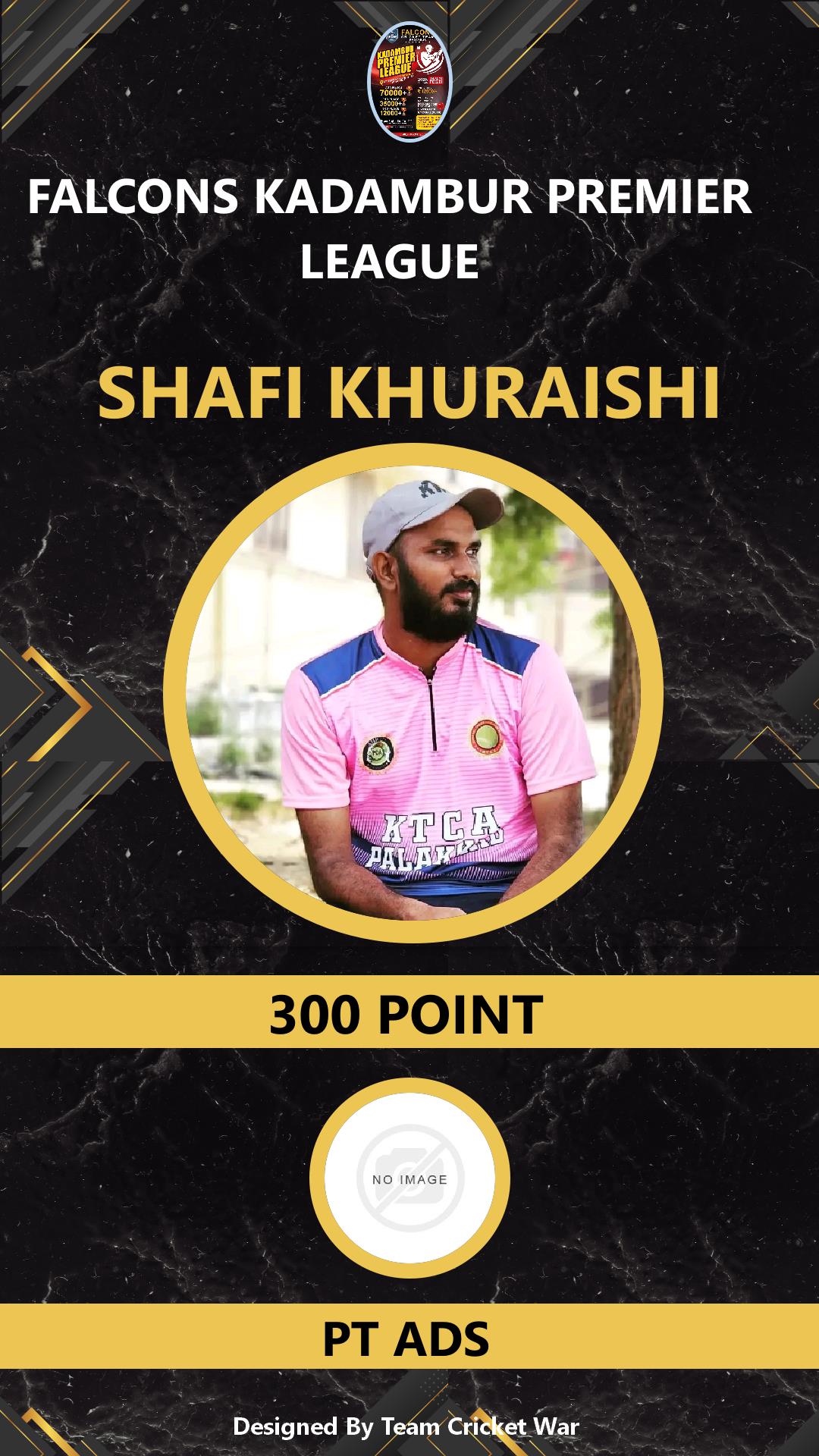 ALLROUNDER, AGE : 39 MANNARKAD Bid Amount : 100 Team : PT ADS Download ID Card VIEW PROFILE |