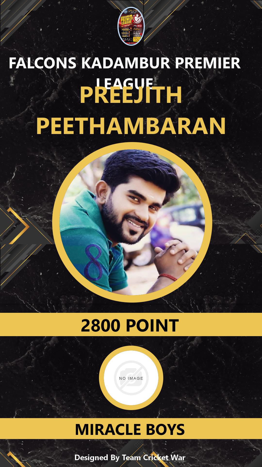 BOWLING ALLROUNDER, AGE : 33 PADUKKAD Bid Amount : 2800 Team : MIRACLE BOYS Download ID Card VIEW PROFILE |
