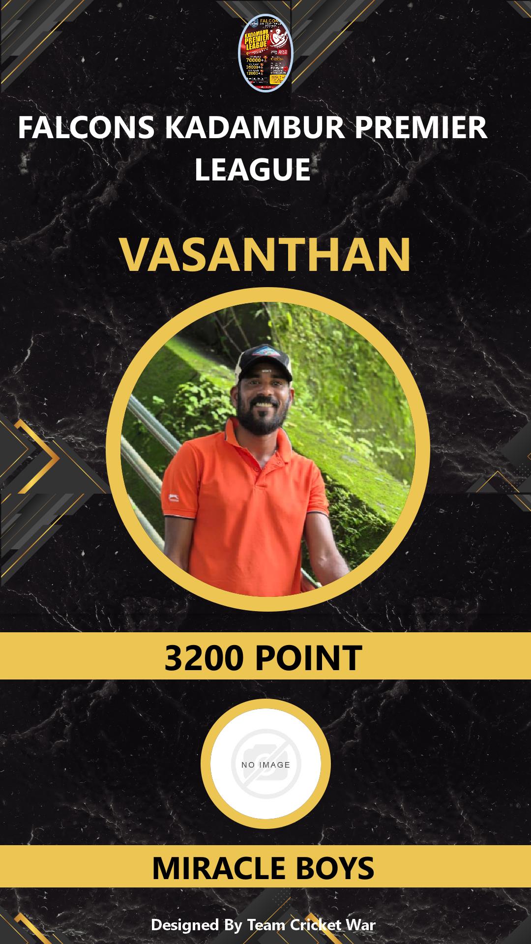 BATSMAN, AGE : 0 SKP Bid Amount : 100 Team : VAYANKAVU CRICKET CLUB Download ID Card VIEW PROFILE |