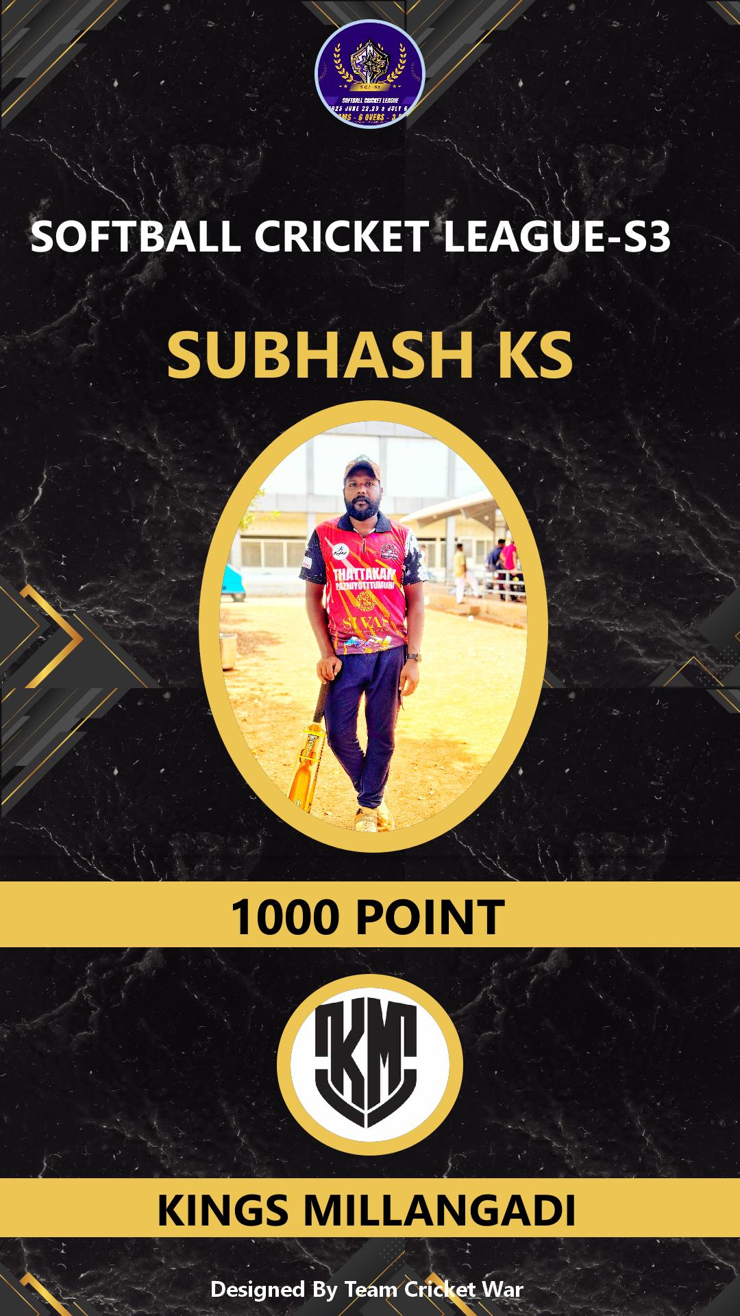 BATTING ALLROUNDER, AGE : 38 KADAVALLUR VIEW PROFILE |
