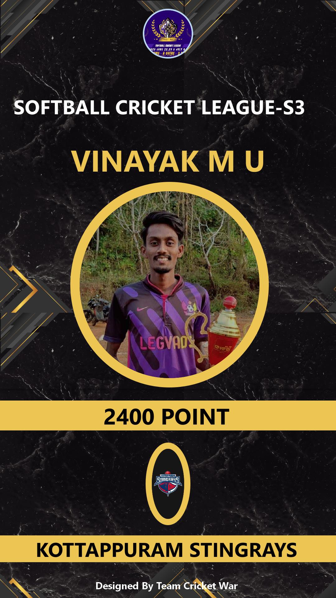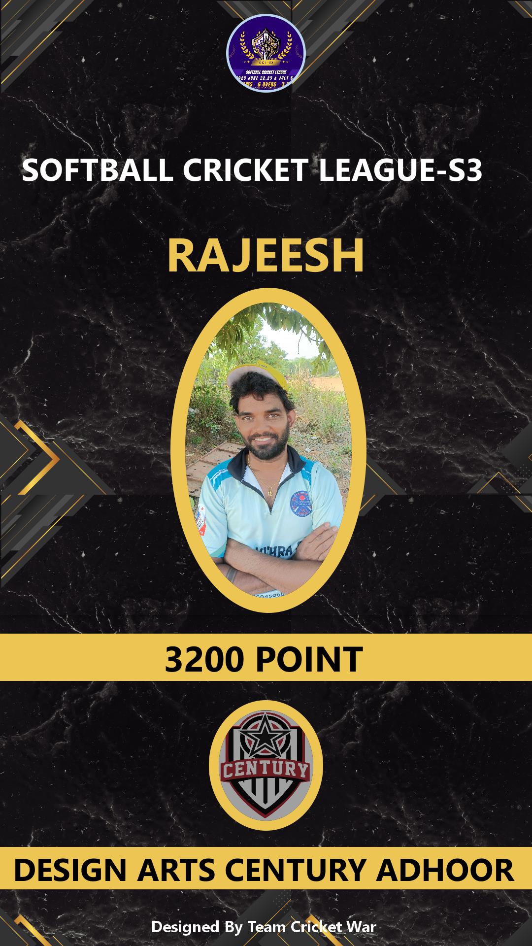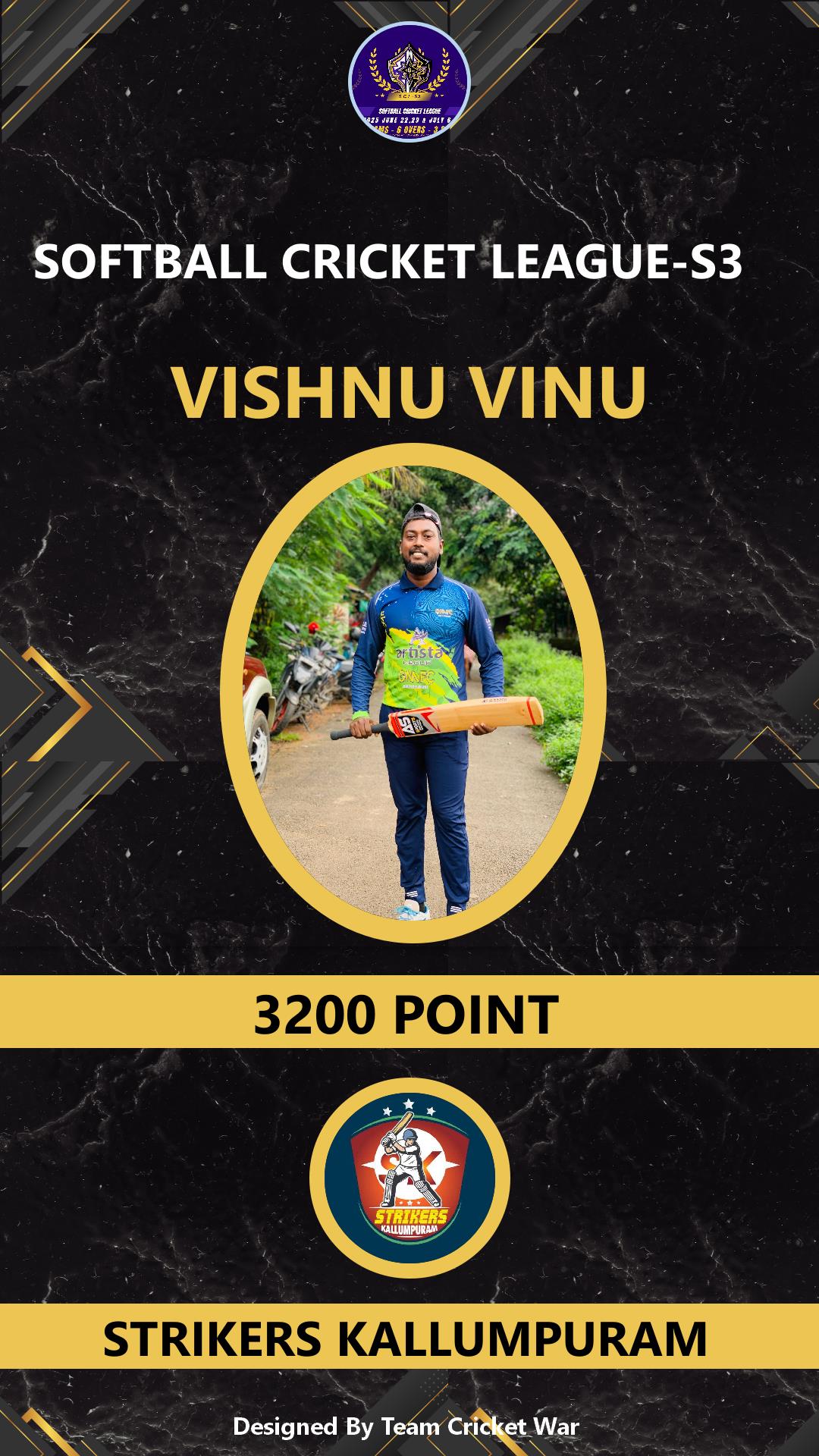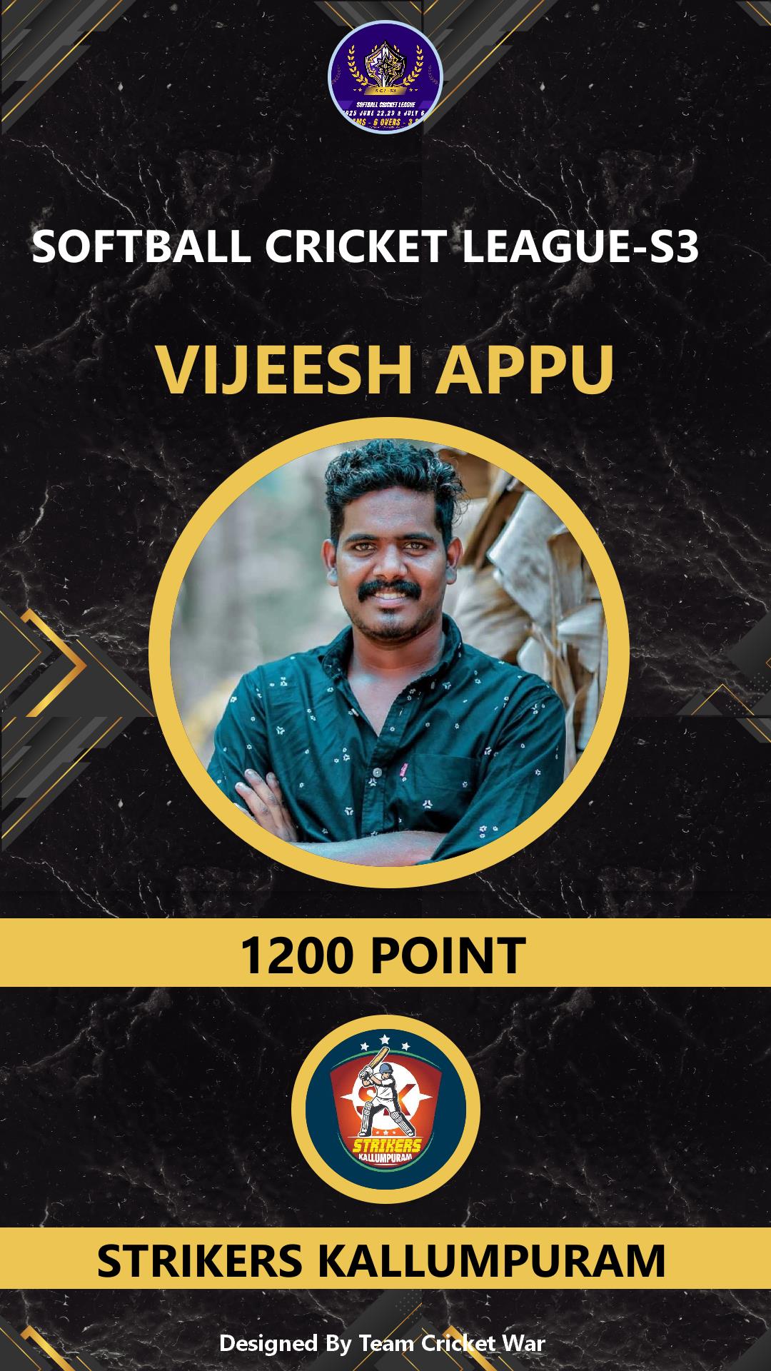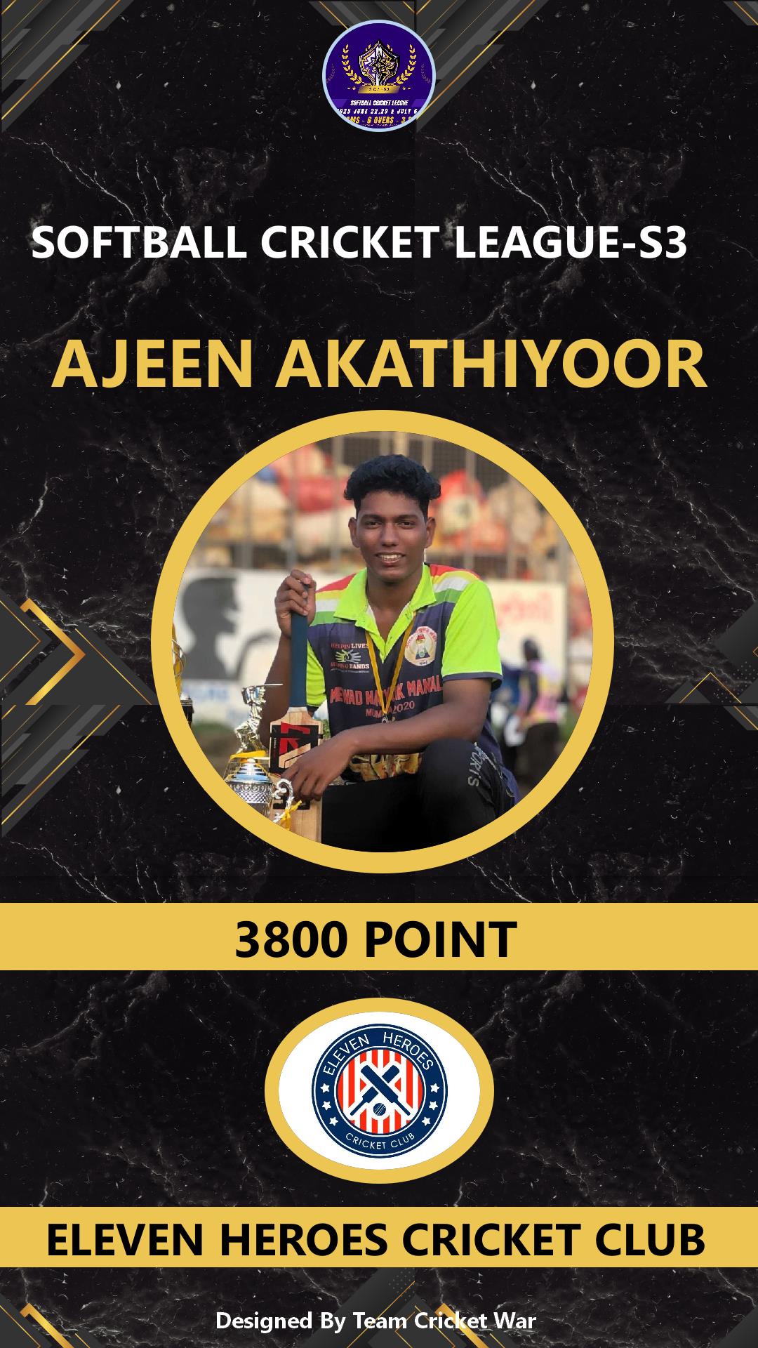 ALLROUNDER, AGE : 19 AKATHIYOOR Bid Amount : 3800 Team : ELEVEN HEROES CRICKET CLUB Download ID Card VIEW PROFILE |