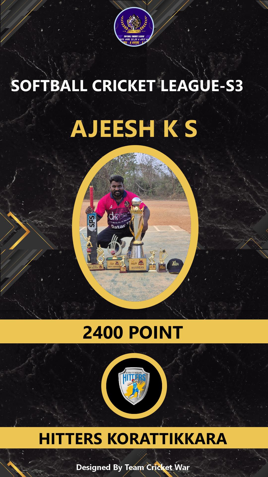 BATSMAN, AGE : 39 KARIKKAD Bid Amount : 2400 Team : HITTERS KORATTIKKARA Download ID Card VIEW PROFILE |