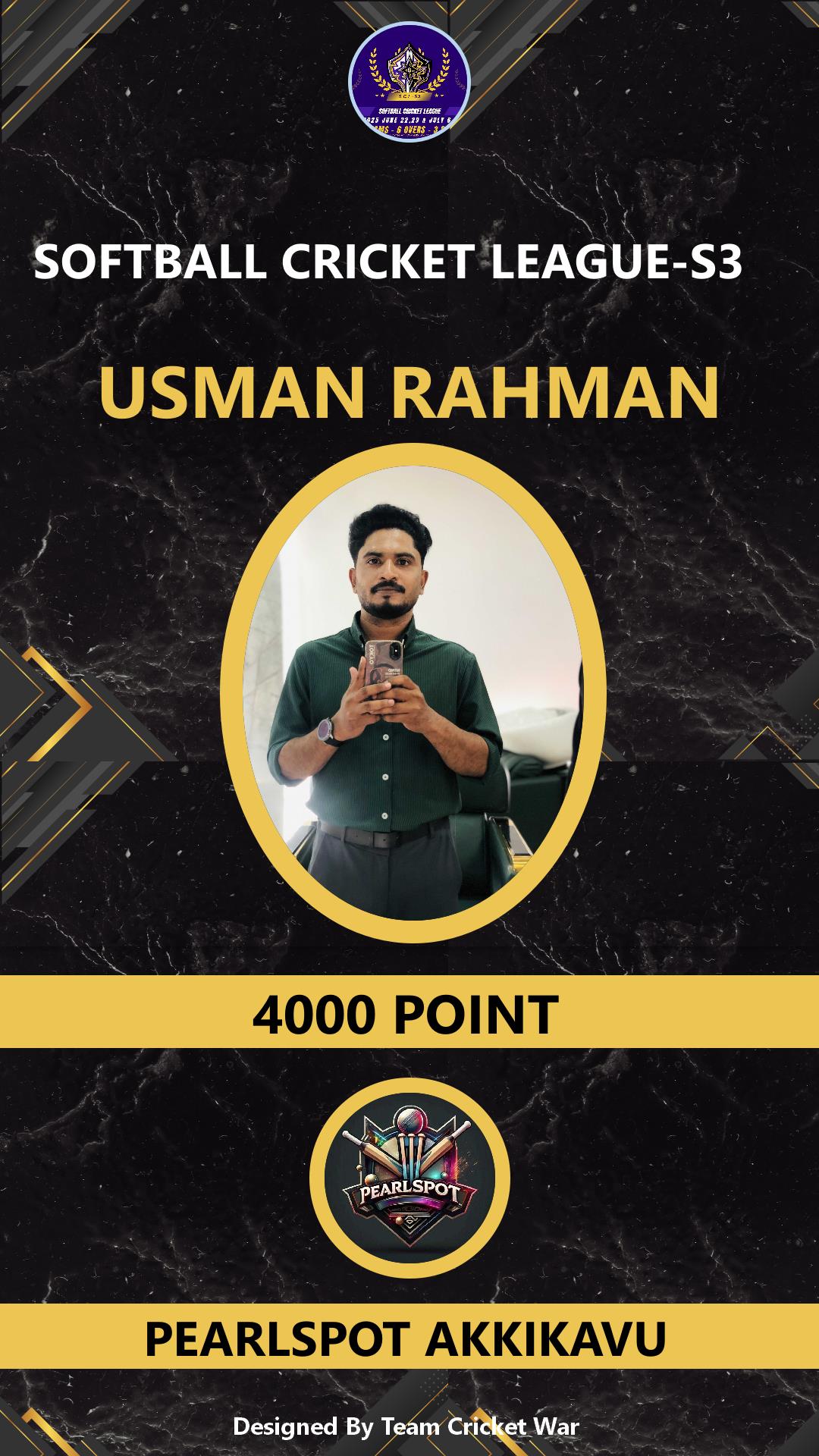 ALLROUNDER, AGE : 36 KOTTOL Bid Amount : 3200 Team : CRICKET FRIENDS PAZHANJI Download ID Card VIEW PROFILE |