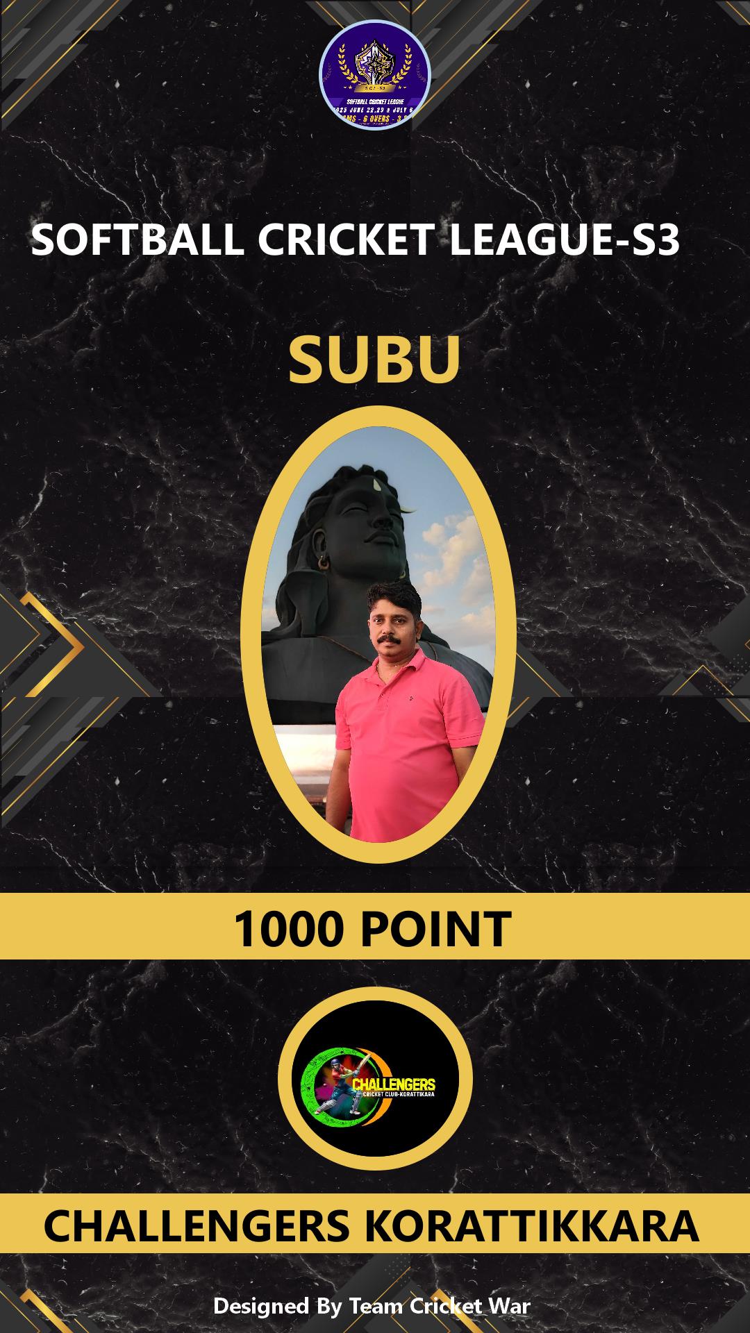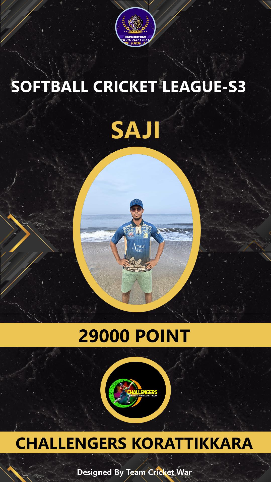 BOWLING ALLROUNDER, AGE : 36 CHOWANNUR Bid Amount : 1000 Team : CHALLENGERS KORATTIKKARA Download ID Card VIEW PROFILE |