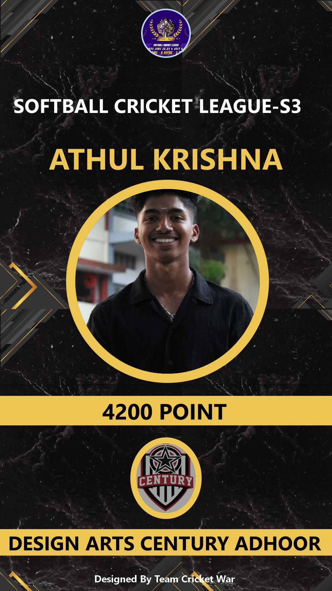BATTING ALLROUNDER, AGE : 25 AKKIKKAVU VIEW PROFILE |