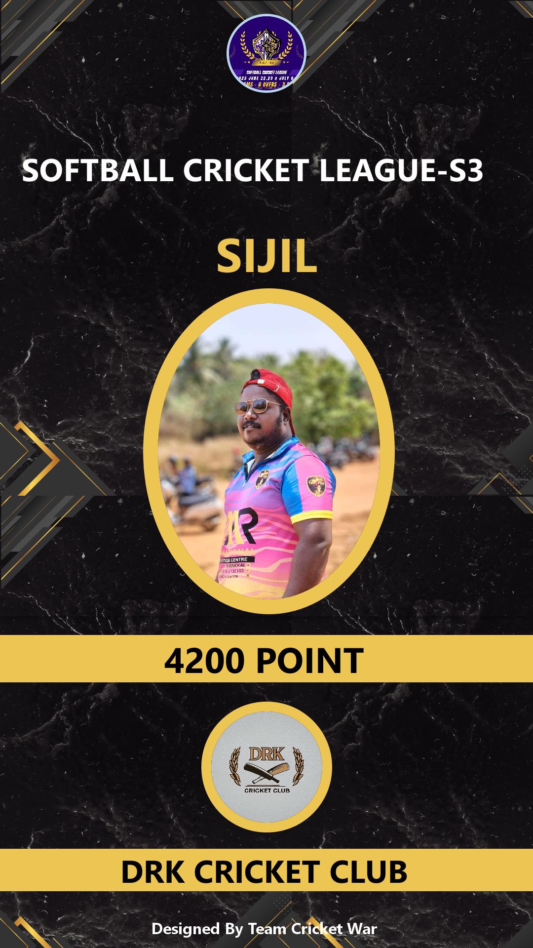 ALLROUNDER, AGE : 1 VELLARAKKAD Bid Amount : 4200 Team : CRICKET FRIENDS PAZHANJI Download ID Card VIEW PROFILE |