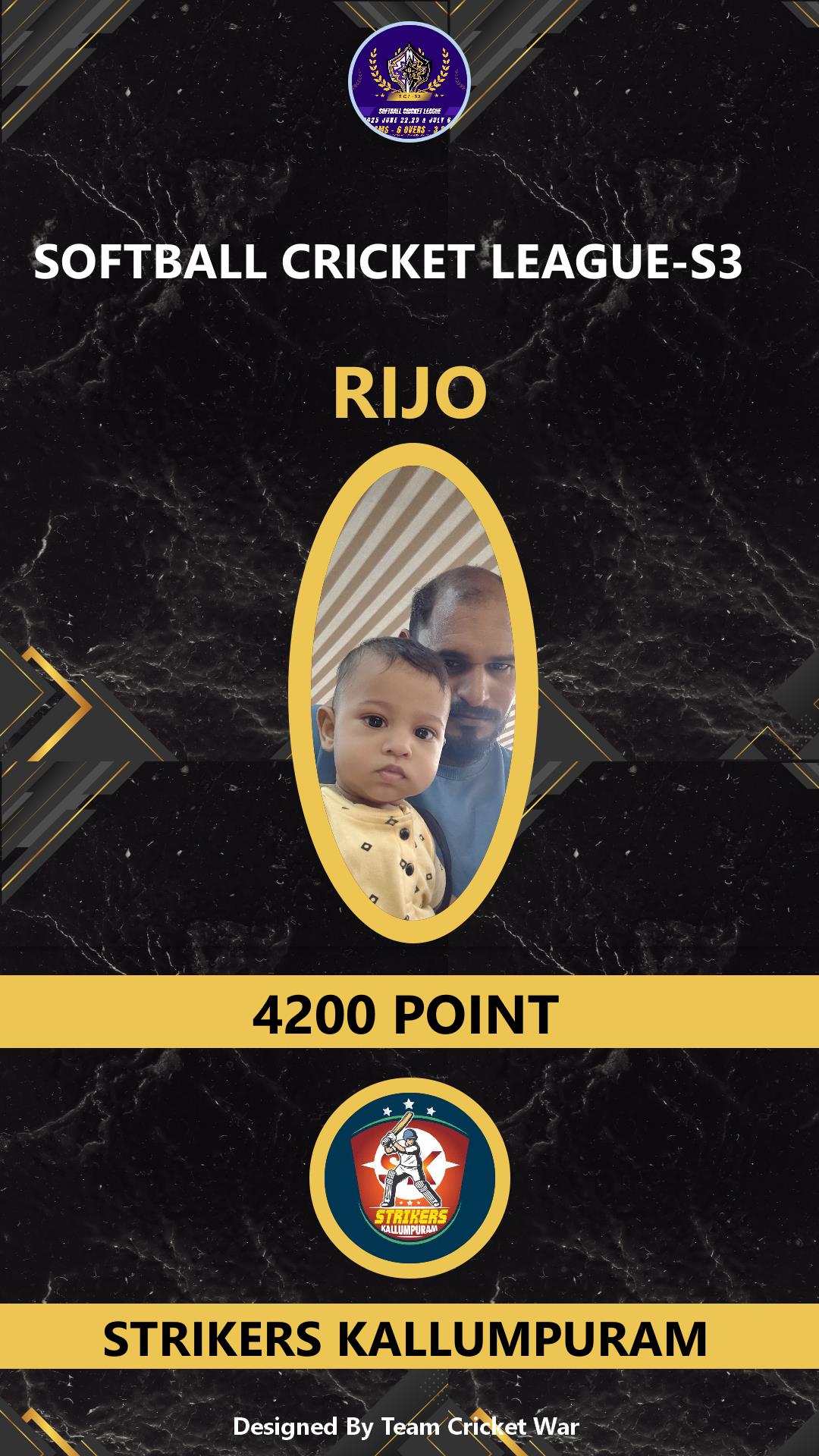 ALLROUNDER, AGE : 1 KUNNAMKULAM Bid Amount : 6500 Team : PEARLSPOT AKKIKAVU Download ID Card VIEW PROFILE |