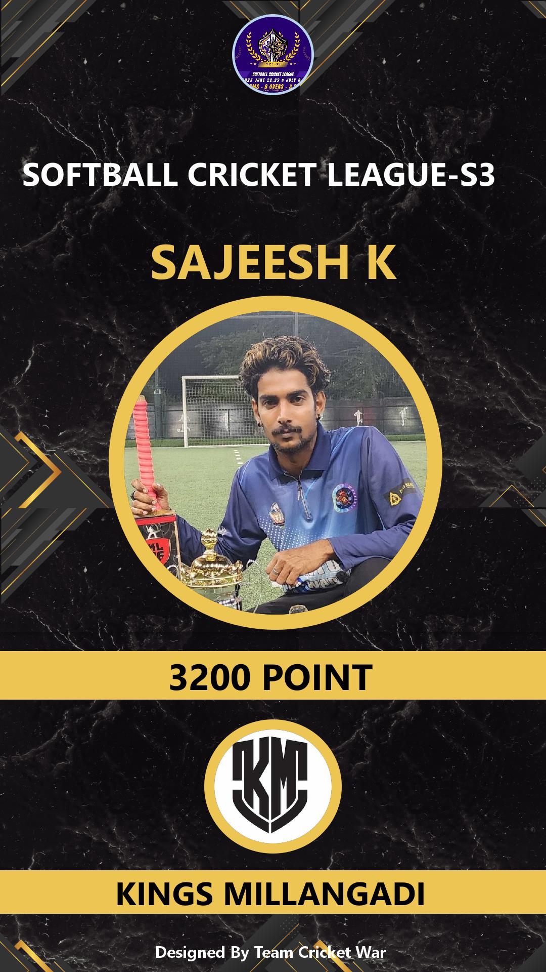 BATSMAN, AGE : 33 PORAVOOR Bid Amount : 3200 Team : STRIKERS KALLUMPURAM Download ID Card VIEW PROFILE |