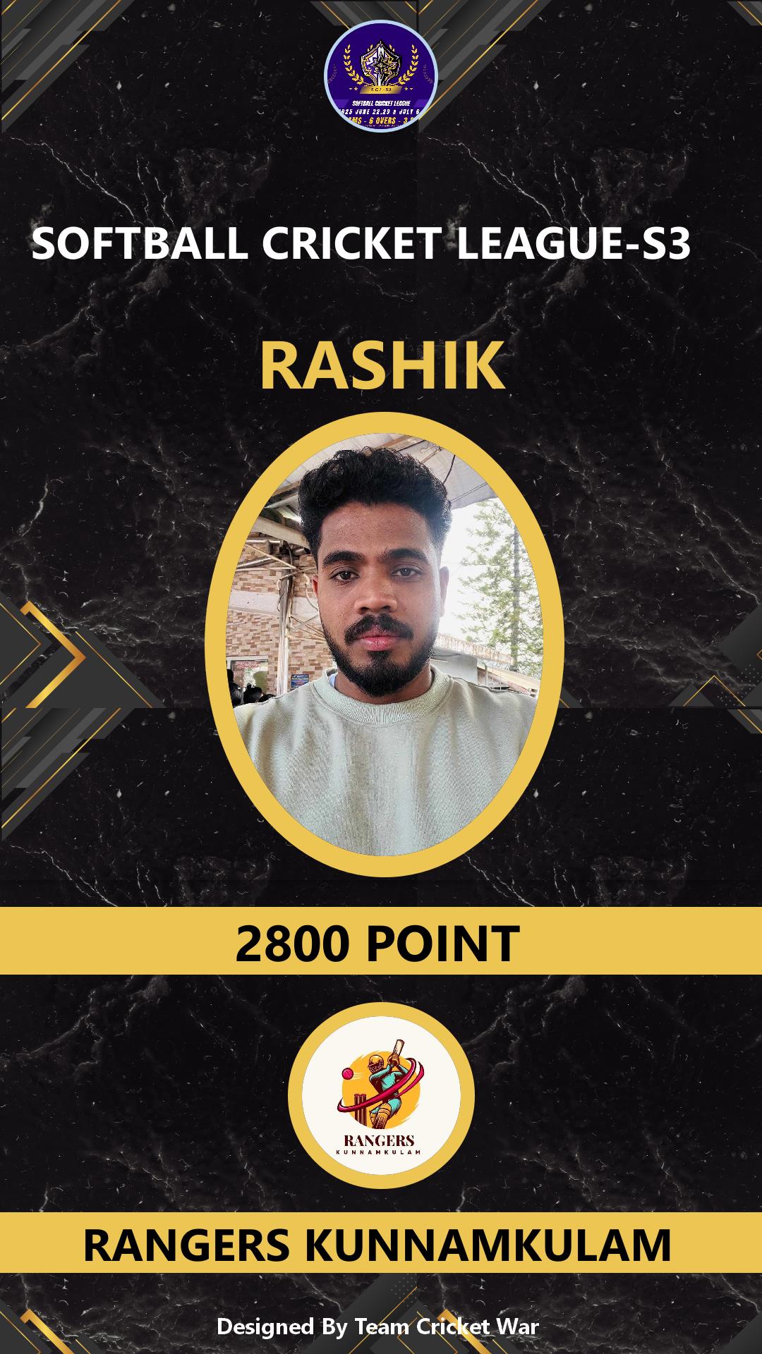 ALLROUNDER, AGE : 27 KUNNAMKULAM Bid Amount : 2200 Team : CRICKET FRIENDS PAZHANJI Download ID Card VIEW PROFILE |