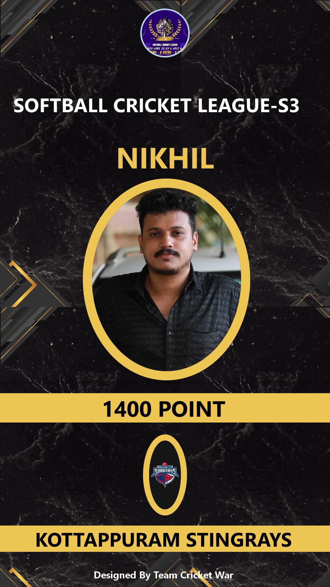 ALLROUNDER, AGE : 1 VELLARAKKAD Bid Amount : 1400 Team : SPIGEN STRIKERS Download ID Card VIEW PROFILE |