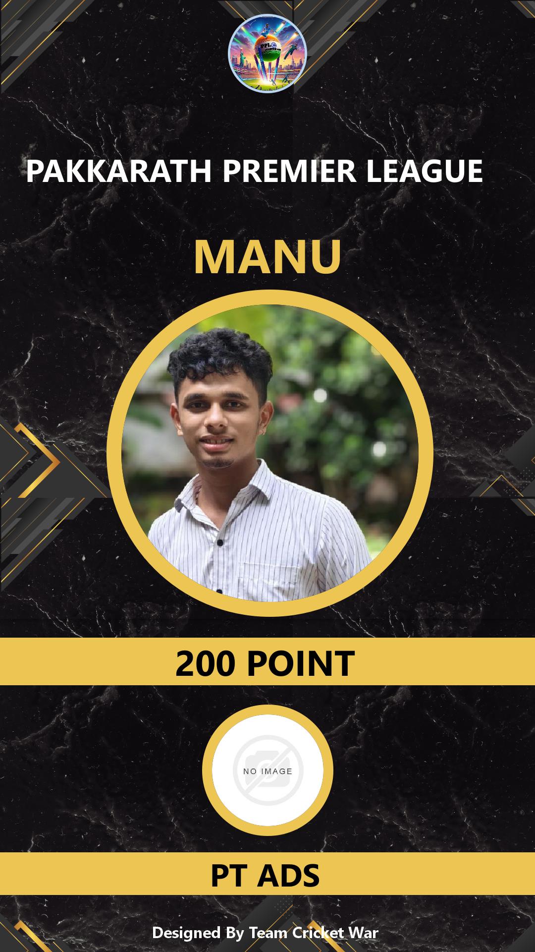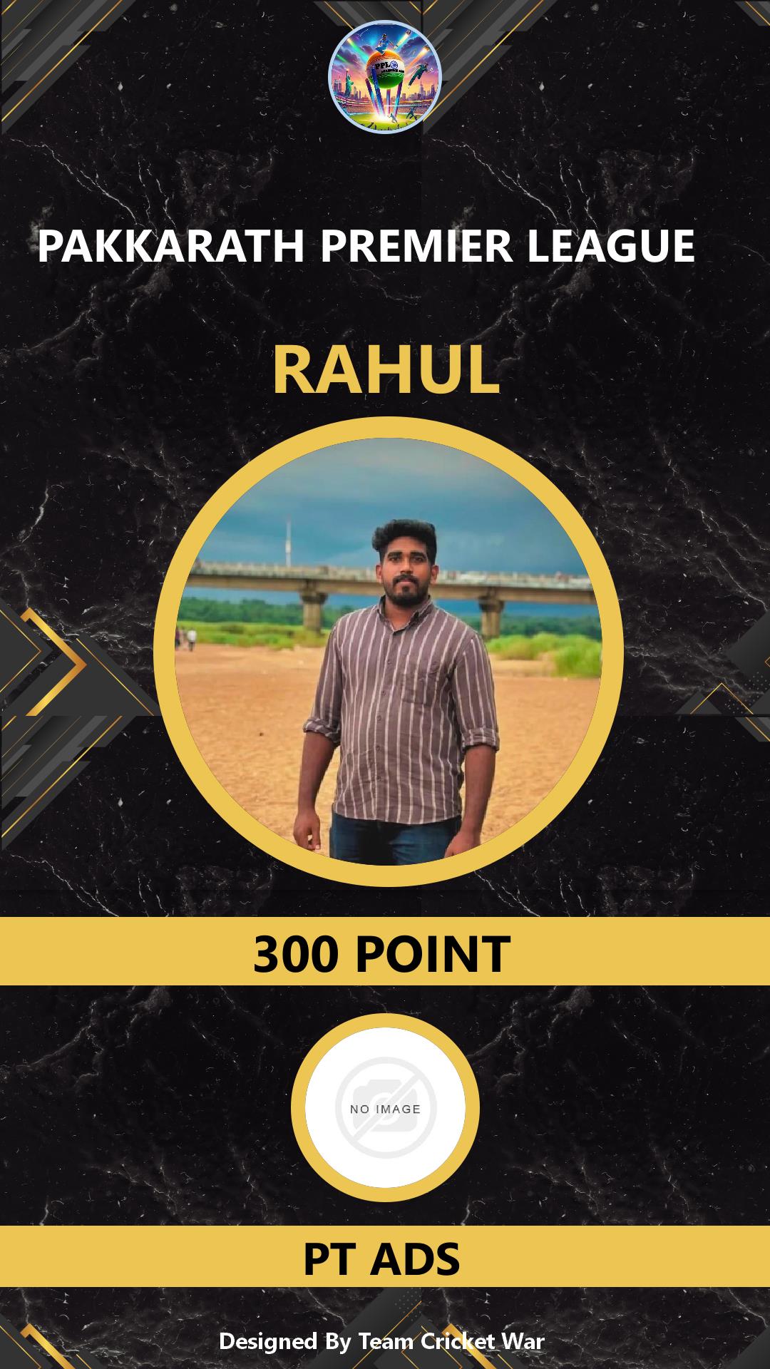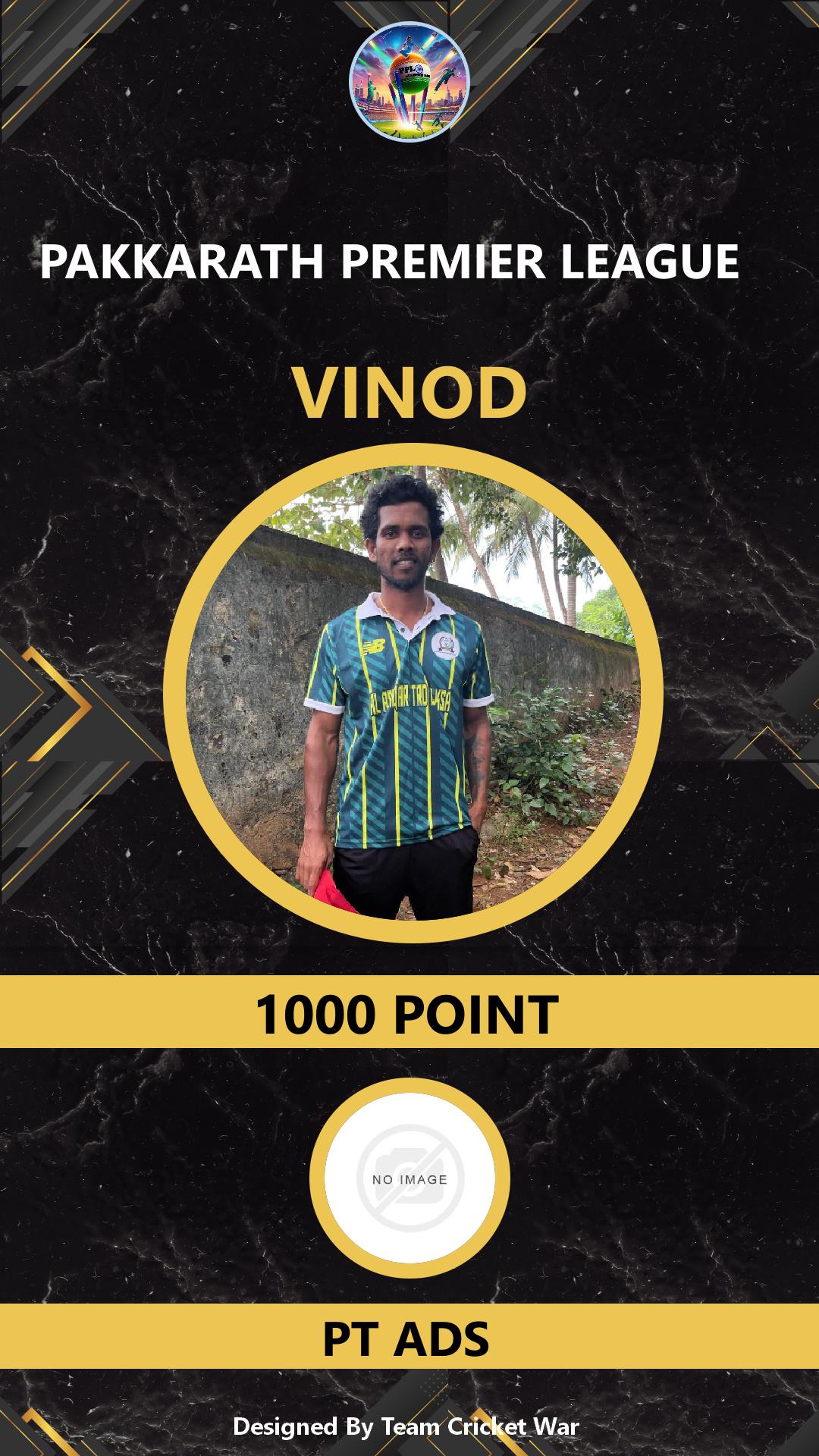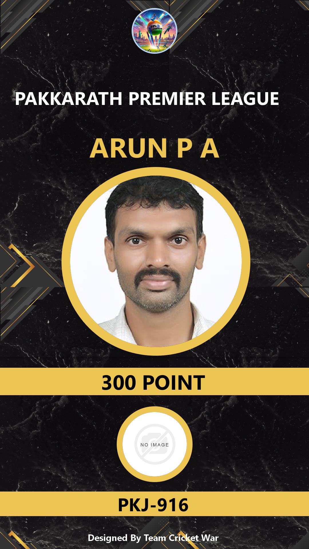 BATTING ALLROUNDER, AGE : 28 AMBALAVATTAM Bid Amount : 500 Team : PKJ-916 Download ID Card VIEW PROFILE |