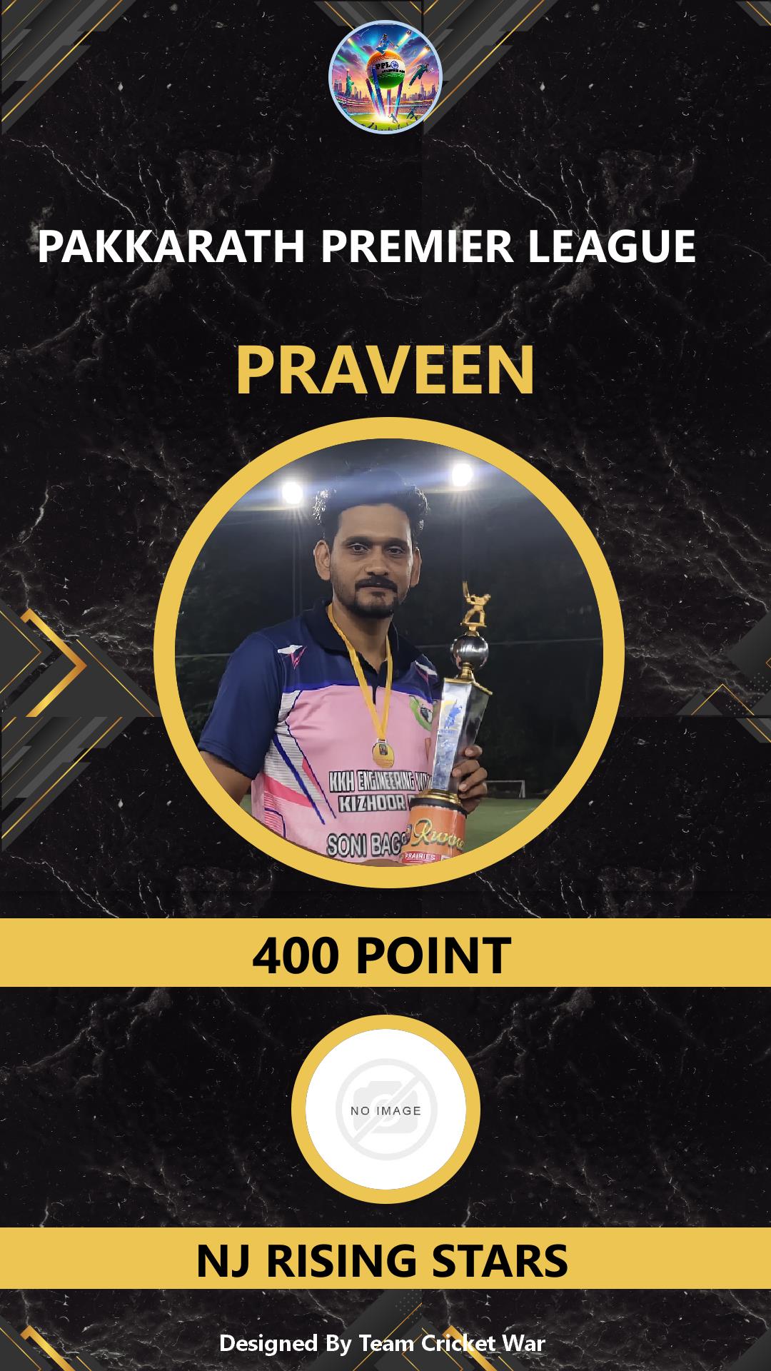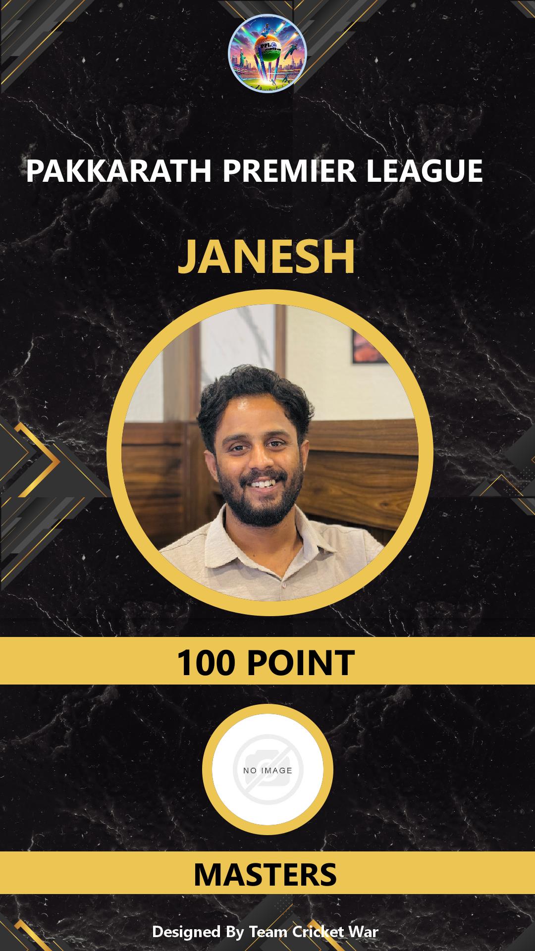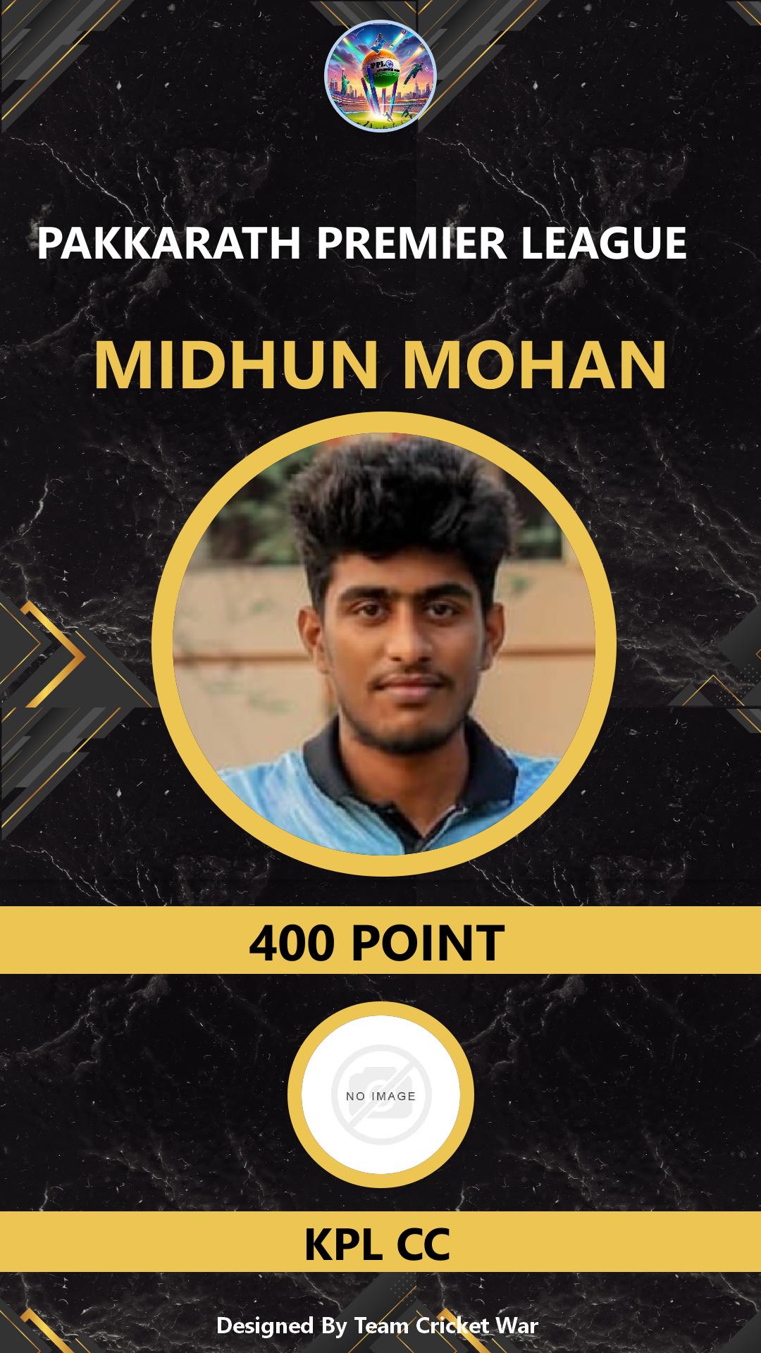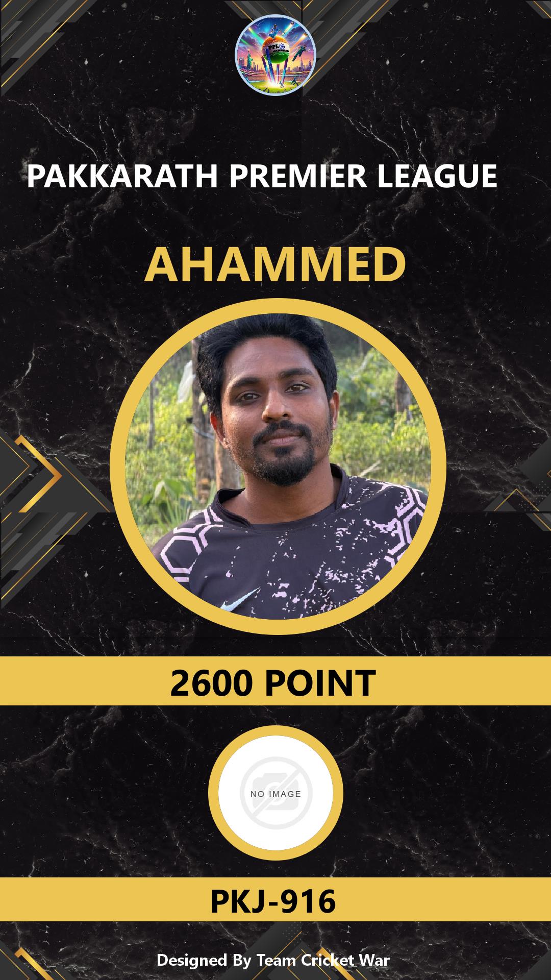 BATTING ALLROUNDER, AGE : 28 AMBALAVATTAM Bid Amount : 500 Team : PKJ-916 Download ID Card VIEW PROFILE |