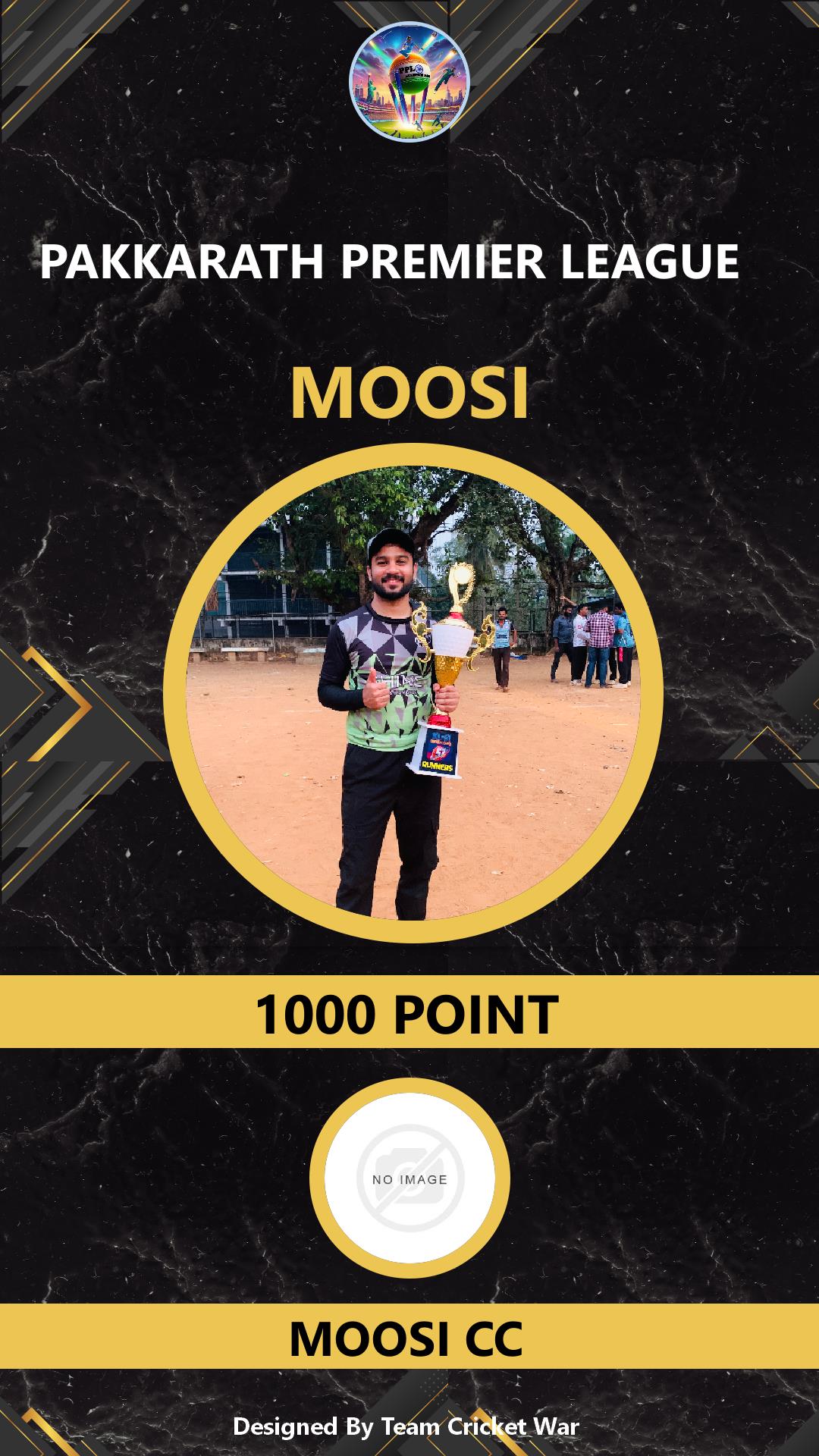 BATTING ALLROUNDER, AGE : 39 KOTHAKURISSI Bid Amount : 2800 Team : MOOSI CC Download ID Card VIEW PROFILE |