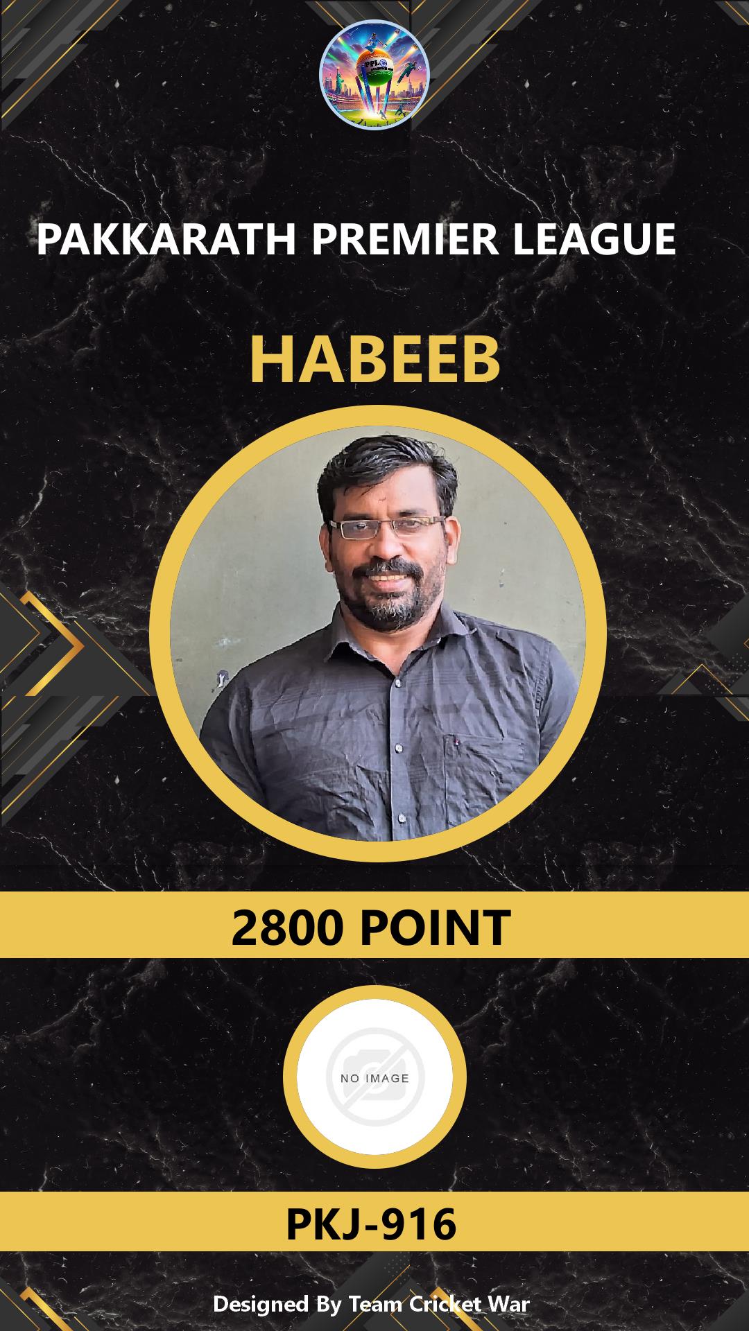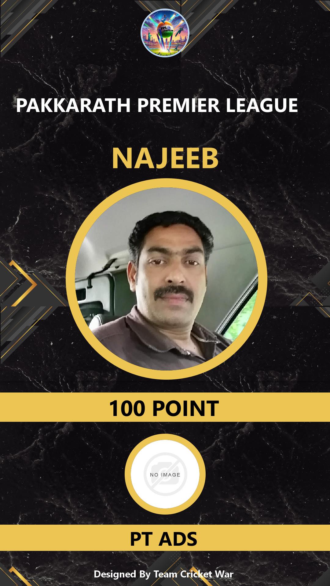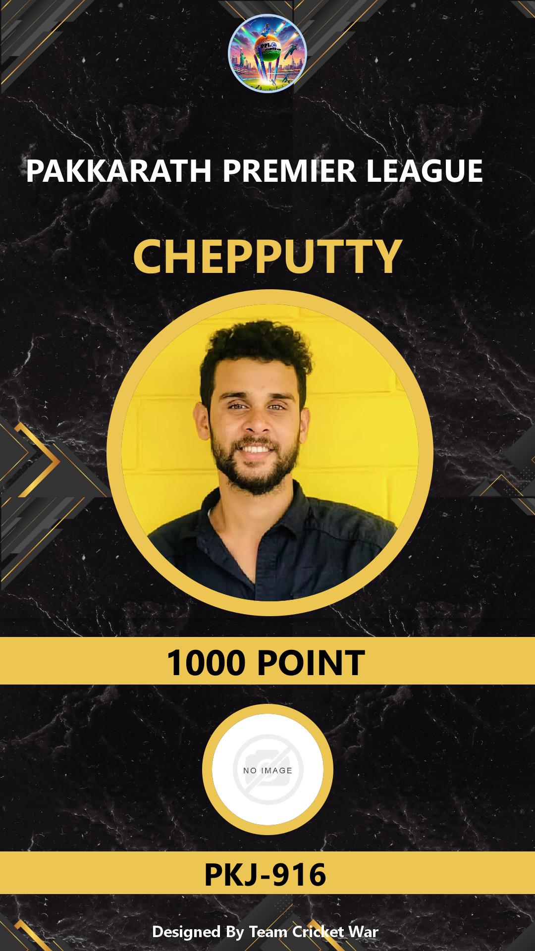 BOWLING ALLROUNDER, AGE : 37 CHERBATTAKAVU Bid Amount : 100 Team : PKJ-916 Download ID Card VIEW PROFILE |