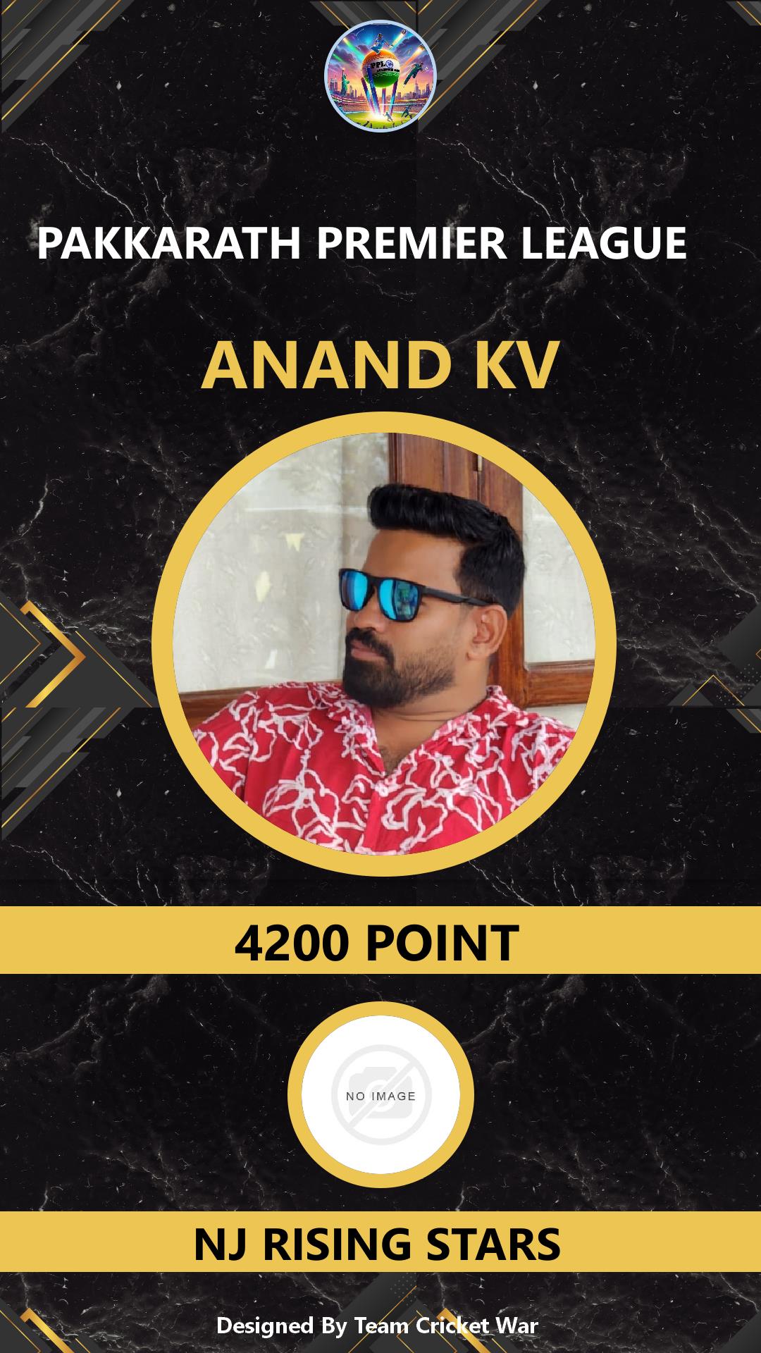 BATTING ALLROUNDER, AGE : 26 KOTHAKURISSI Bid Amount : 2600 Team : NJ RISING STARS Download ID Card VIEW PROFILE |