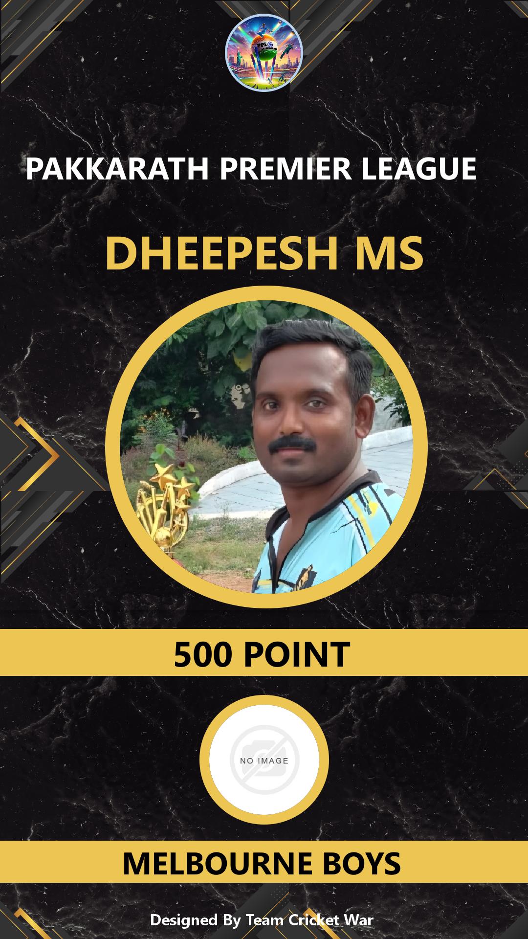 ALLROUNDER, AGE : 36 PANAMANNA Bid Amount : 500 Team : MELBOURNE BOYS Download ID Card VIEW PROFILE |