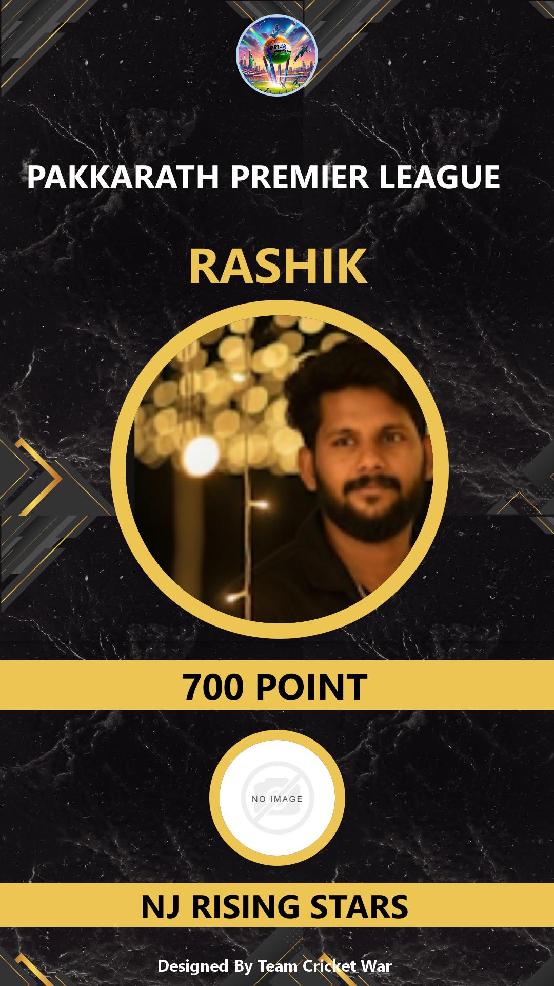 ALLROUNDER, AGE : 34 OTTAPALAM PANAMANNA Bid Amount : 700 Team : NJ RISING STARS Download ID Card VIEW PROFILE |